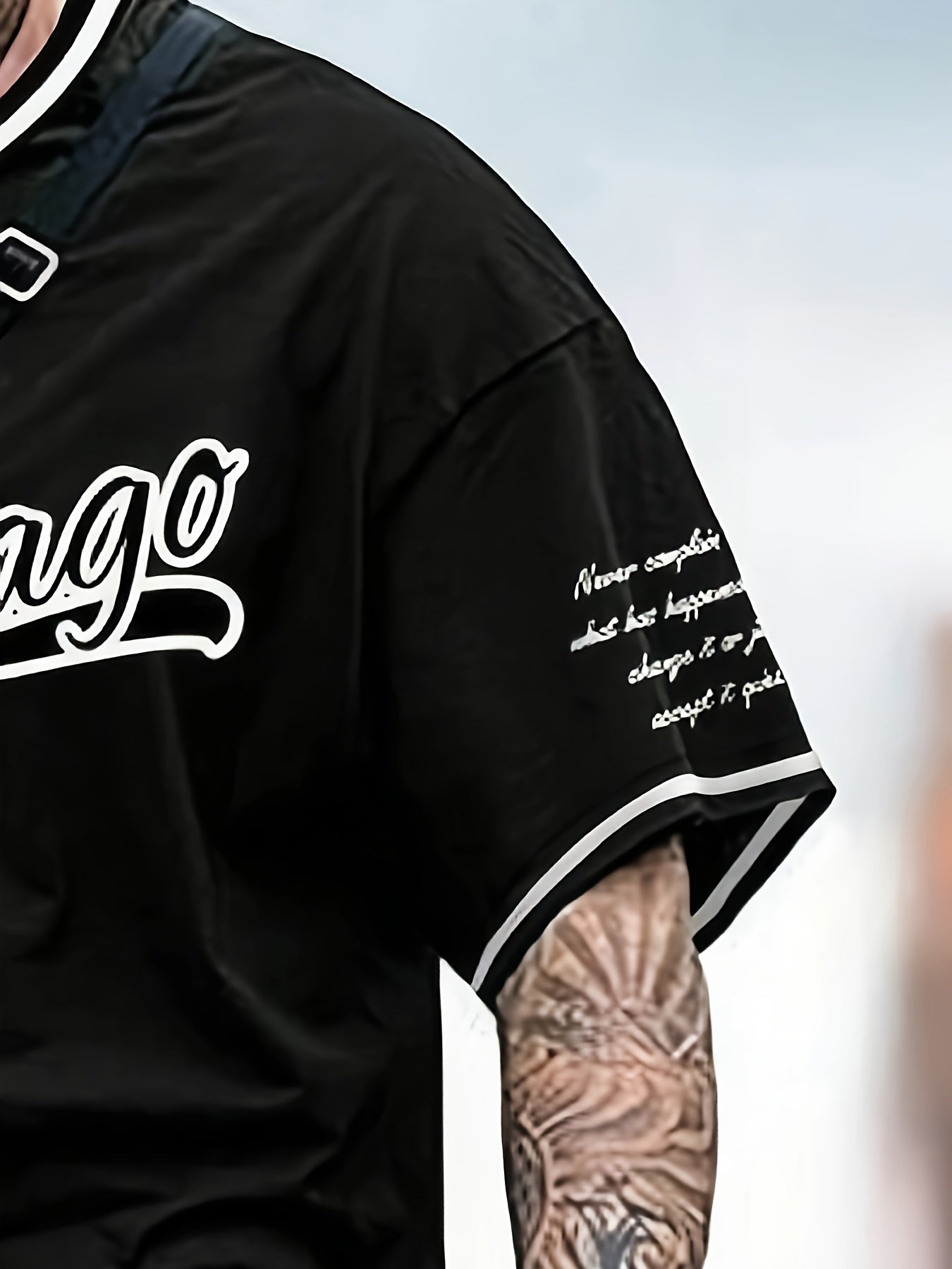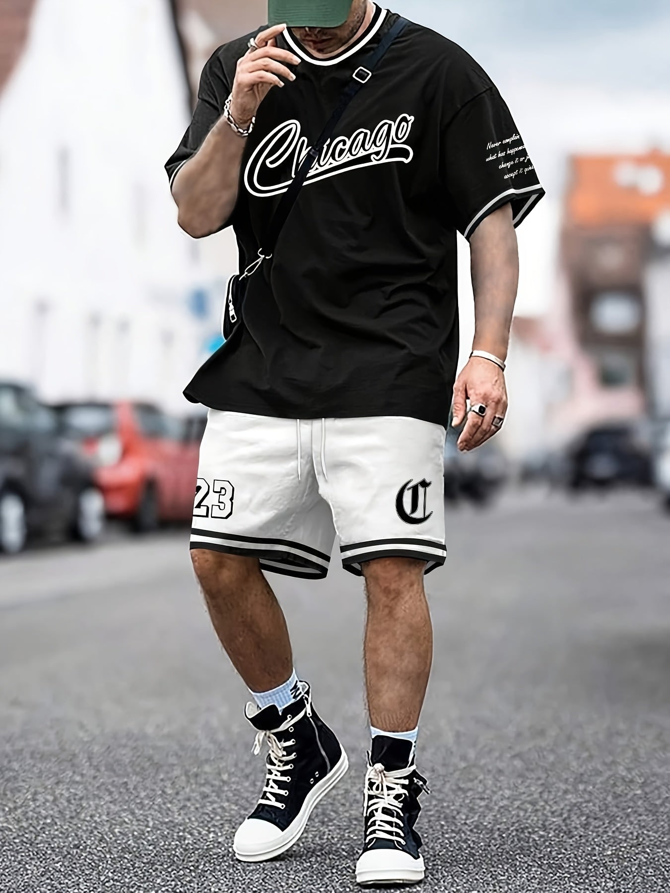 Տղամարդու հագուստ, Չիկագոյի գրաֆիկական նախշերով, կարճ թևքերով, կարճ շապիկ և շորտեր, 2 մասից բաղկացած հավաքածու՝ ամառային բացօթյա գործունեության համար