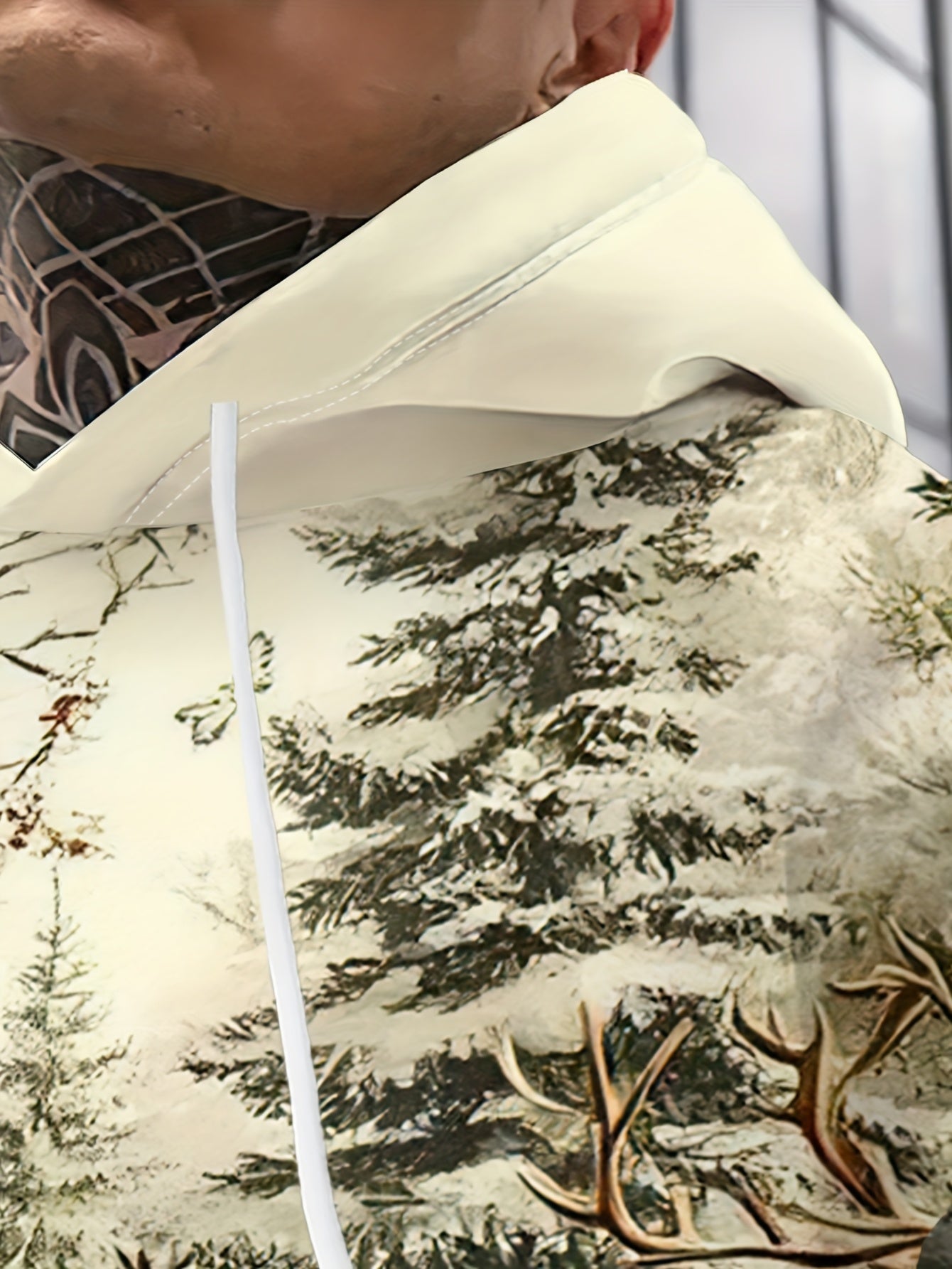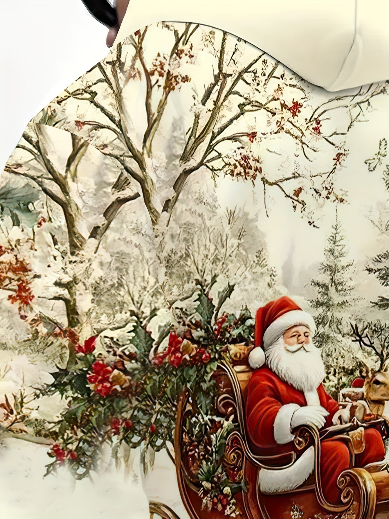 Men'S Plus Size 3D High-Definition Christmas Hooded Sweatshirt - Santa Claus & Reindeer Print, Loose Fit Winter Warmth, All-Season Casual Pullover with Pockets, Christmas Sweatshirt, Festive Clothing, Holiday Apparel, Holiday
