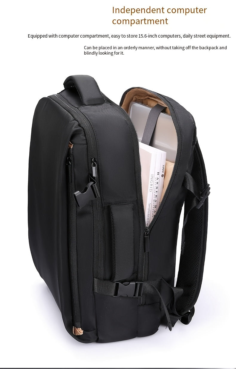 Men's Professional Laptop Backpack - Large Capacity Business Backpack with 39.62cm Laptop Compartment, Heavy-Duty Zipper Closure, Padded Shoulder Straps - Sleek Black Backpack for Office, Travel, Meetings - Durable Carry-On B