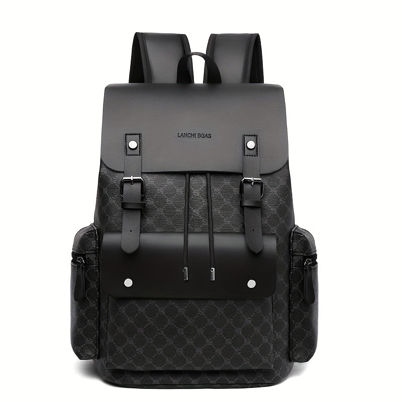 Men's Retro Geometric Print Drawstring Backpack - Casual British Style Durable Fabric with Multiple Compartments Padded Straps for Daily Commute, Work, Travel, Backpack for Travel, Modern Logo Design, Highquality Straps, Ur
