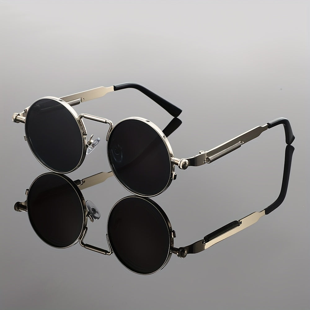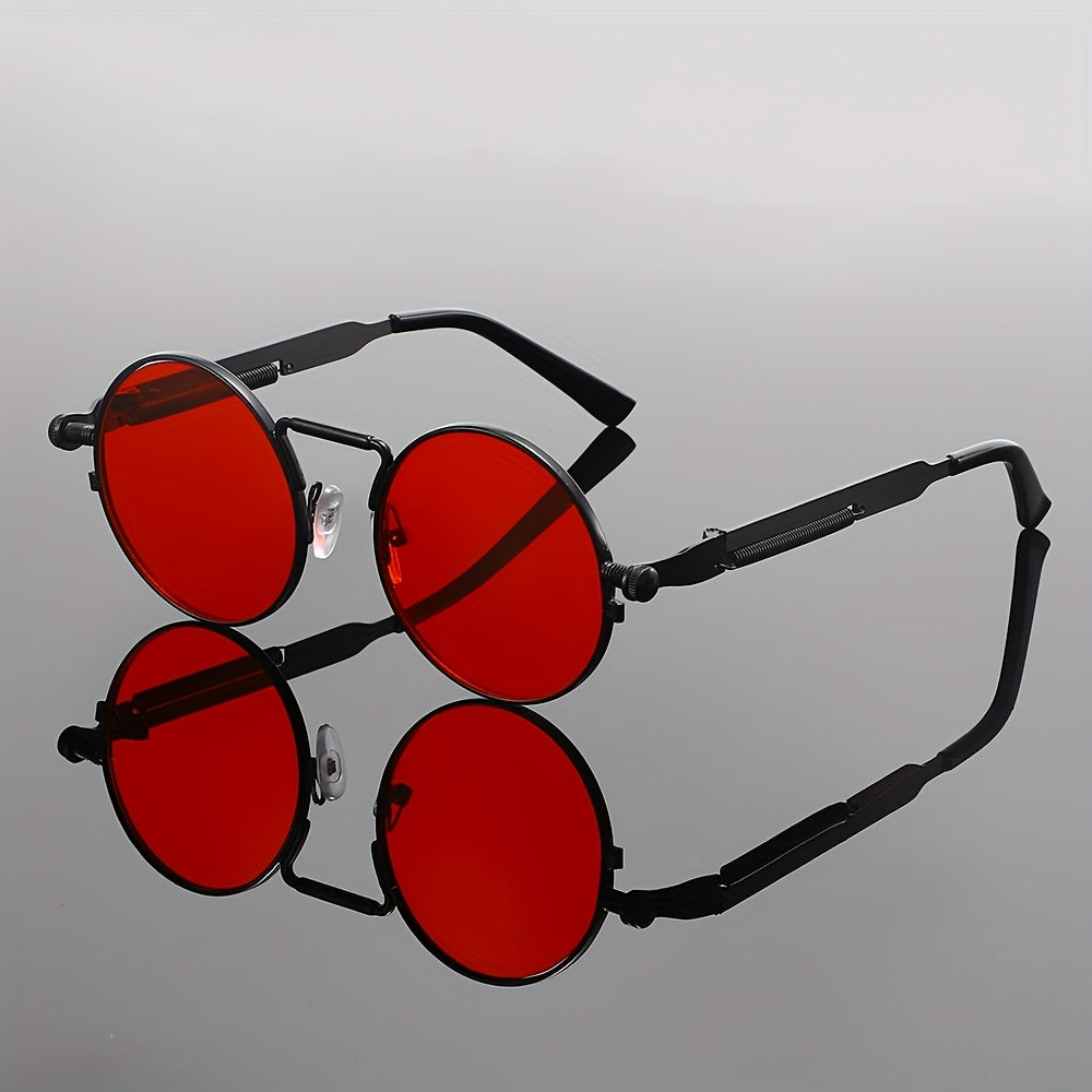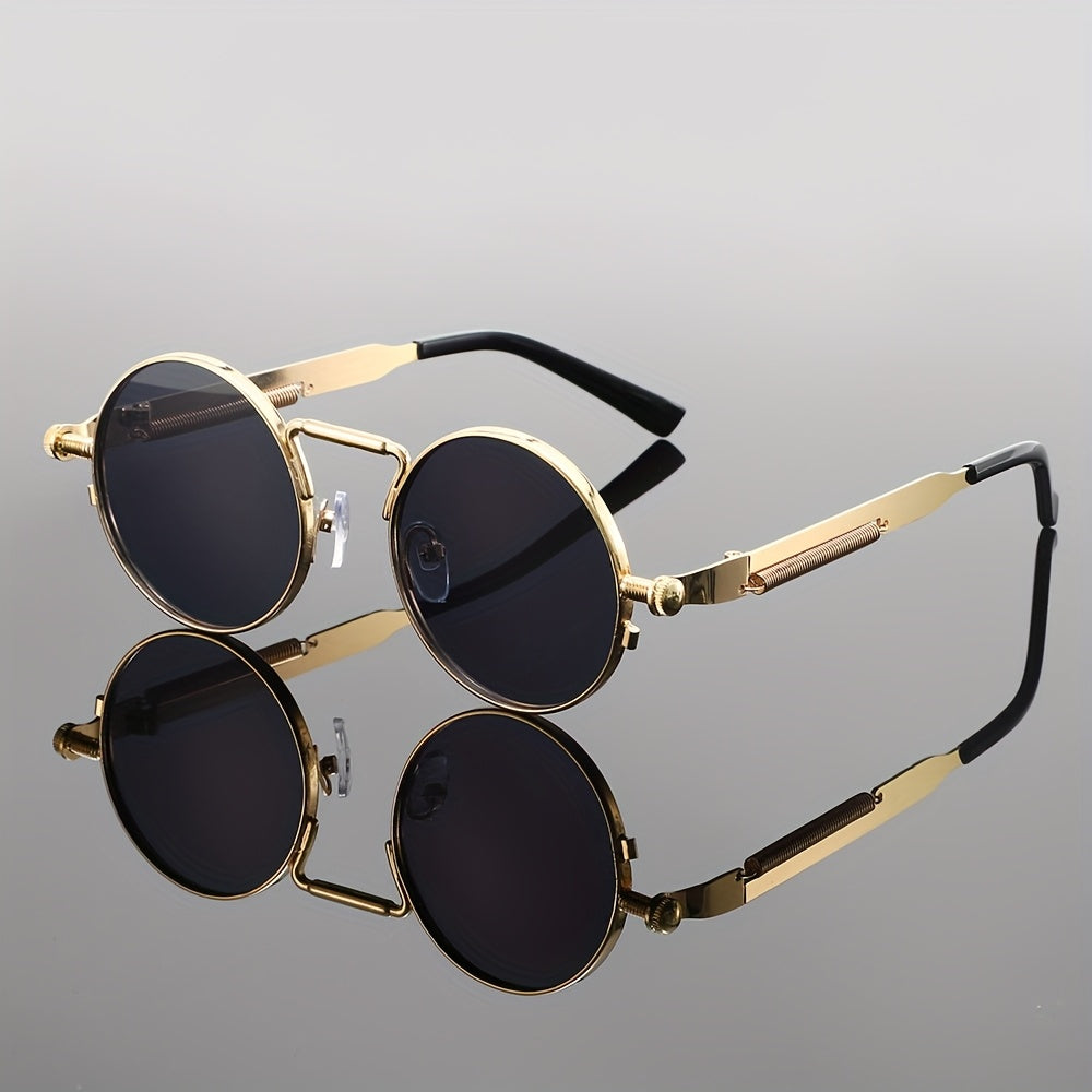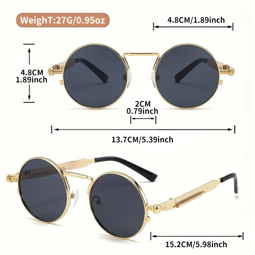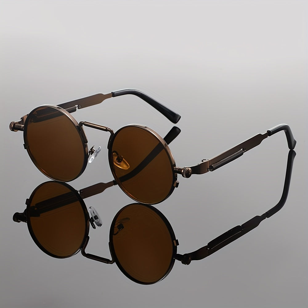 Men's Retro Round Fashion Glasses - Zinc Alloy Frame & Blue-Tinted Polycarbonate Lenses, Y2K Vintage Style for Everyday Fashion, Special Occasions & Holiday Gifts, Vintage Glasses, Trendy Eyewear, Bold Design, Durable Lenses,
