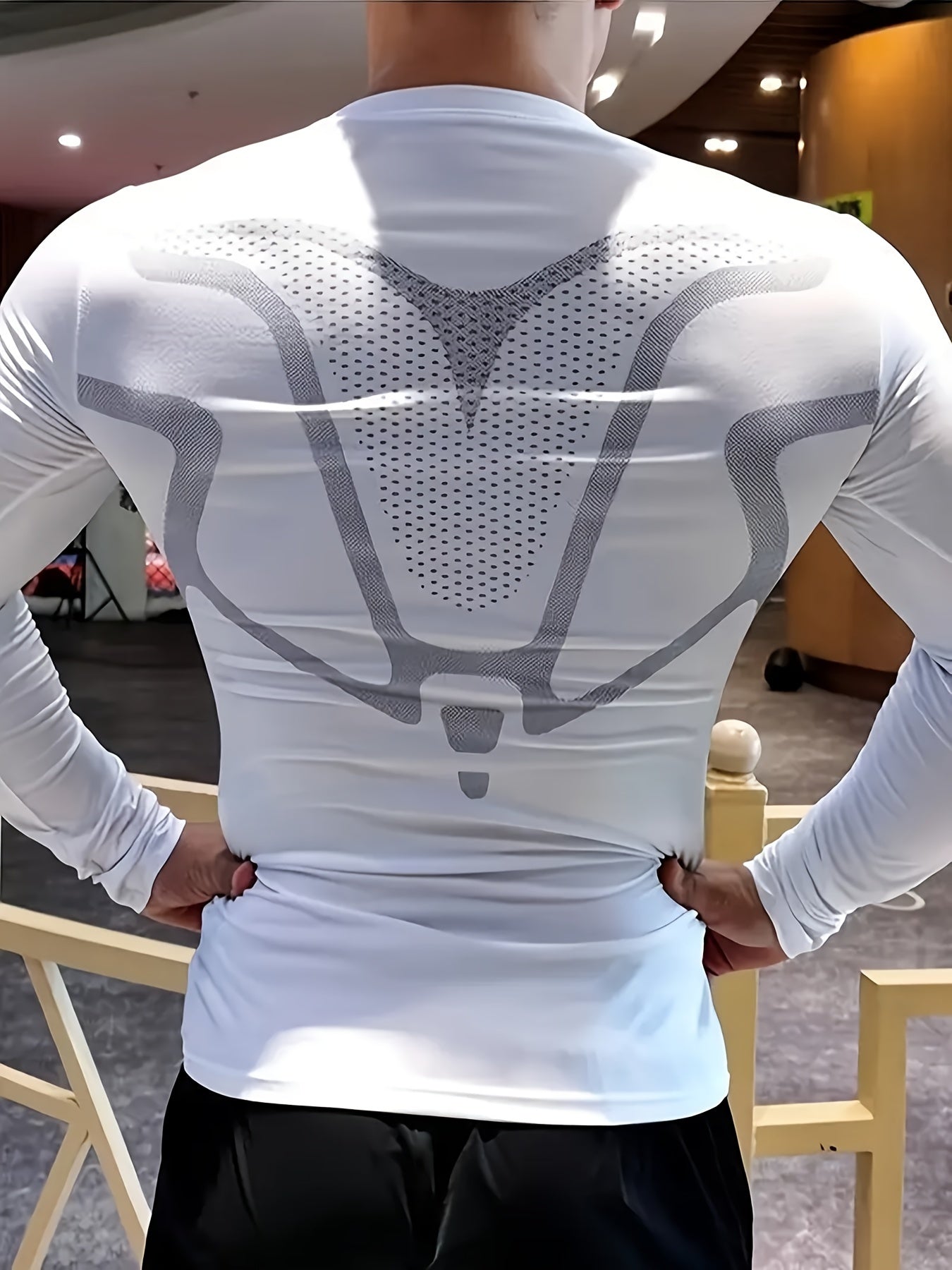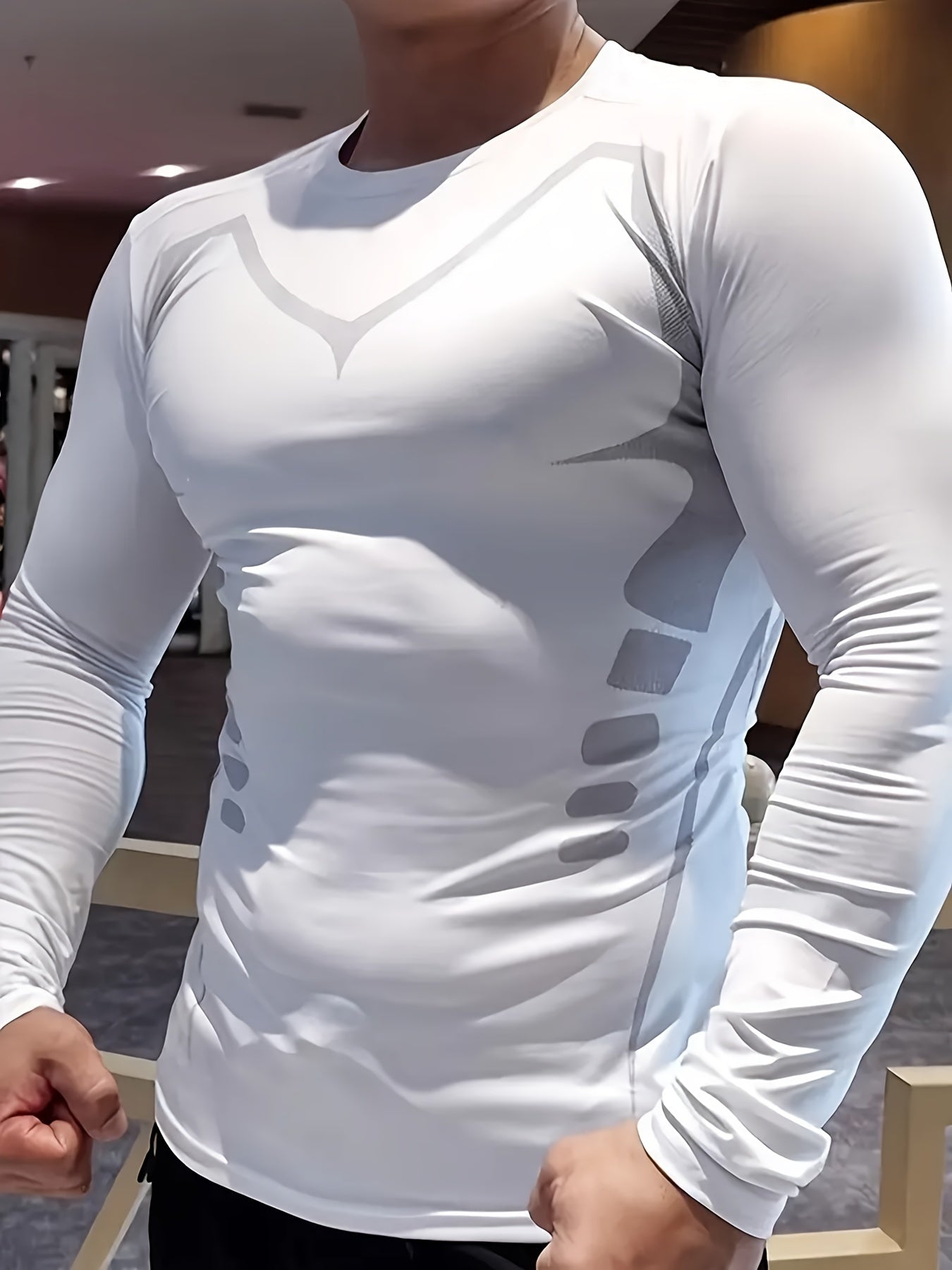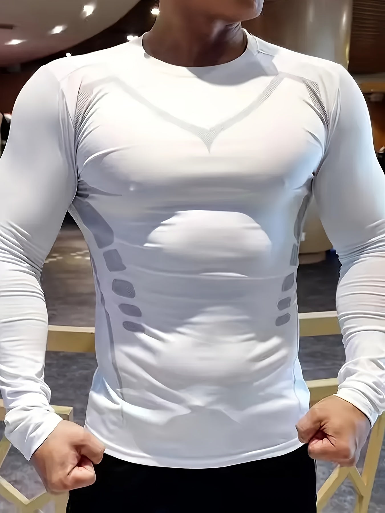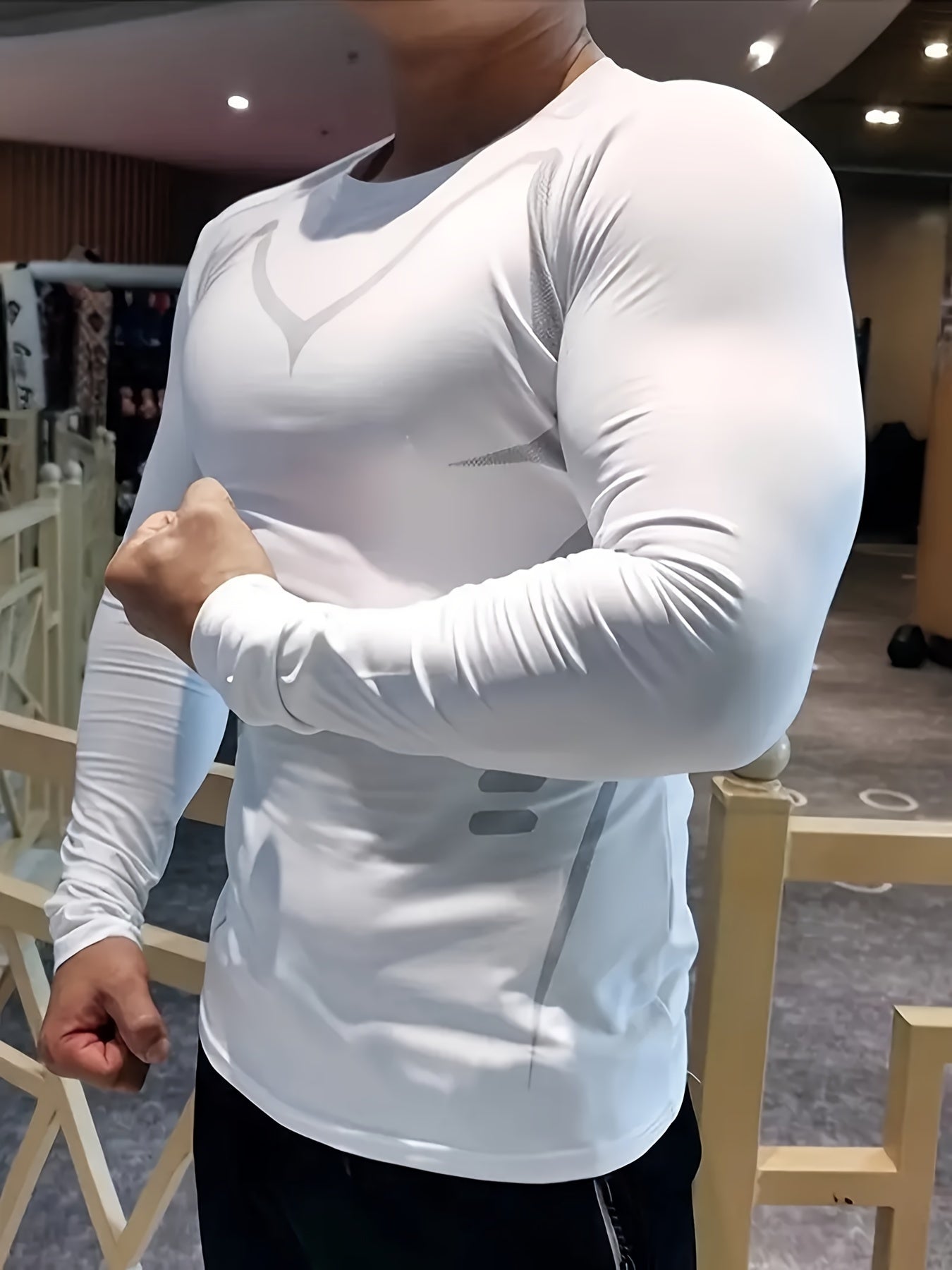 Տղամարդկանց բարակ սպորտային երկարաթև շապիկ՝ շնչող, խոնավությունը մաքրող պոլիեսթեր և սպանդեքս խառնուրդ՝ վազքի, հեծանվավազքի և բացօթյա գործունեության համար