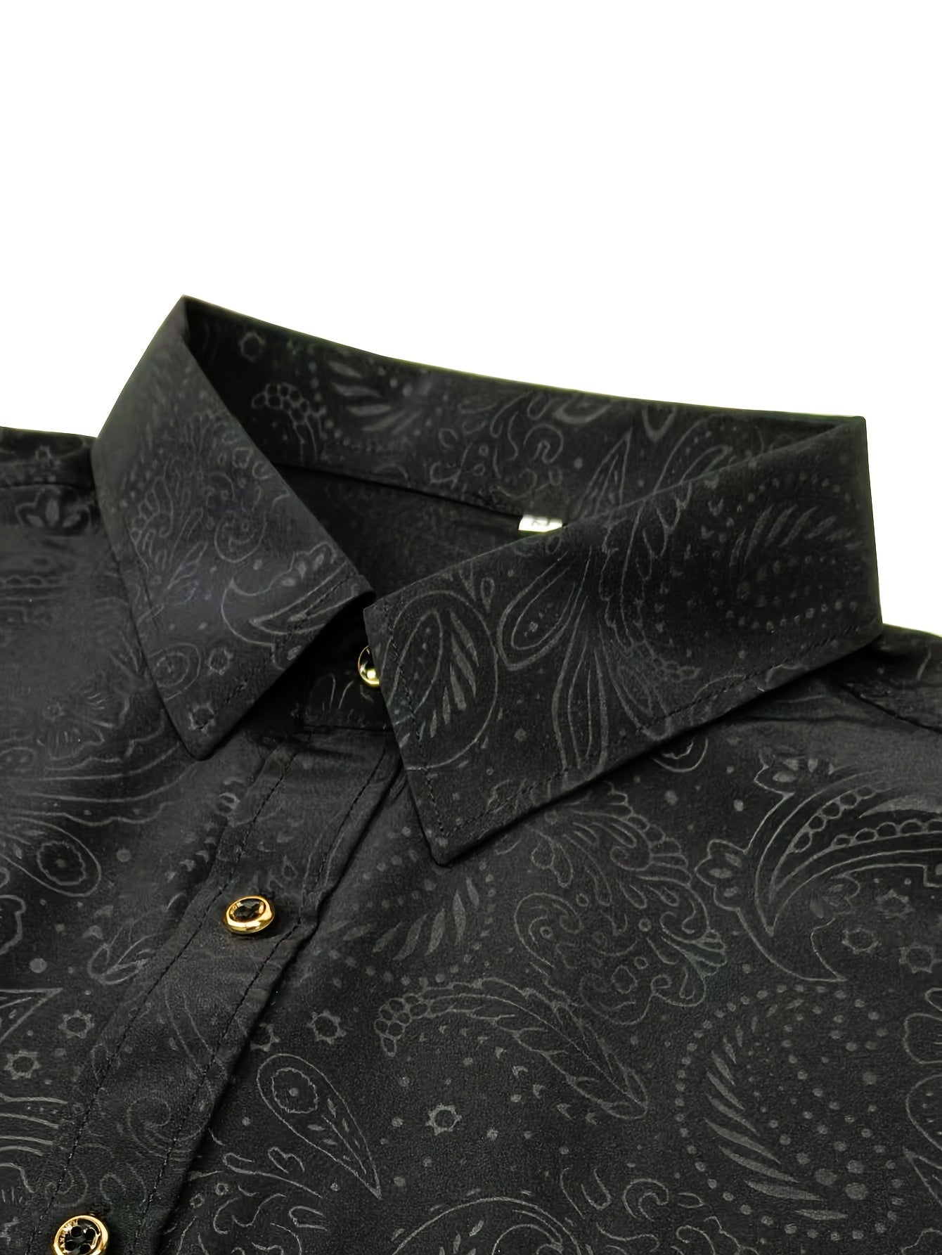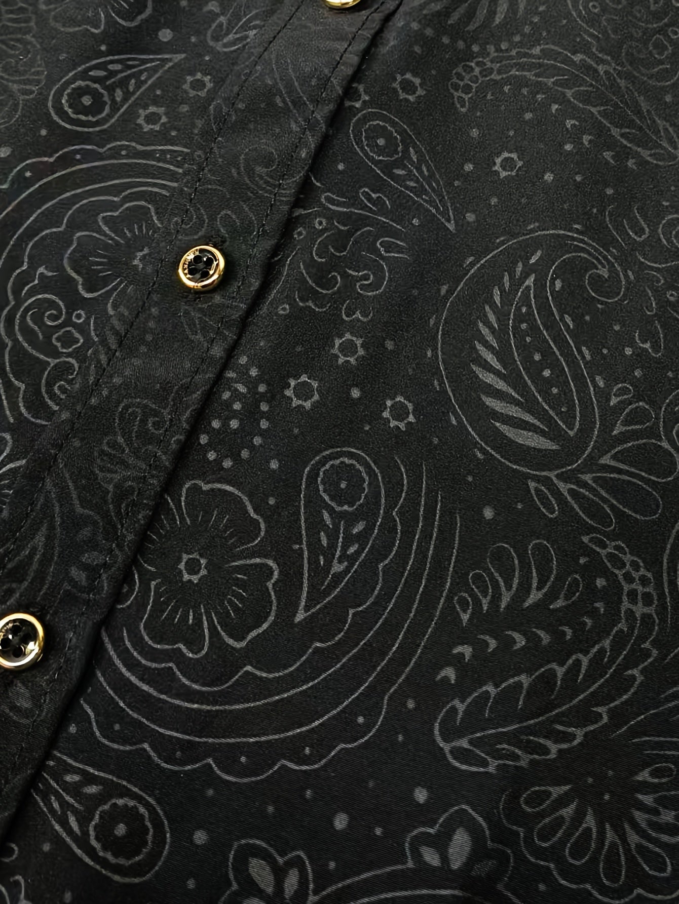 Men's Slim-Fit Black Paisley Print Long Sleeve Shirt - Stylish Button-Up with Unique Irregular Dark Pattern, Polyester, Machine Washable, All-Season Wear