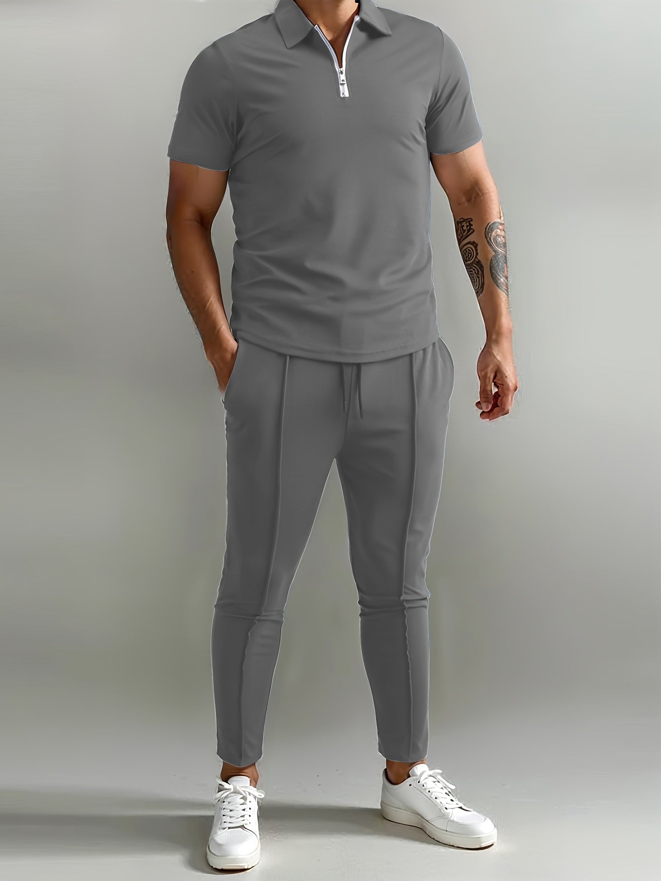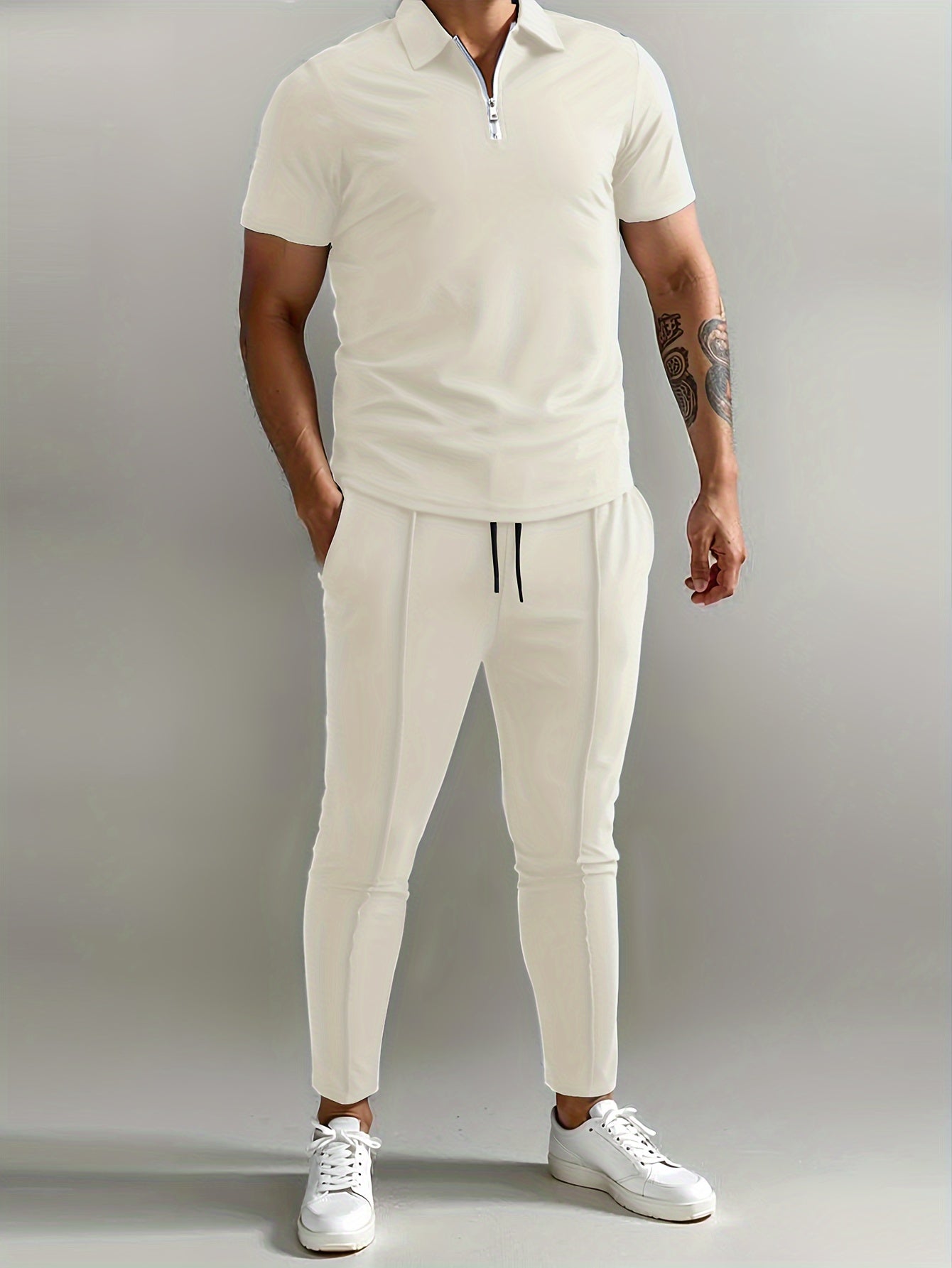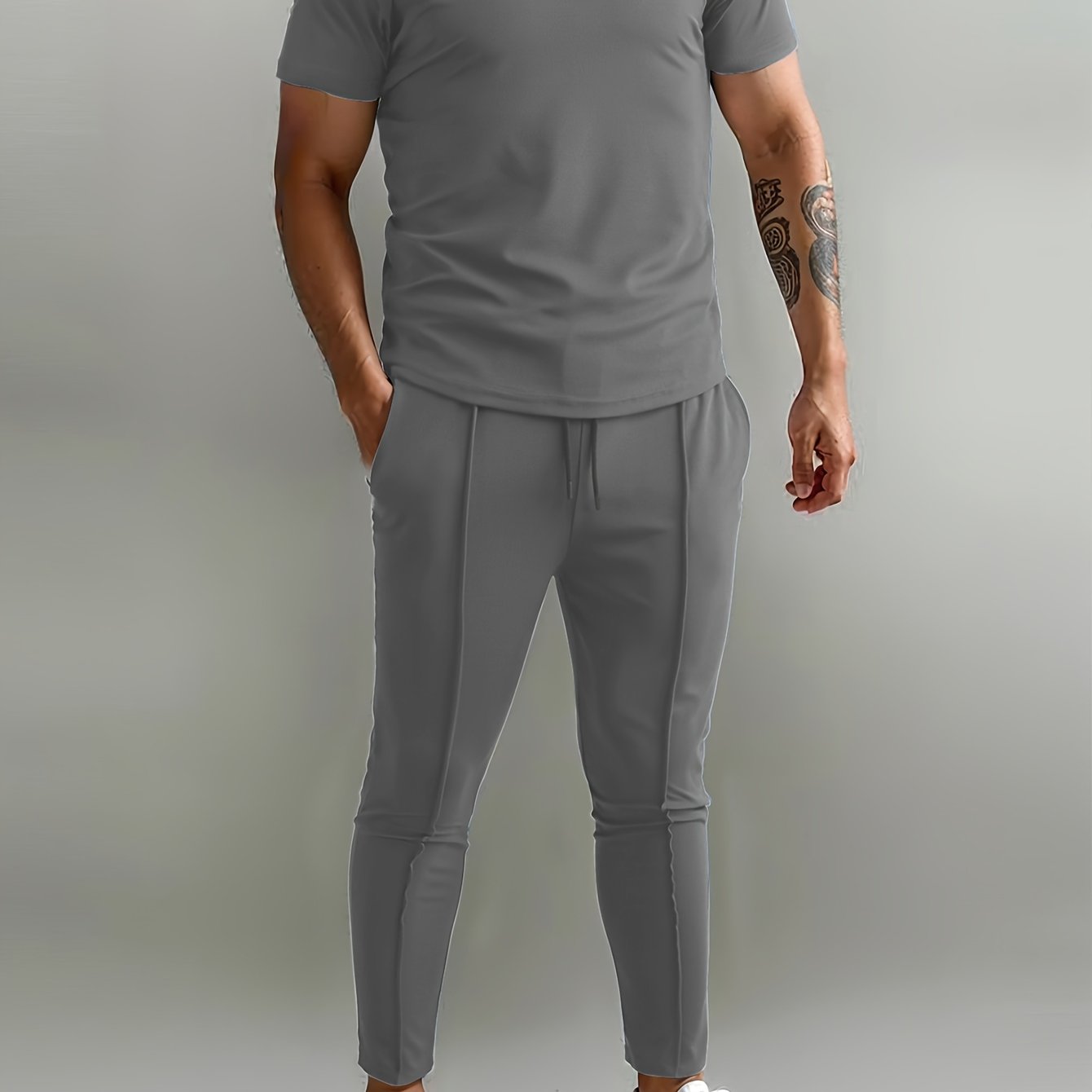 Տղամարդկանց սլիմ-Ֆիթ Քեզուալ և Ջոգերի հավաքածու՝ շնչող պոլիեսթեր, կարճաթև, ամառային արտաքին հագուստ