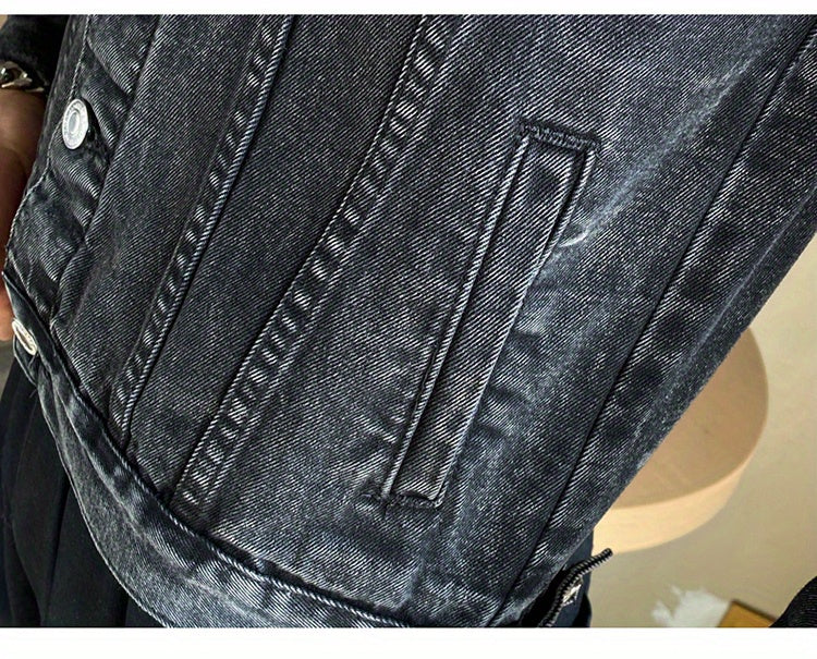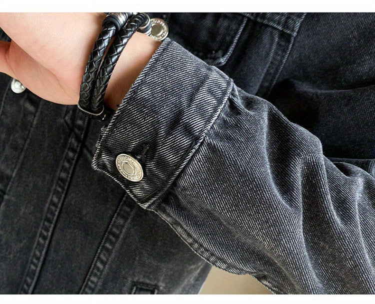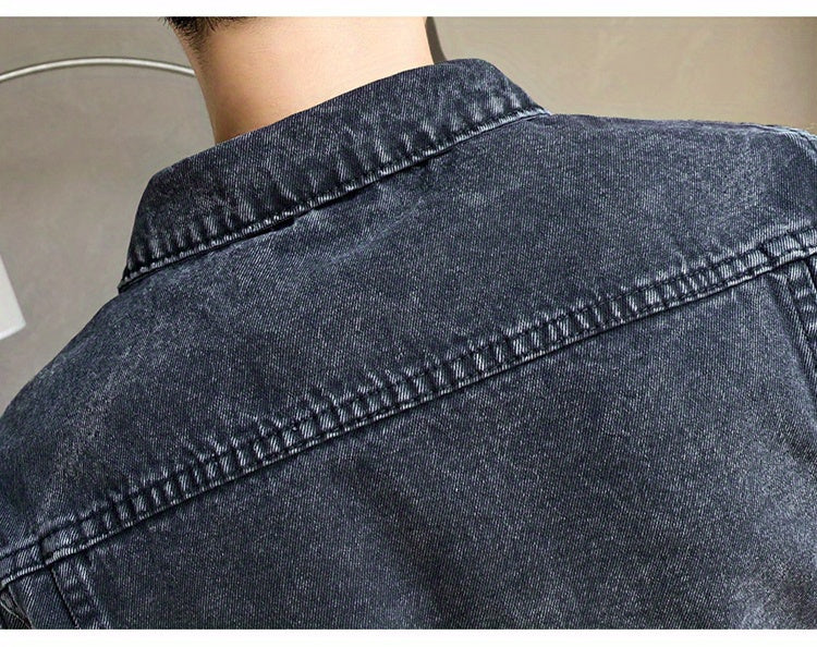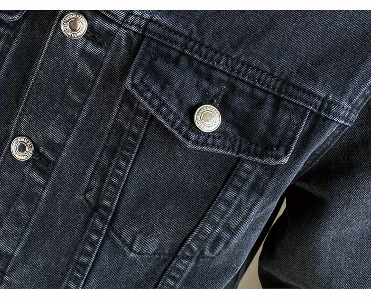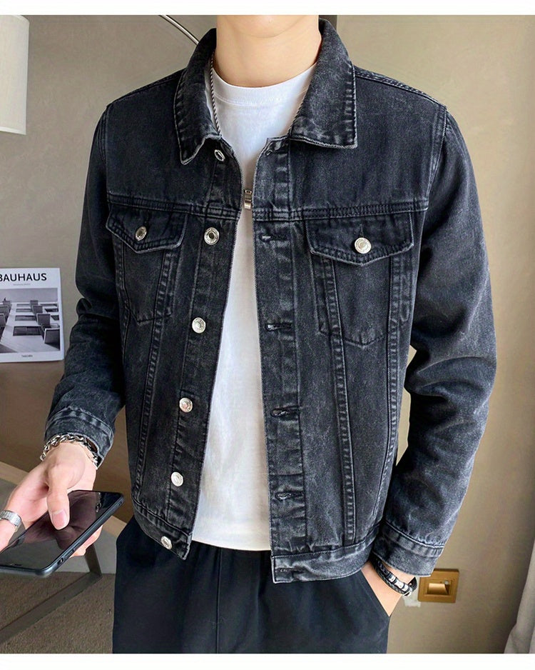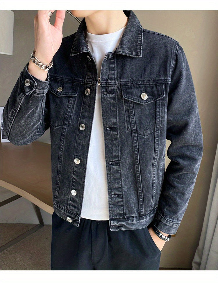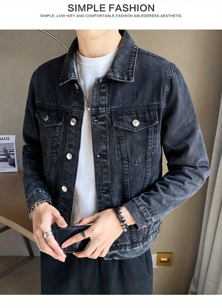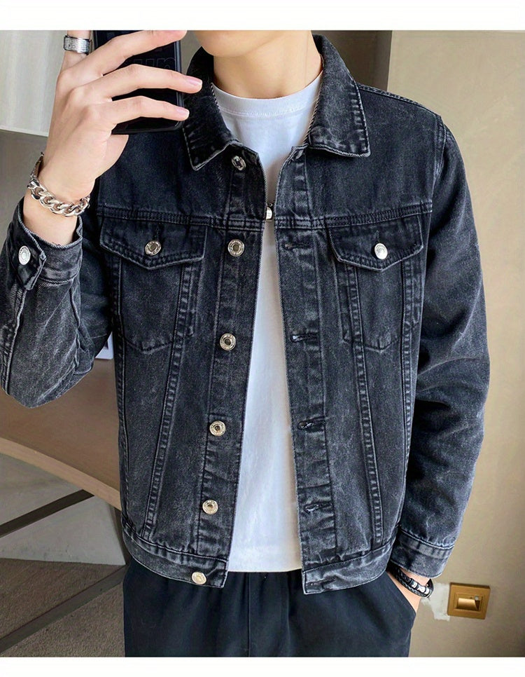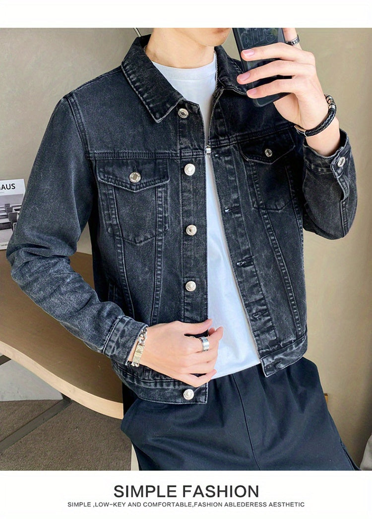 Տղամարդկանց բարակ ջինսե բաճկոն՝ առօրյա երկարաթև ջինսե վերարկու՝ գրպաններով, կոճակով վերևից, սև, նորաձև փողոցային հագուստ գարնանային և աշնան համար