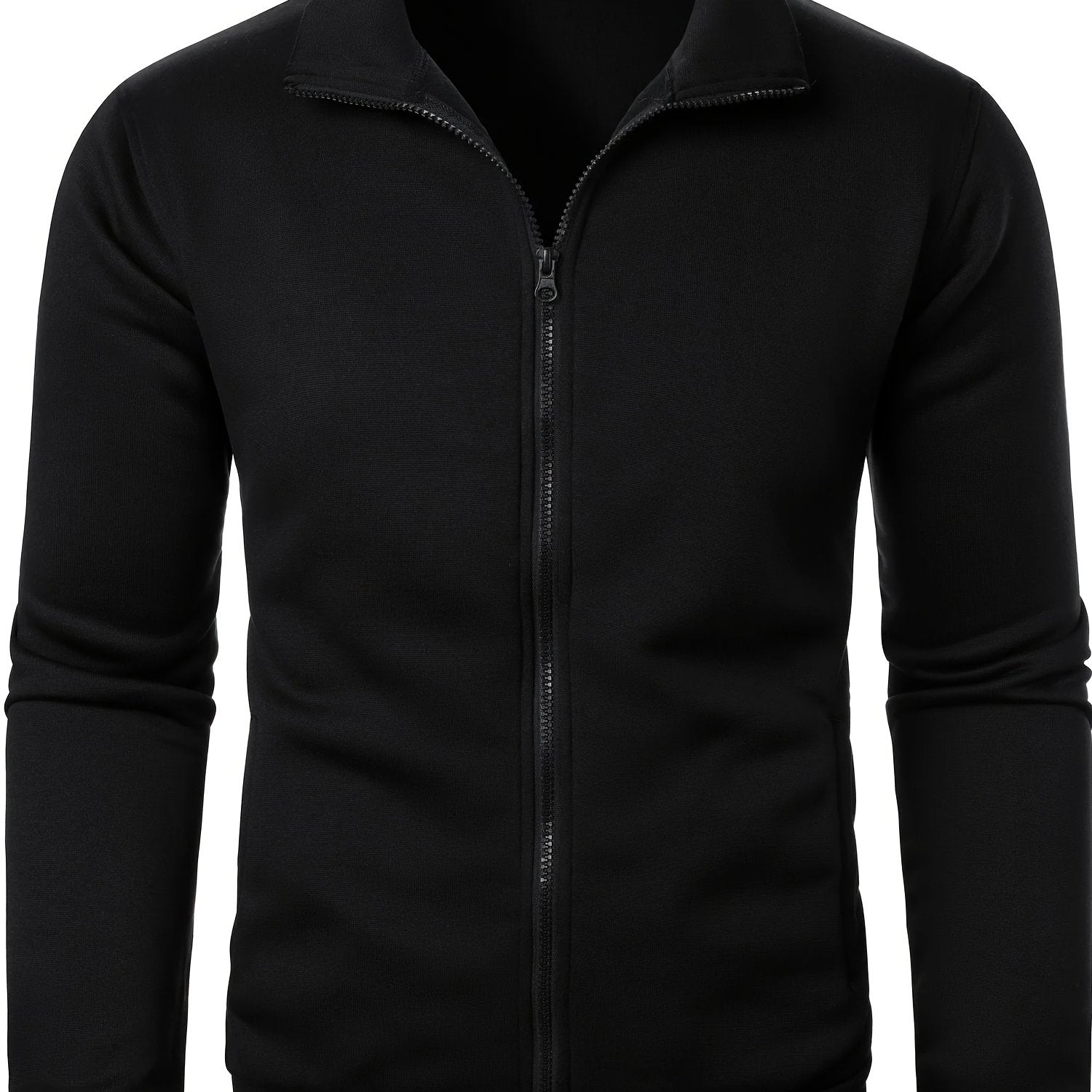 Men'S Slim-Fit Fleece-Lined Zip-Up Hoodie - Warm Long Sleeve Casual Jacket with Stand Collar, Solid Color, Polyester Lining, Pockets, Regular Fit for Fall/Winter, Winter Hoodie, Autumn Outerwear, Sleek Design, Durable Fabric,