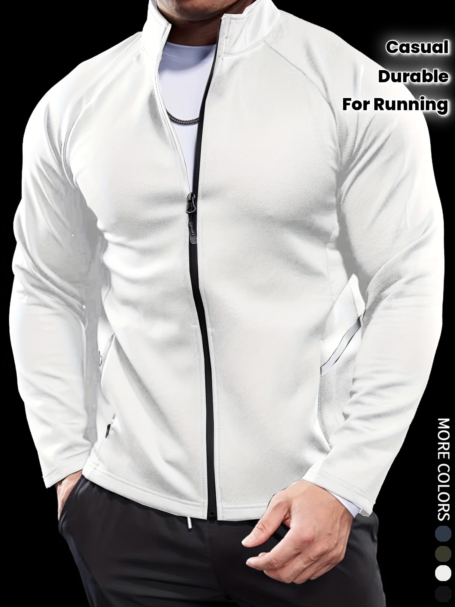 Men'S Slim Fit Quick-Dry Zip-Up Jacket - Lightweight Comfort Fabric, Stand Collar, Long Sleeves for Running & Outdoor Activities, Olive Green, Fall/Winter Casual Sportswear, Sportswear | Sleek Design | Durable Sportswear