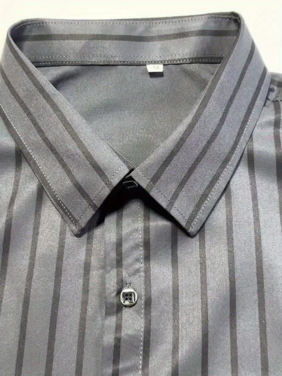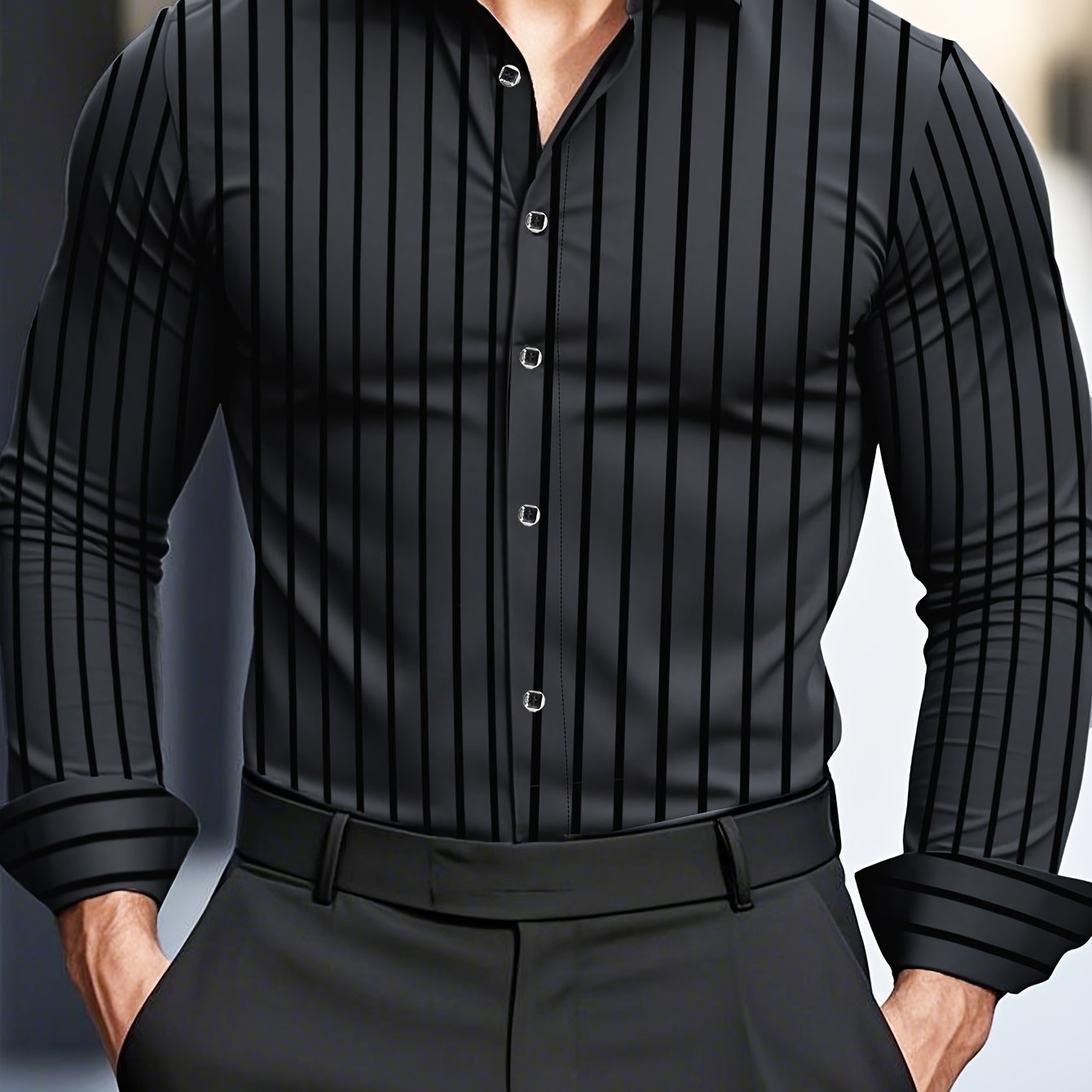 Men's Slim-Fit Striped Long Sleeve Shirt - Polyester, Machine Washable, Business Casual Style for Spring/Fall, 1856 Print, Hexagon Collar
