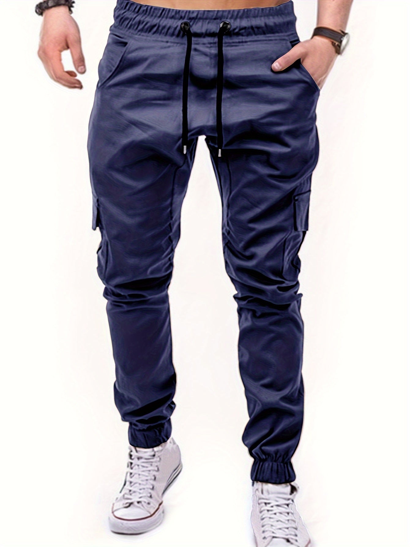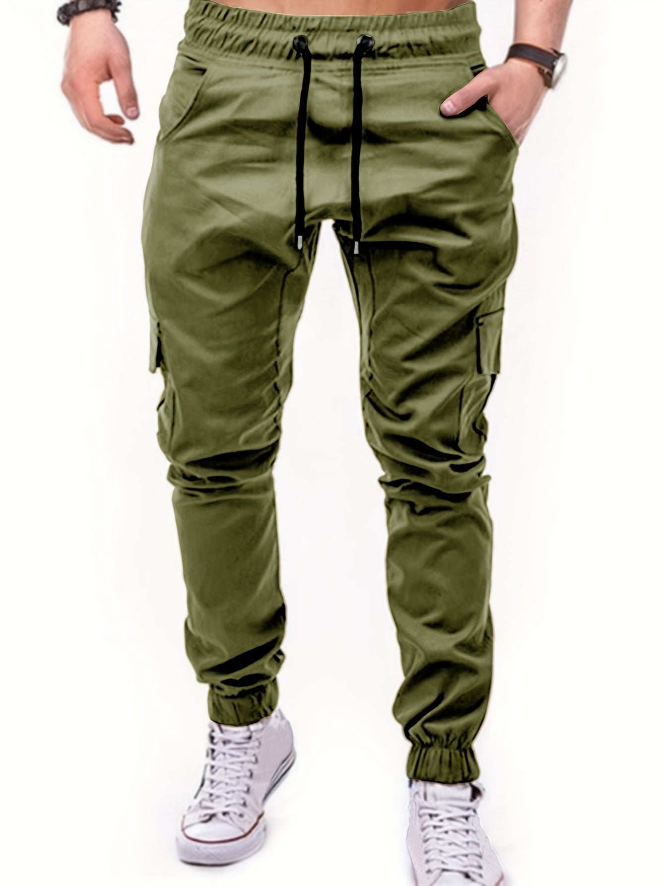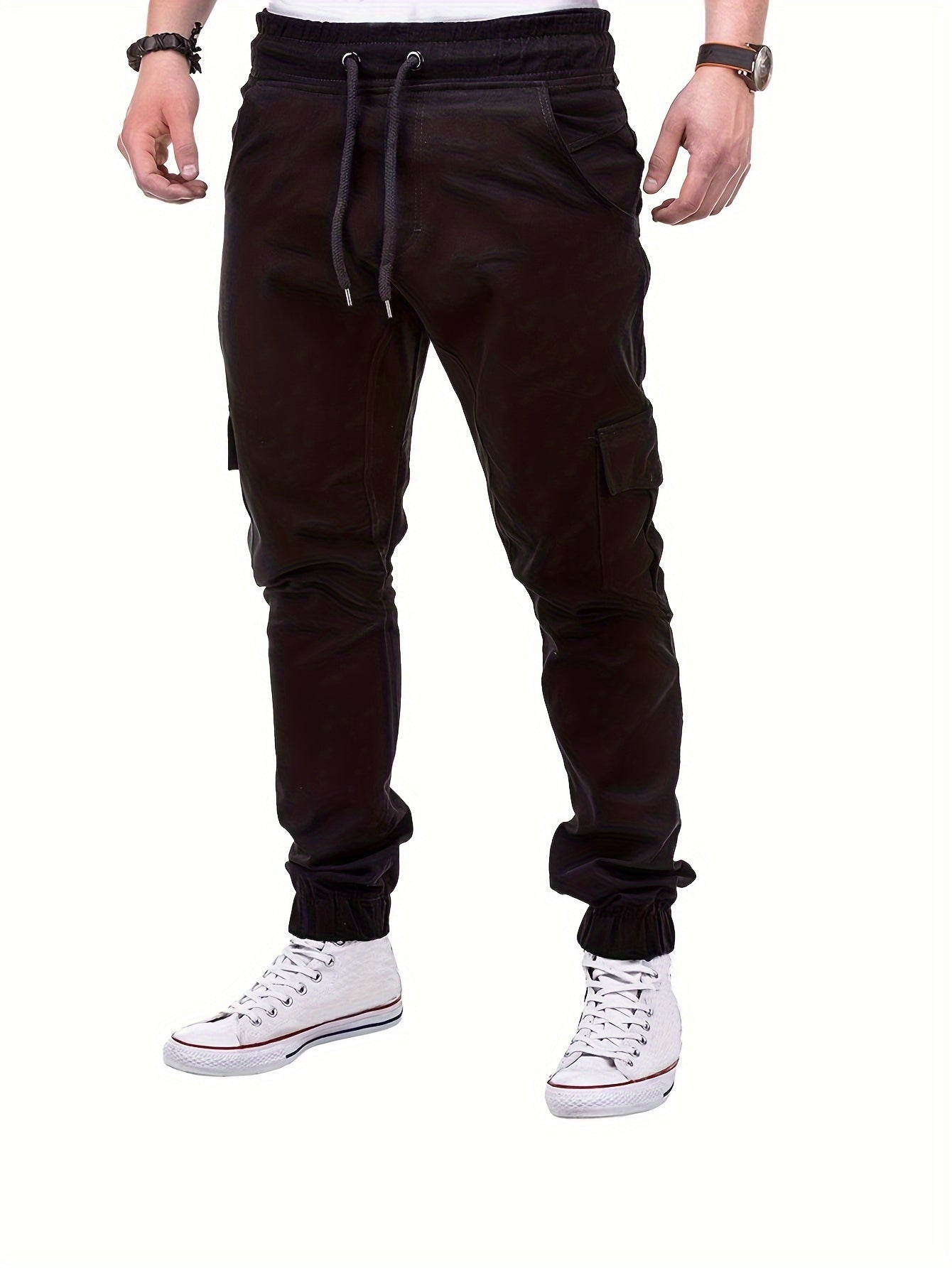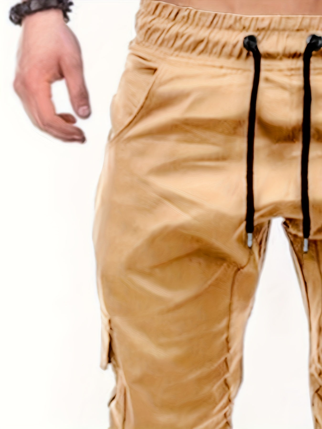 Տղամարդկանց միաձույլ գույնի բեռնախցիկ՝ պարանով, սովորական հարմարեցված հարմարավետ տաբատ՝ բացօթյա գործունեության համար