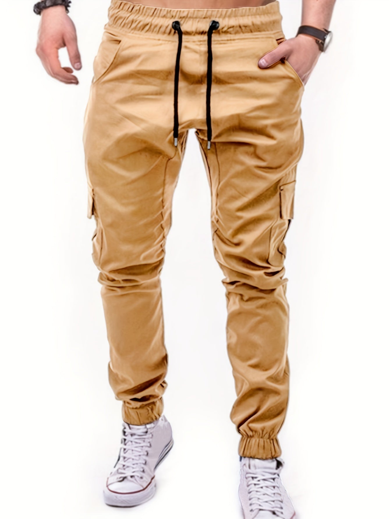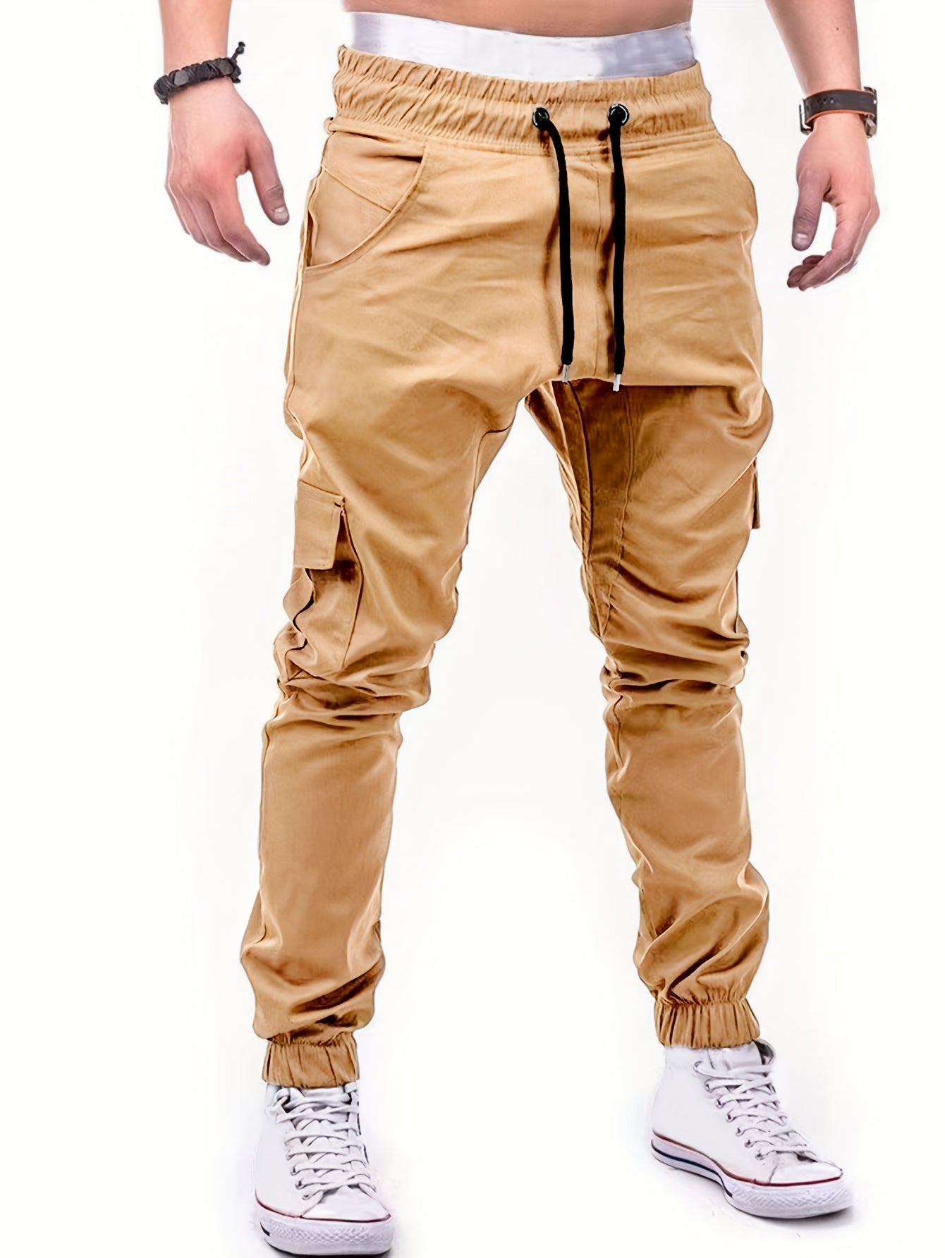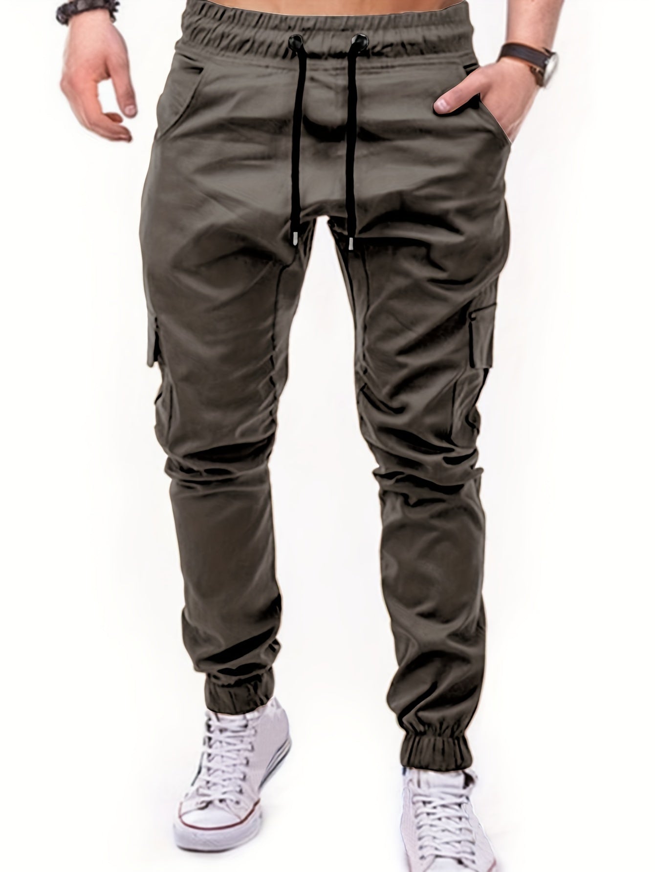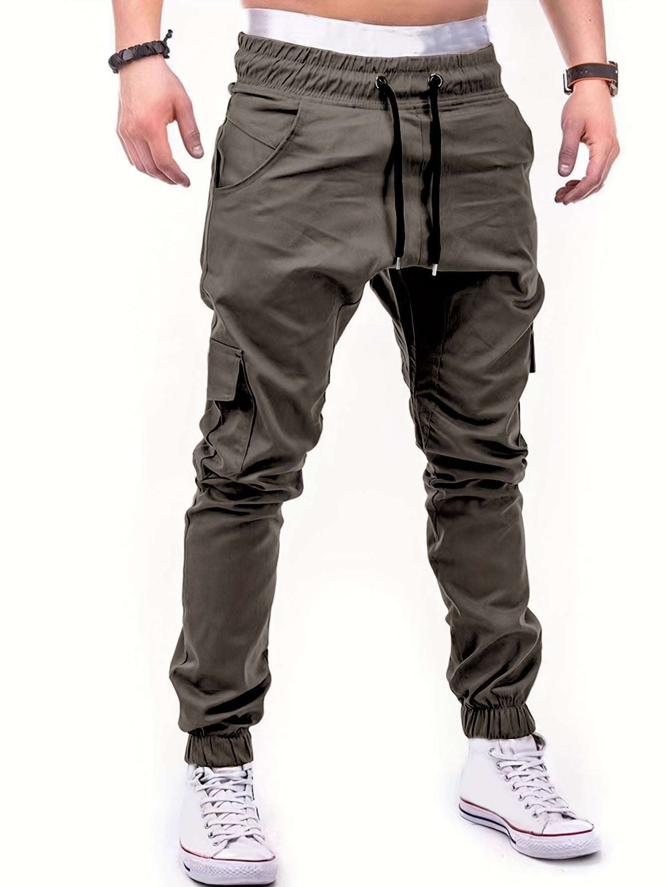 Տղամարդկանց միաձույլ գույնի բեռնախցիկ՝ պարանով, սովորական հարմարեցված հարմարավետ տաբատ՝ բացօթյա գործունեության համար
