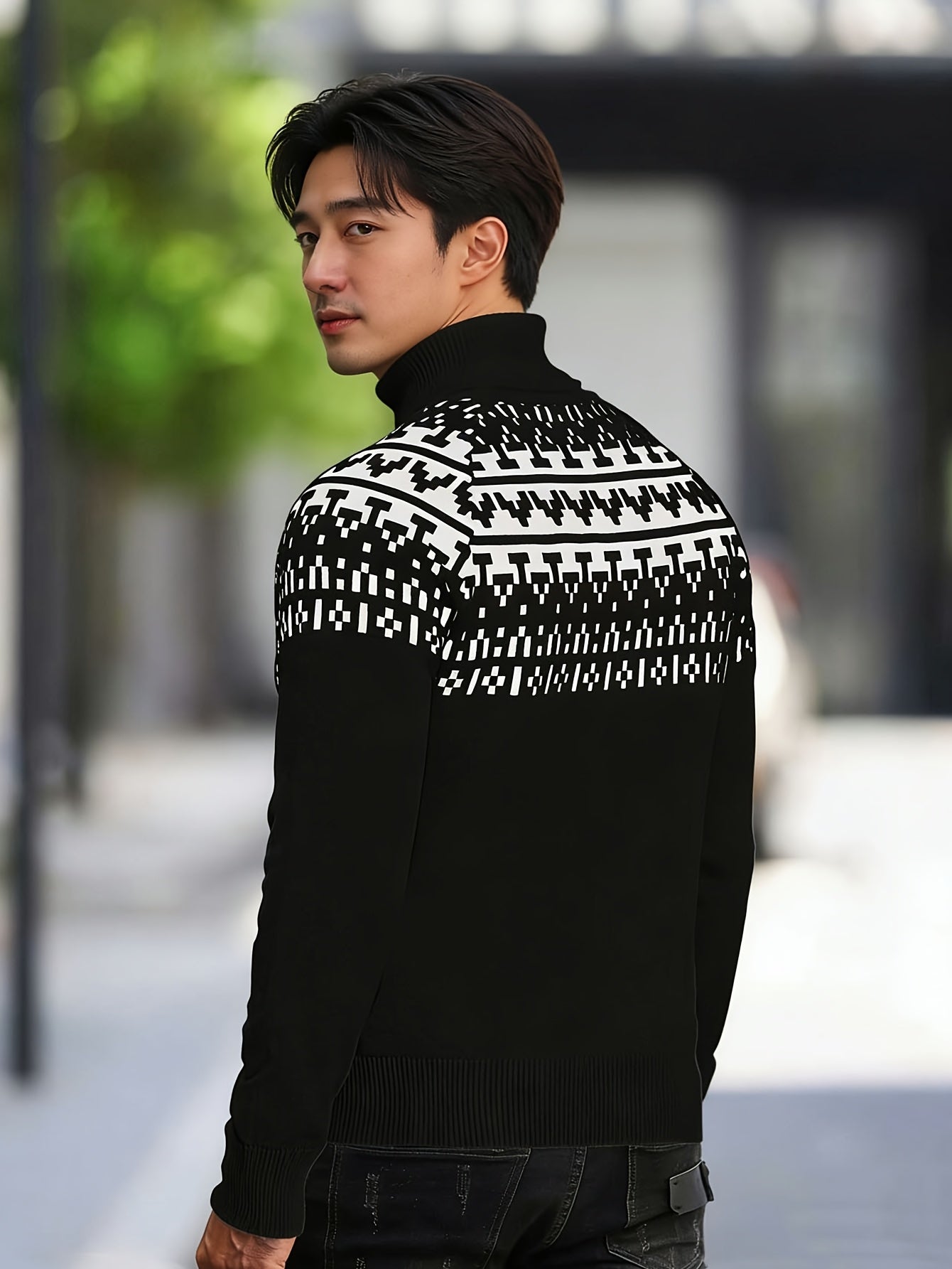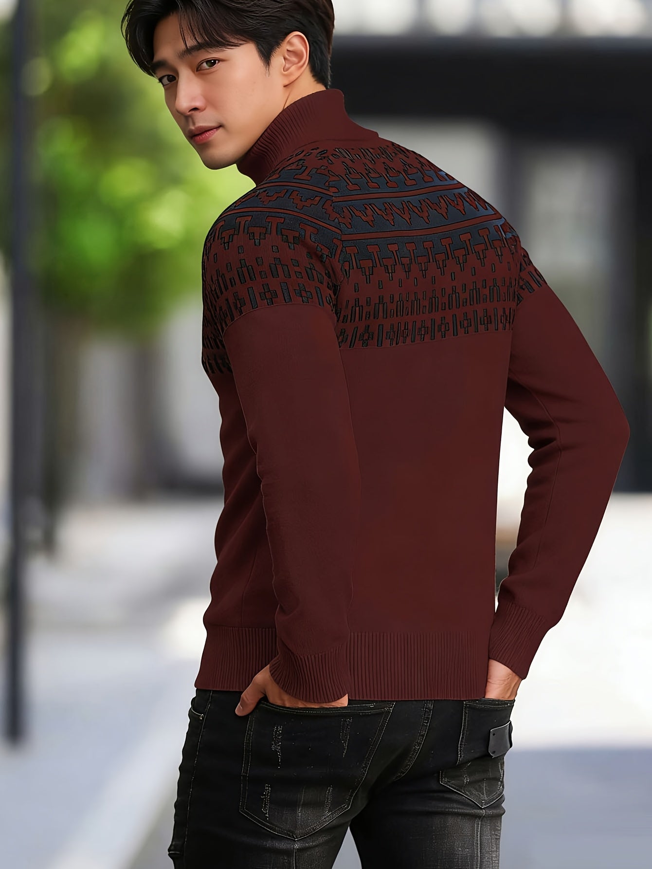 Տղամարդկանց միագույն, վանդակավոր, տաք, բարձր օձիքով, տրիկոտաժե, երկար թևքերով սվիտեր՝ աշնանը և ձմռանը առօրյա հագուստի համար