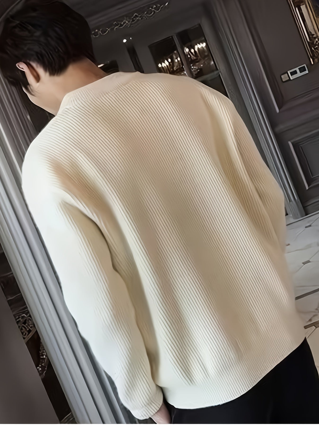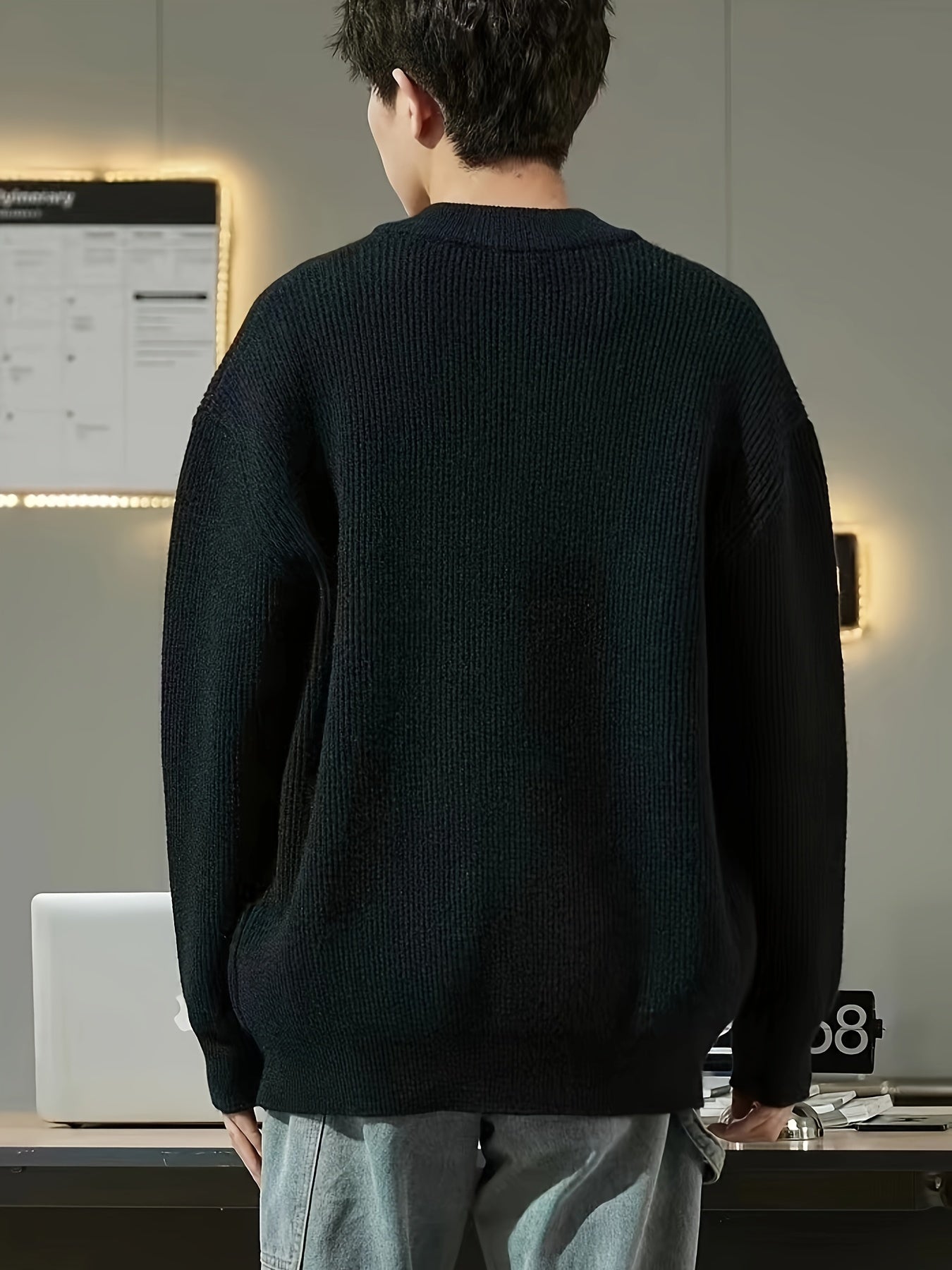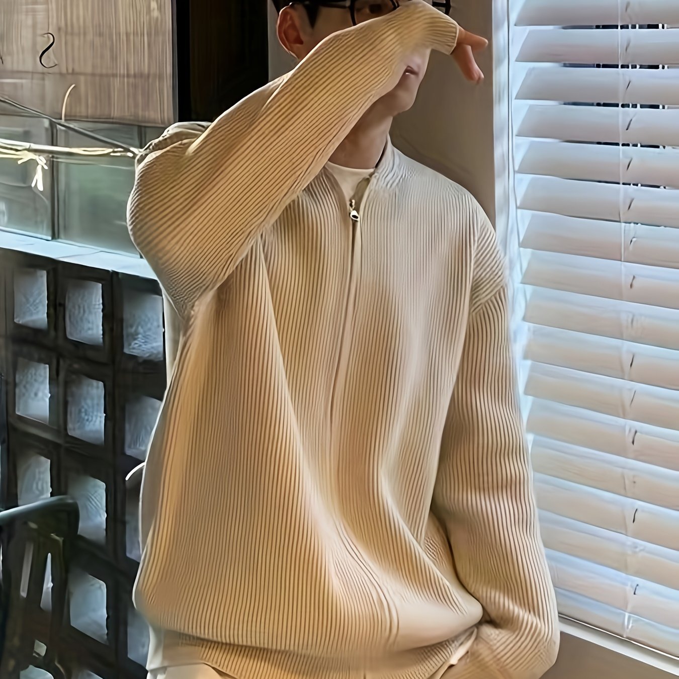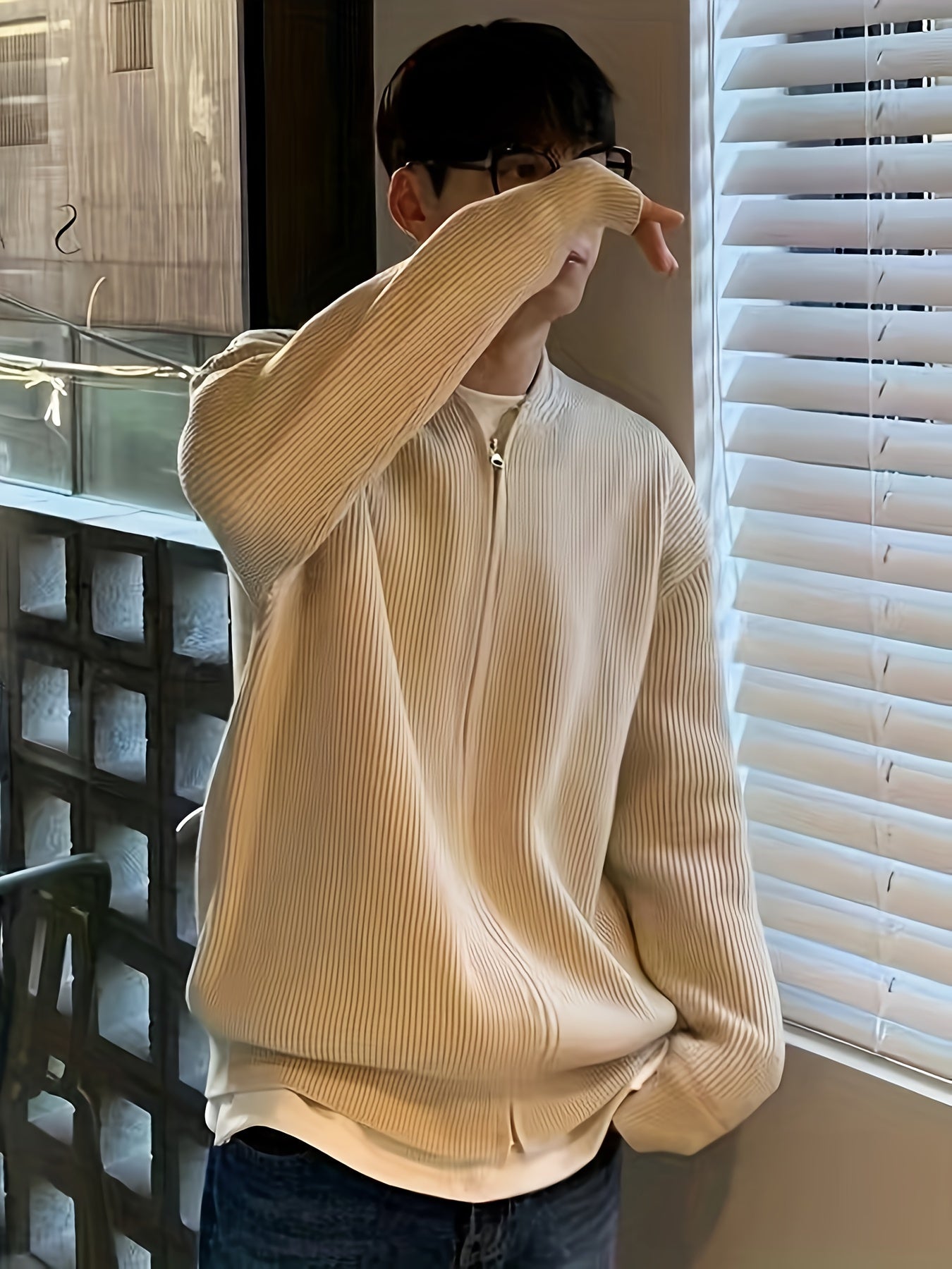 Տղամարդկանց պինդ գծավոր տրիկոտաժե ժակետ, պատահական երկարաթև վզով սվիտեր գարնանային աշնանային բացօթյա գործունեության համար