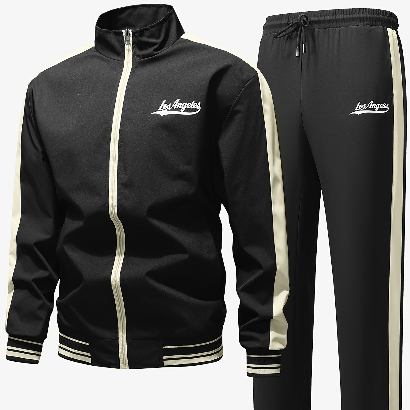Men's Sports Casual Jacket and Pants Set, Two-Tone Spliced Letter Print Design, Stylish All-Season Trendy Outfit, Preferred by Athletes TZ6062