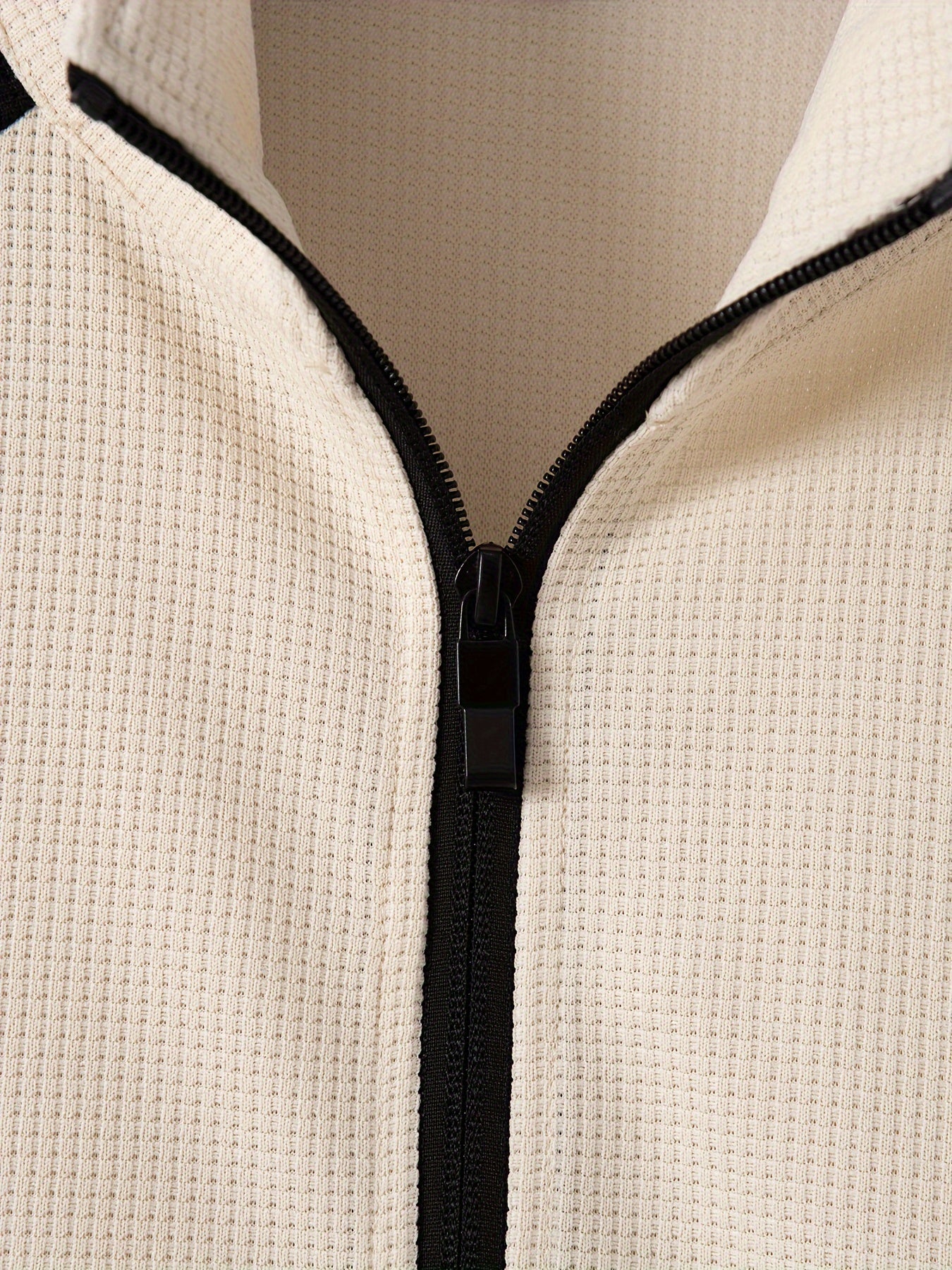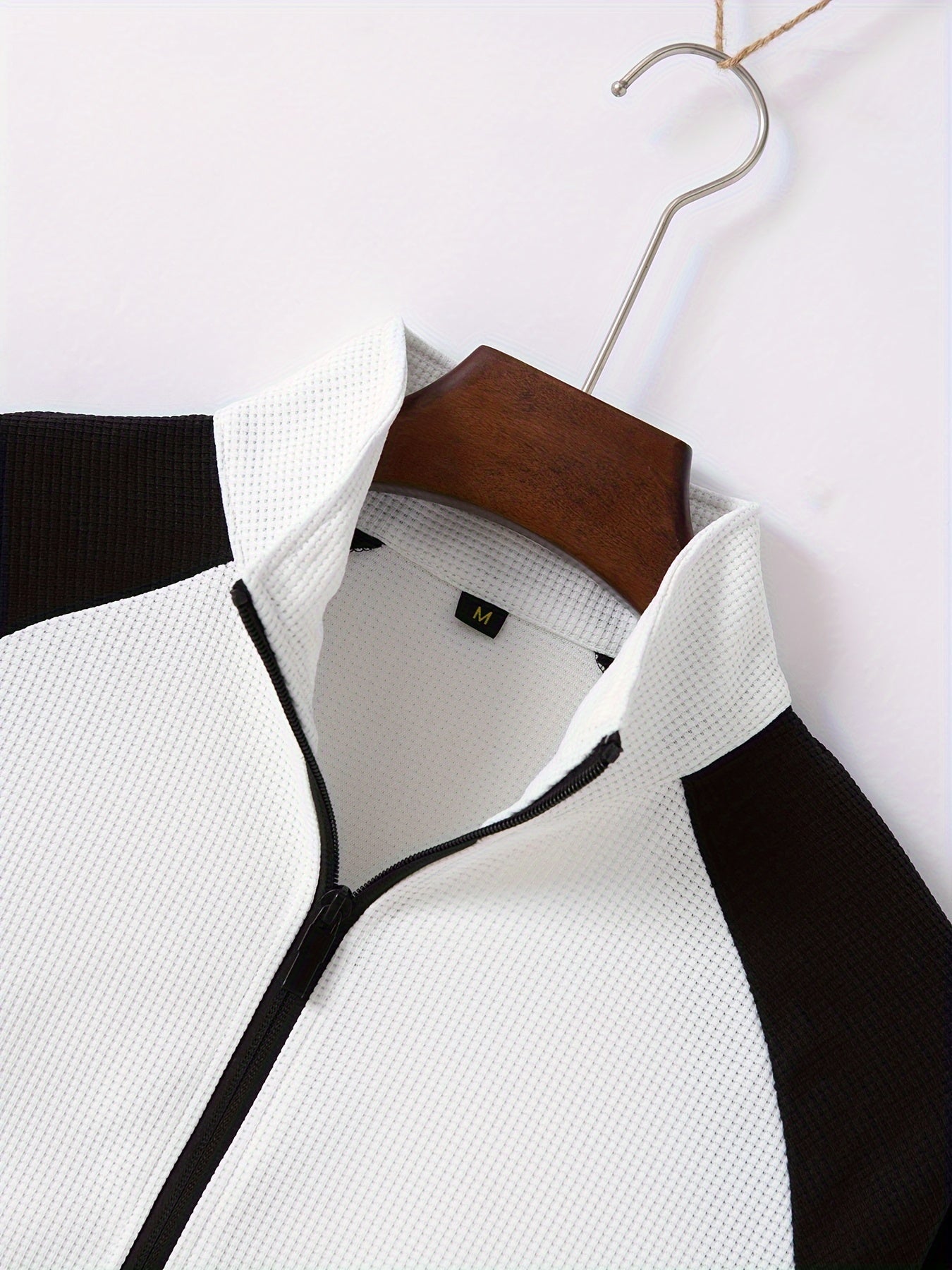 Men's Sporty Color Block Zip-Up Jacket & Joggers Set - Polyester Blend, Perfect for Spring/Fall