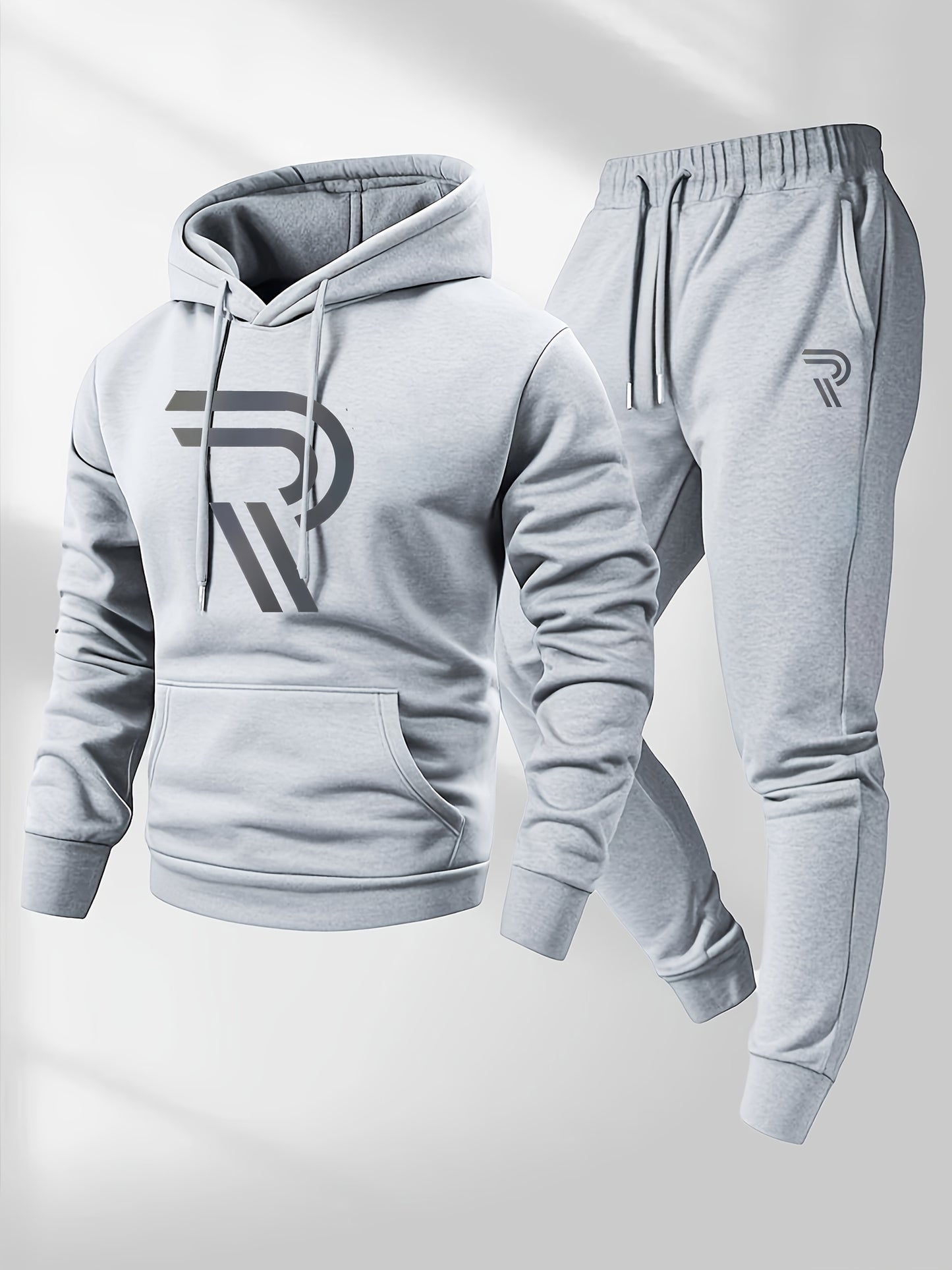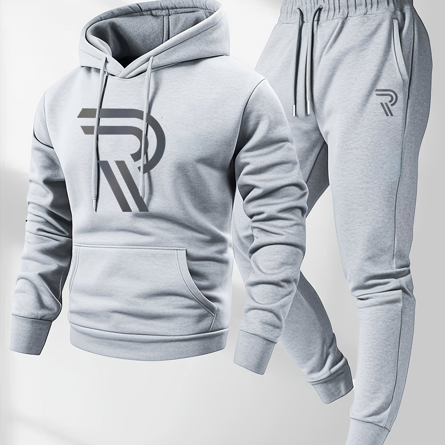 Men'S Sporty Two-Piece Hoodie and Pants Set - Gray with Black Logo, Non-Stretch Fabric, Regular Fit, Pockets, Ideal for Fall/Winter, Casual Wear|Hooded Sweatshirt|Pocketed Pants, Sweater Hoodie