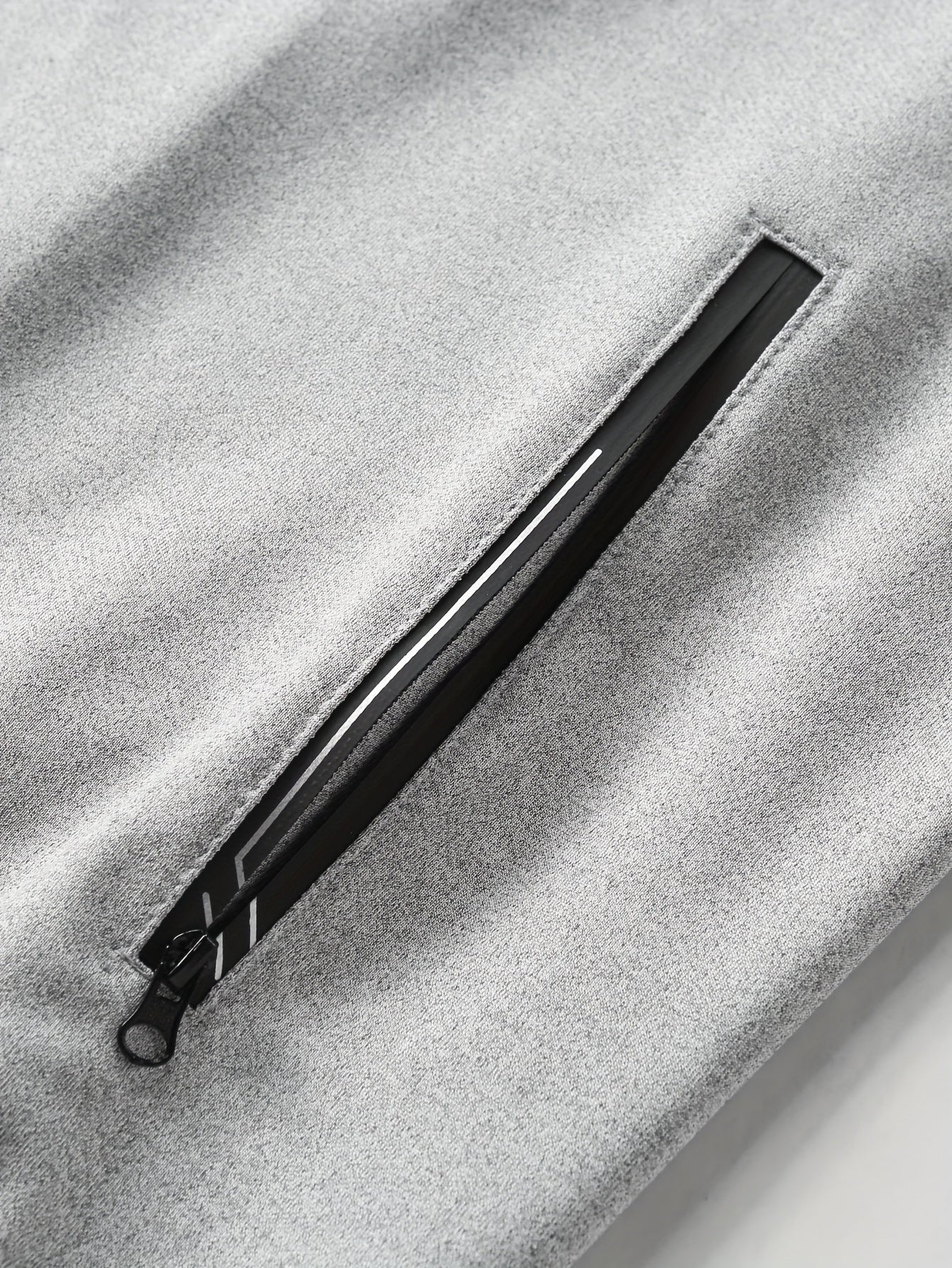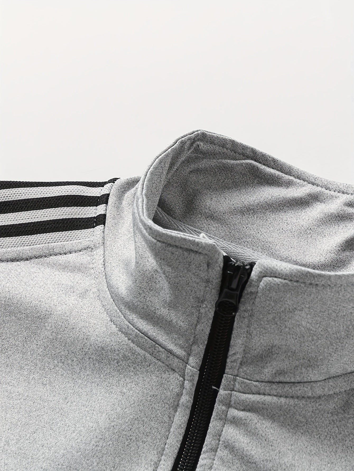 Men'S Spring And Autumn Sports Leisure Set Featuring a Stand-Up Collar Zip-Up Long Sleeve Top, Drawstring Waist Long Pants, Suitable for Running, Outdoor Fitness, And Home Wear, with Pockets And Zippers.