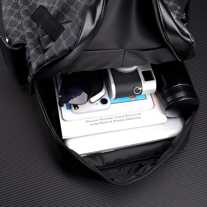 Men'S Stylish Black Brown Gingham Print Backpack - Versatile Commuter Bag with Multiple Pockets, Adjustable Straps, and Golden-Tone Hardware for Work, Travel, and Study, Travel Backpack Gingham Pattern Synthetic Backpac