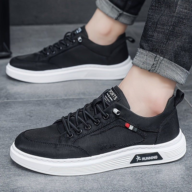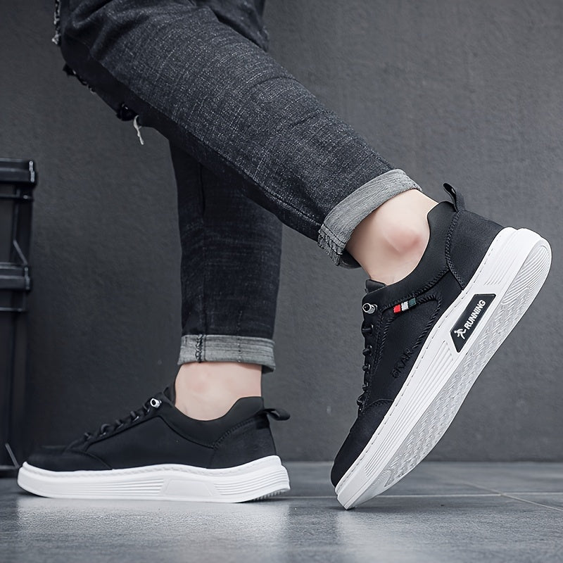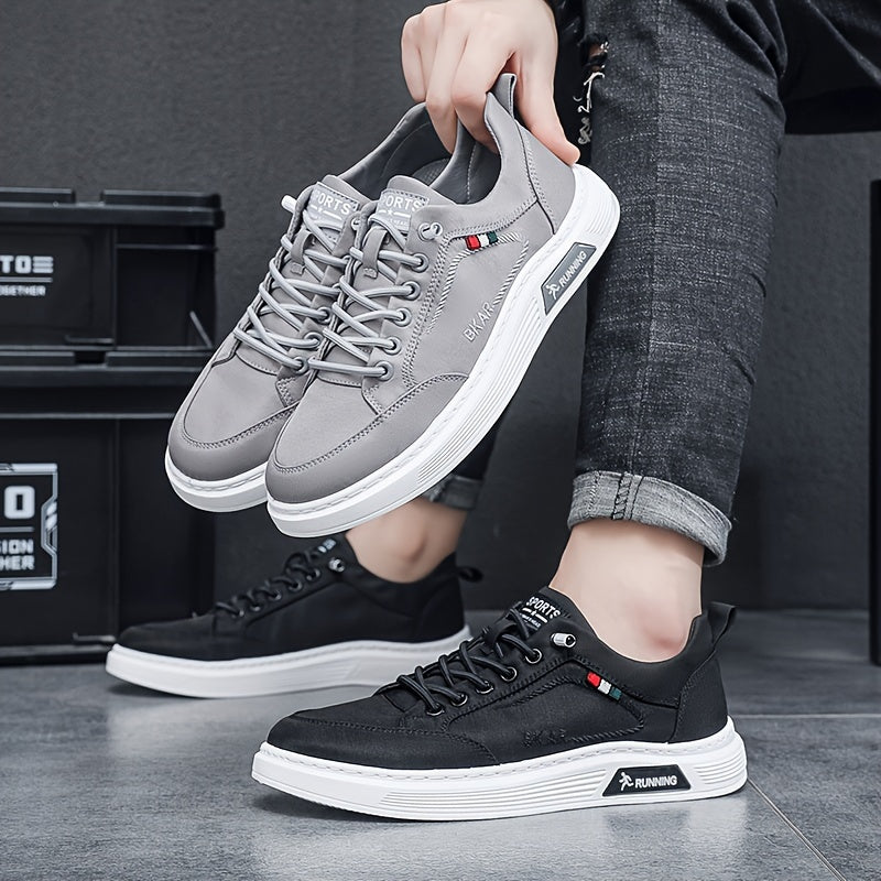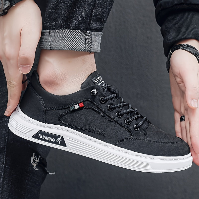 Տղամարդկանց նորաոճ սև սպորտային կոշիկներ՝ շնչող գործվածք, ցածր վերևի ձևավորում, առաձգական փակվող, հարմարավետ պատահական հագուստի և բացօթյա գործունեության համար