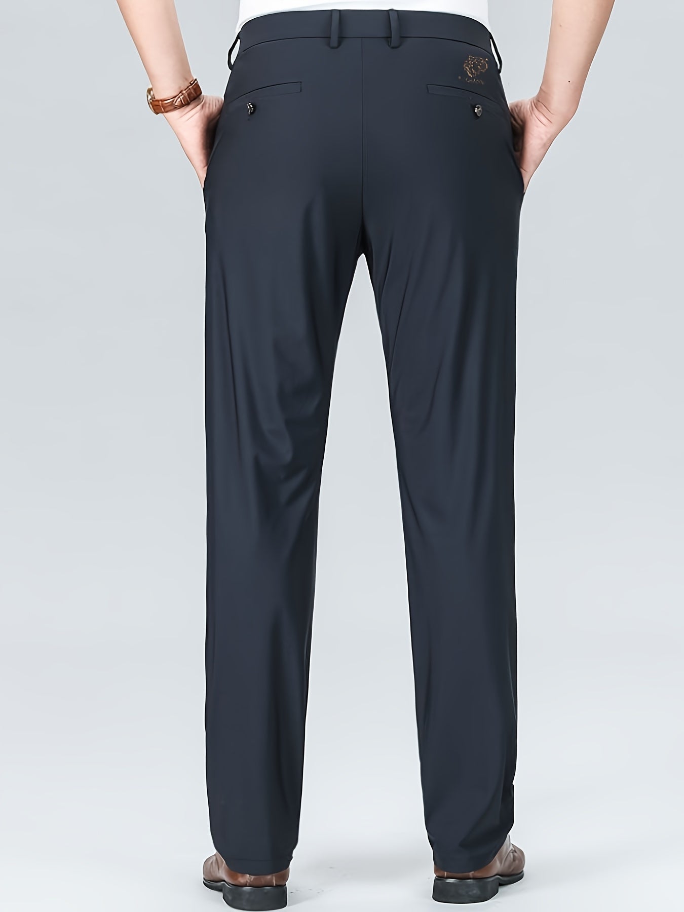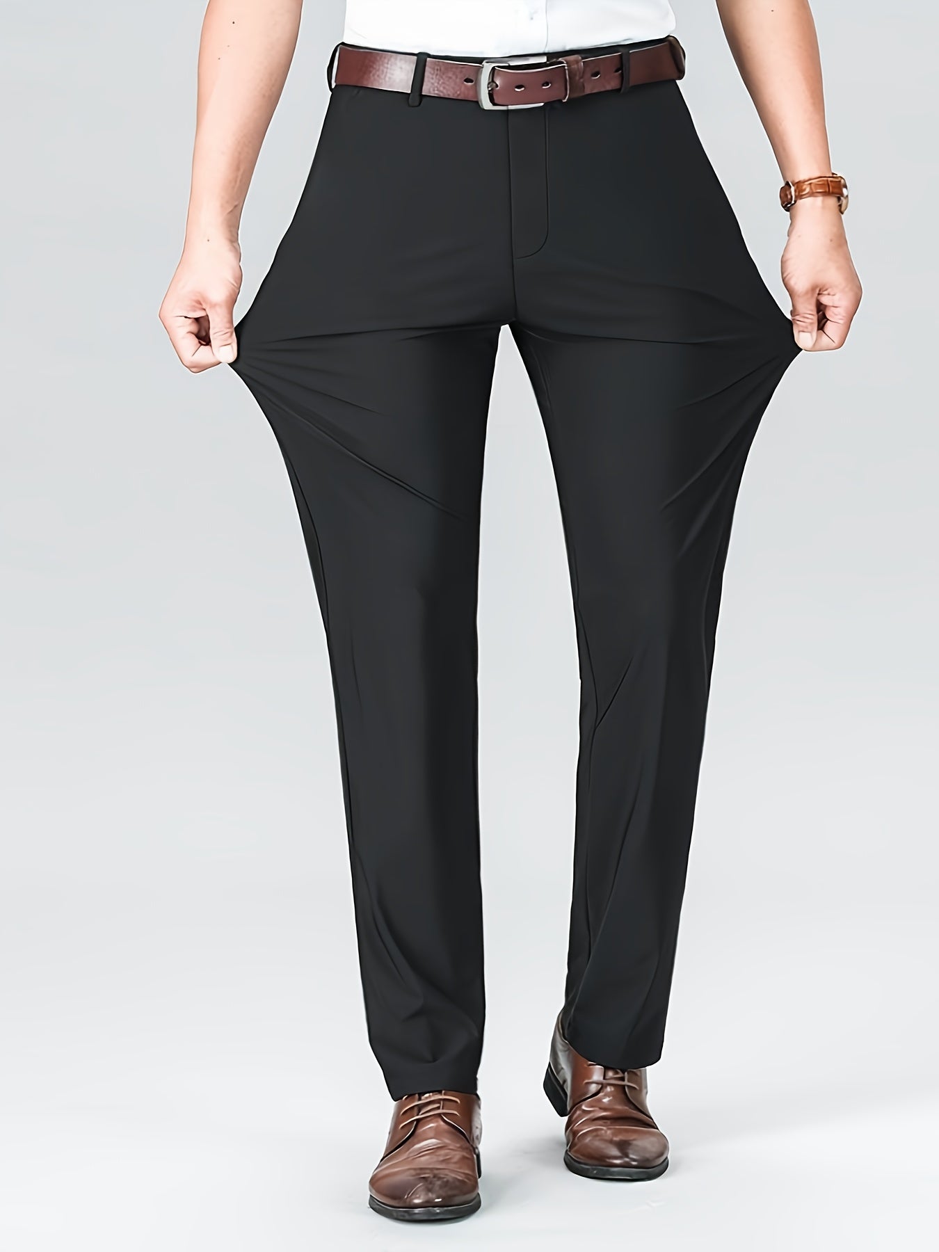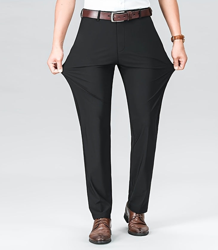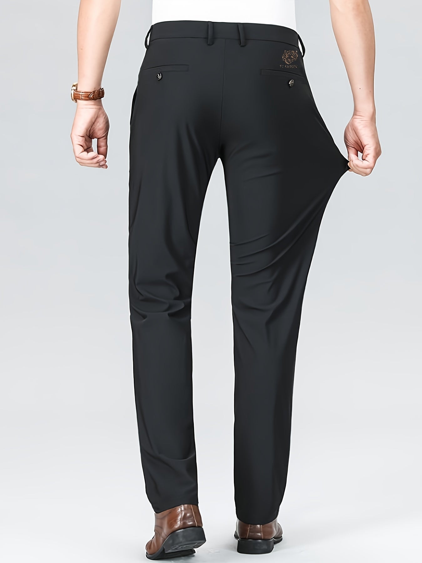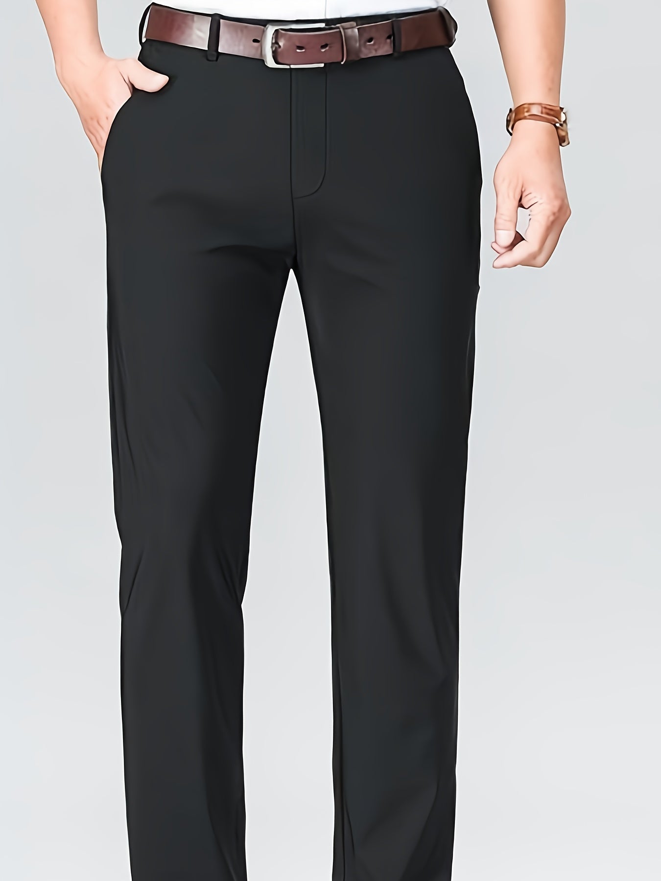 Տղամարդկանց նորաոճ սև շալվար - ազատ տեղավորվող, ուղիղ ոտքեր, պոլիեսթեր խառնուրդ, միջին գոտկատեղ, կոճակներով թռչող, սեզոնային հարմարավետություն, ամենօրյաից մինչև կիսաֆորմալ հագուստ, ամենօրյա աշխատանքային հագուստ | ուղիղ շալվար | պոլիեսթեր գործվածք