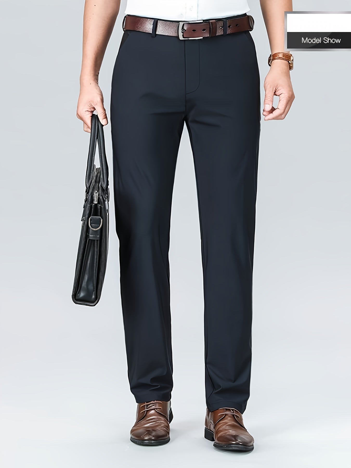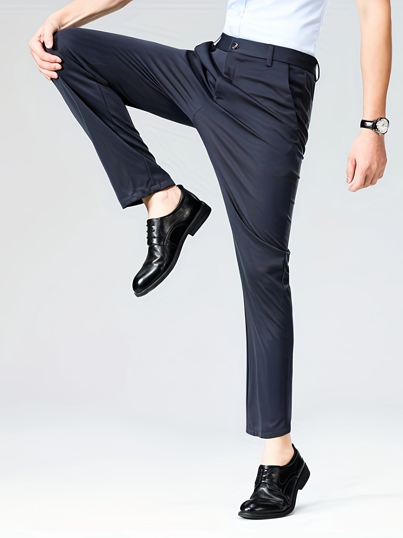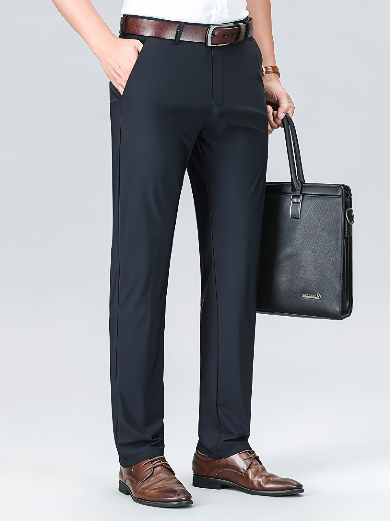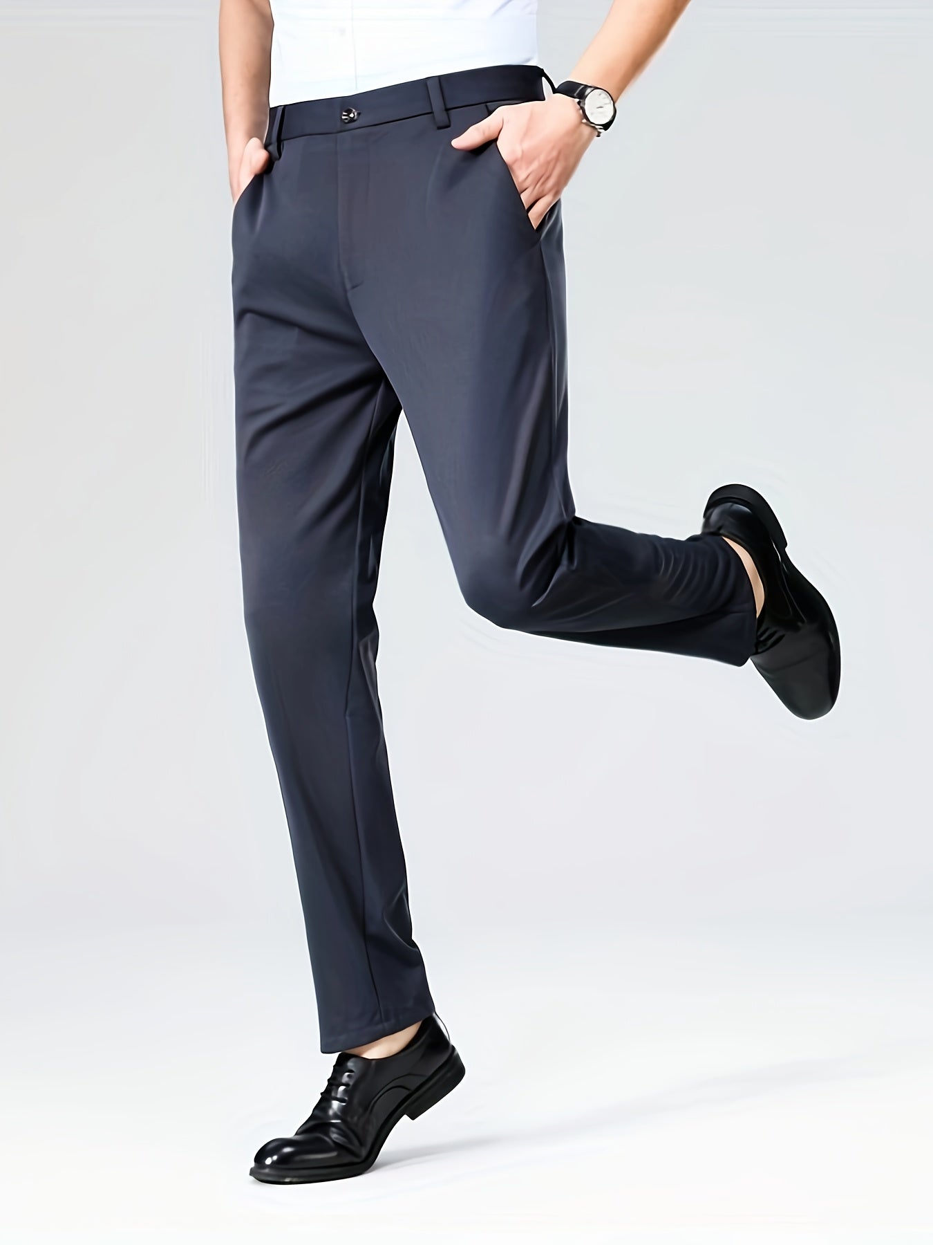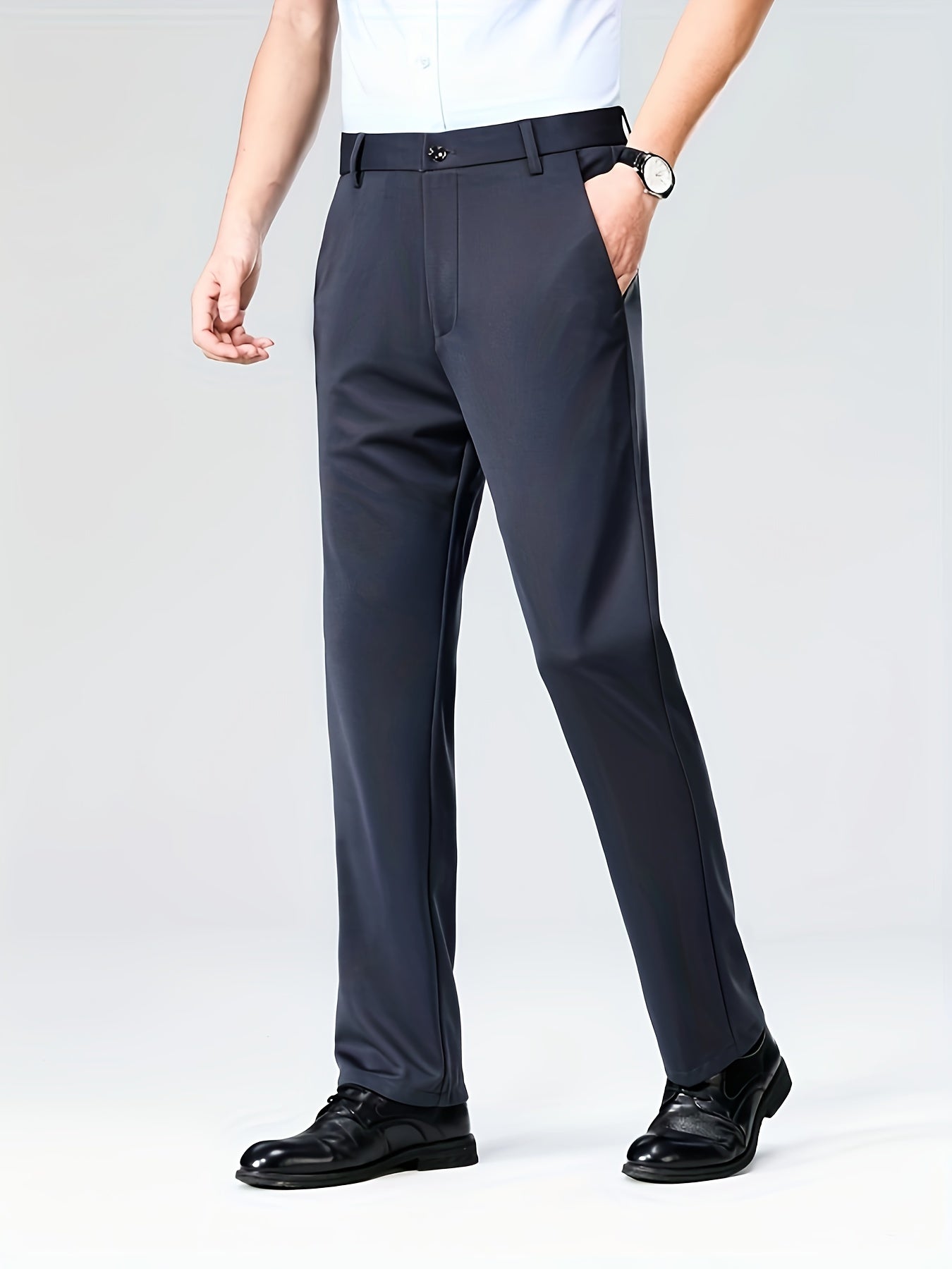 Տղամարդկանց նորաոճ սև շալվար - ազատ տեղավորվող, ուղիղ ոտքեր, պոլիեսթեր խառնուրդ, միջին գոտկատեղ, կոճակներով թռչող, սեզոնային հարմարավետություն, ամենօրյաից մինչև կիսաֆորմալ հագուստ, ամենօրյա աշխատանքային հագուստ | ուղիղ շալվար | պոլիեսթեր գործվածք