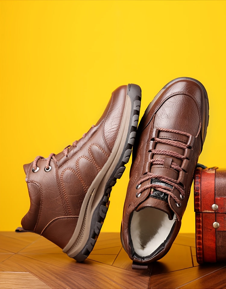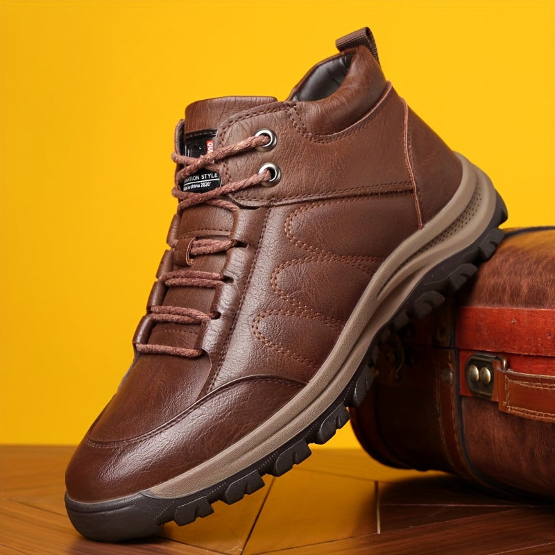 Men'S Stylish Black Leather High-Top Boots - Casual, Fashionable, Business-Ready with Lace-Up Closure, Rubber Sole, and Round Toe Design for Winter Sports and Daily Wear, Winter Boots|Stylish High Boots|Laceup Boots