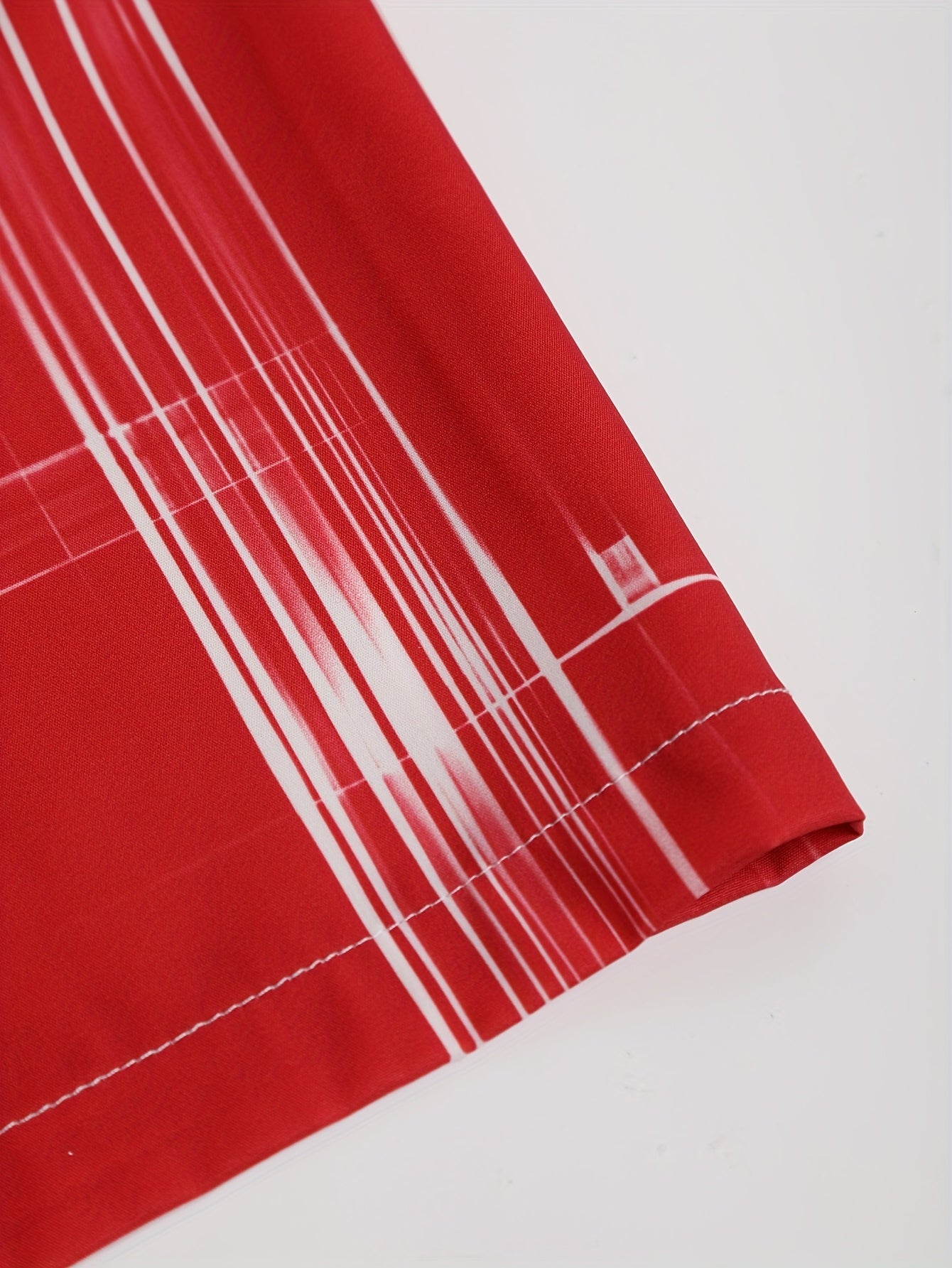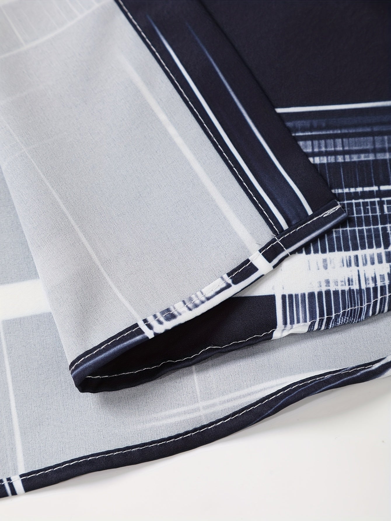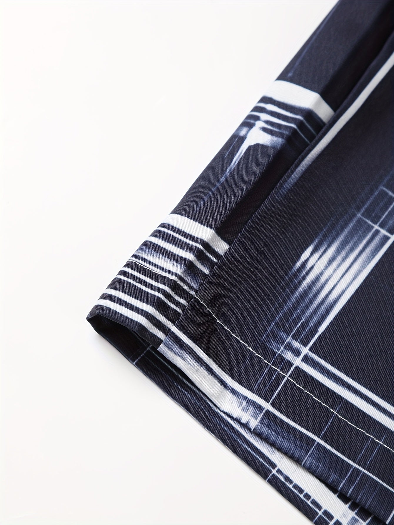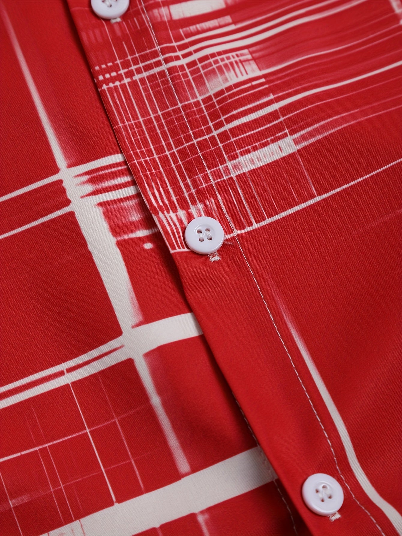 Men'S Stylish Gradient Shirt Set - Brown & White Geometric Pattern, Short Sleeve with Pocket, Loose Fit Shorts, Perfect for Beach, Camping, Fishing & Outdoor Activities, Casual Attire|Geometric Pattern Shirt|Woven Fabri