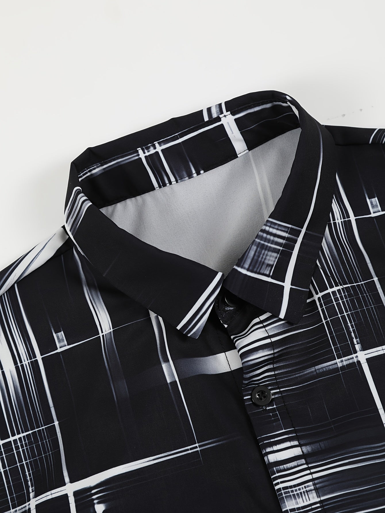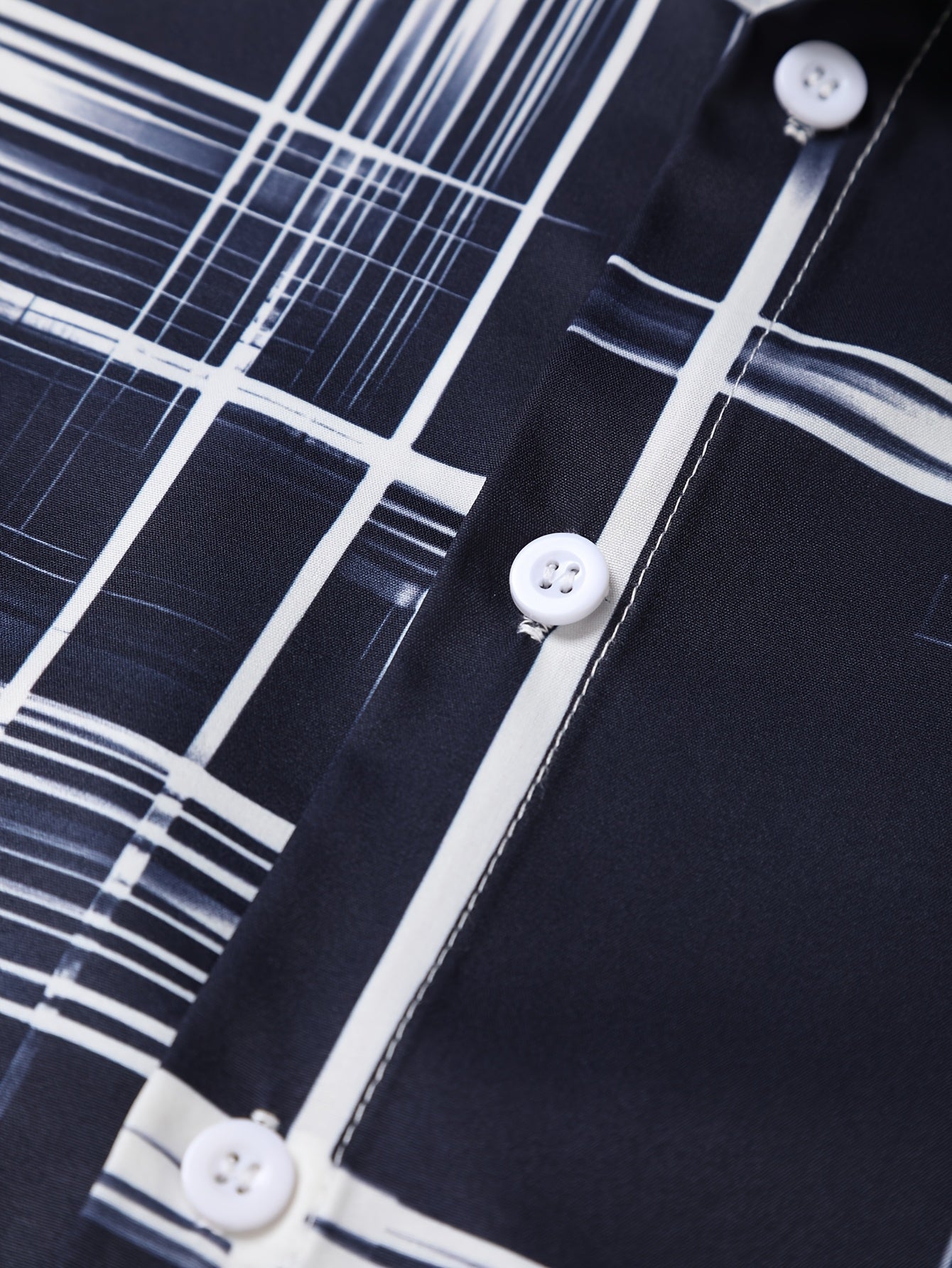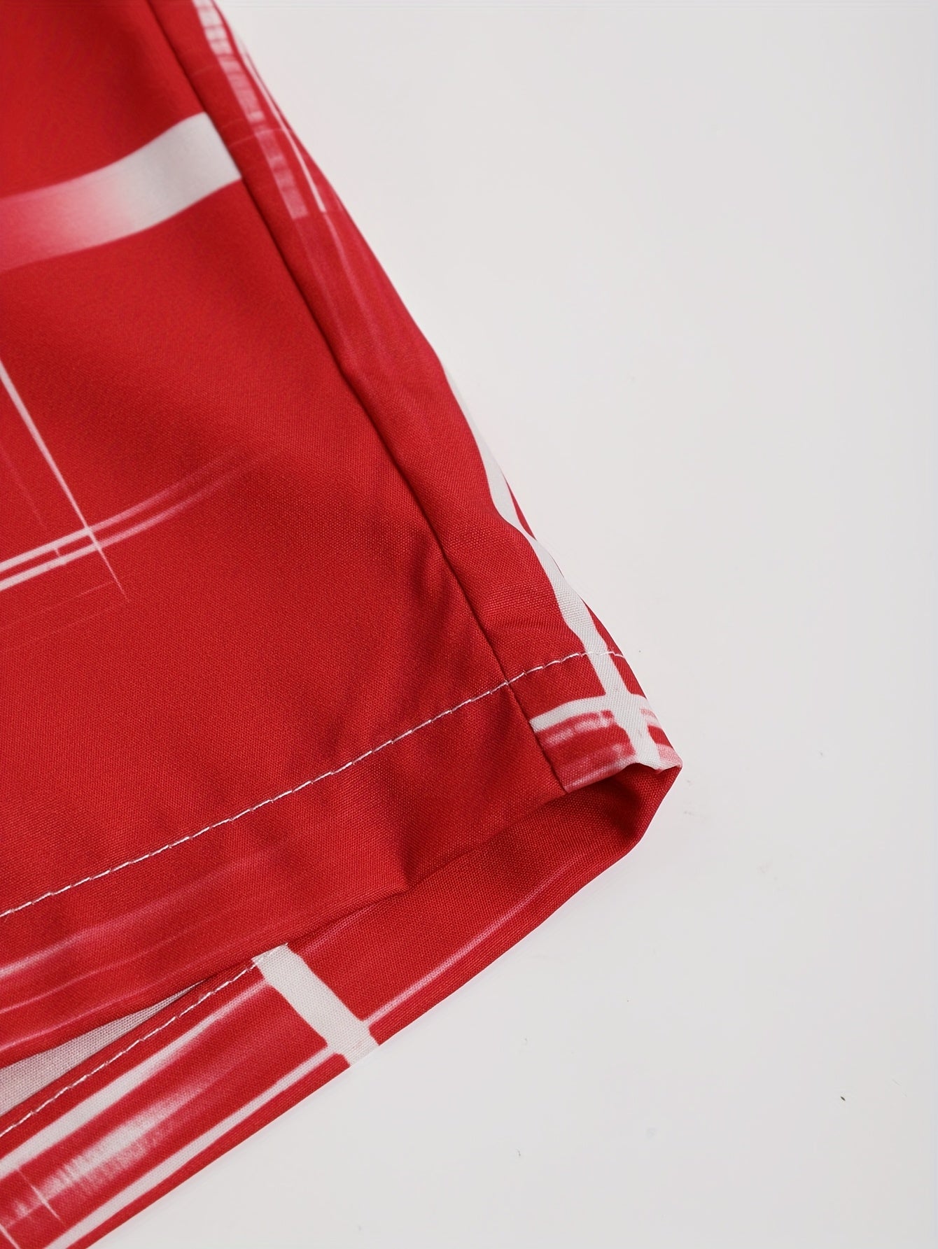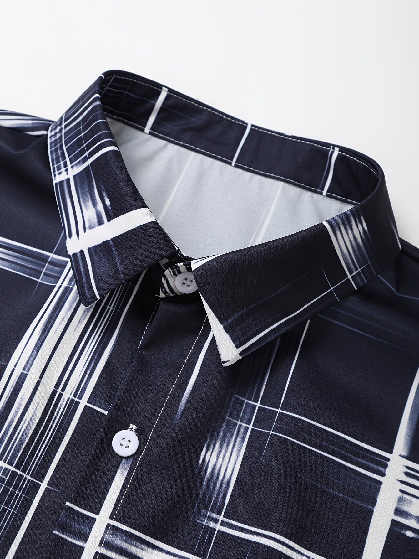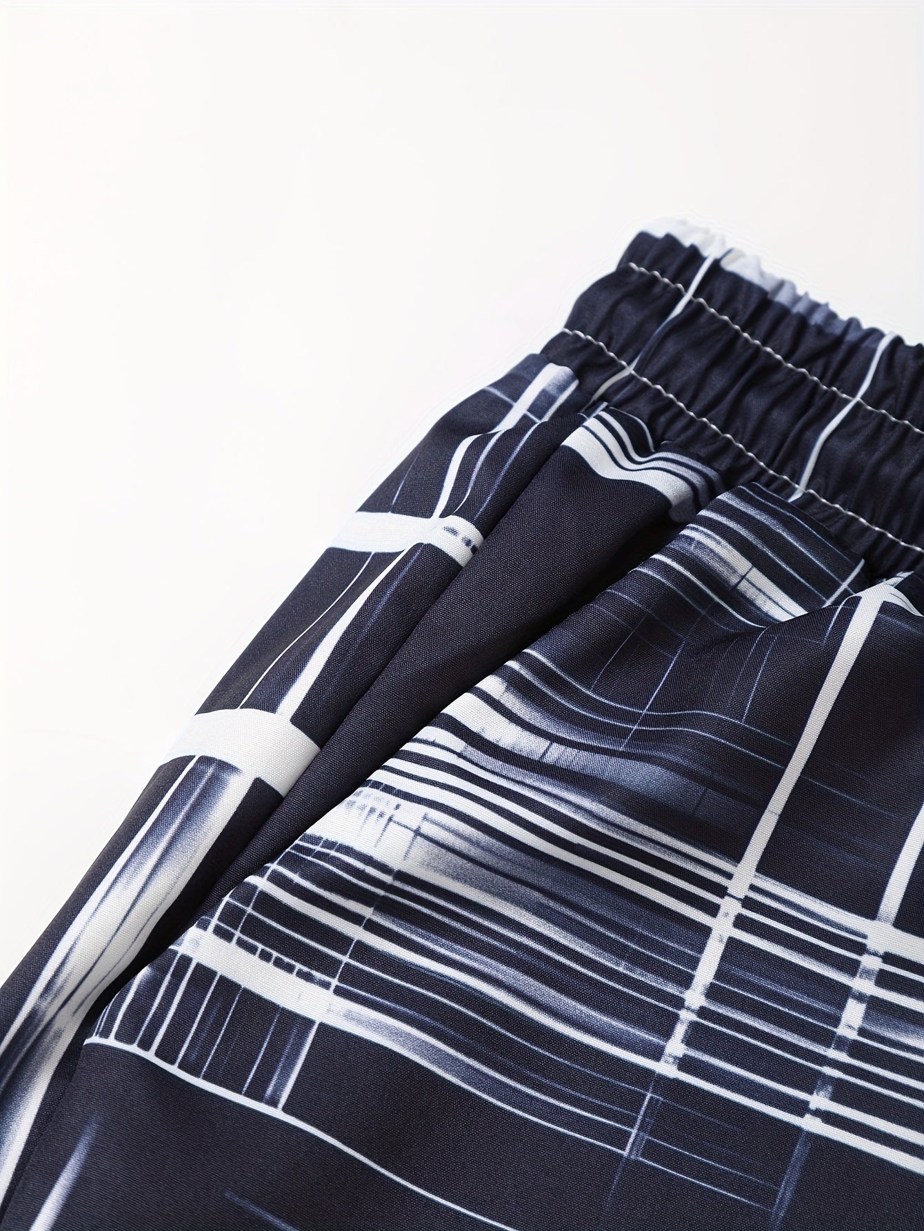Men'S Stylish Gradient Shirt Set - Brown & White Geometric Pattern, Short Sleeve with Pocket, Loose Fit Shorts, Perfect for Beach, Camping, Fishing & Outdoor Activities, Casual Attire|Geometric Pattern Shirt|Woven Fabri