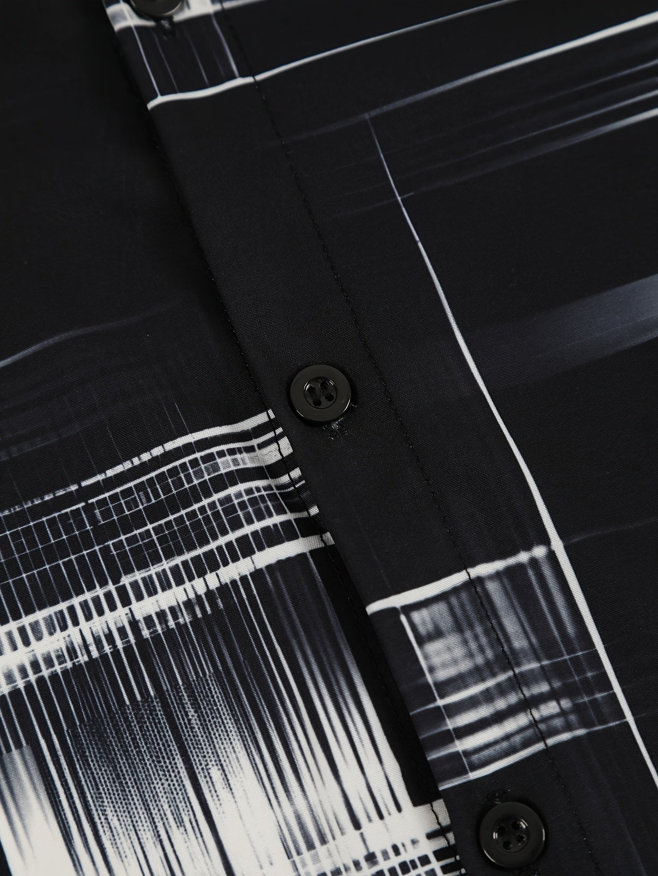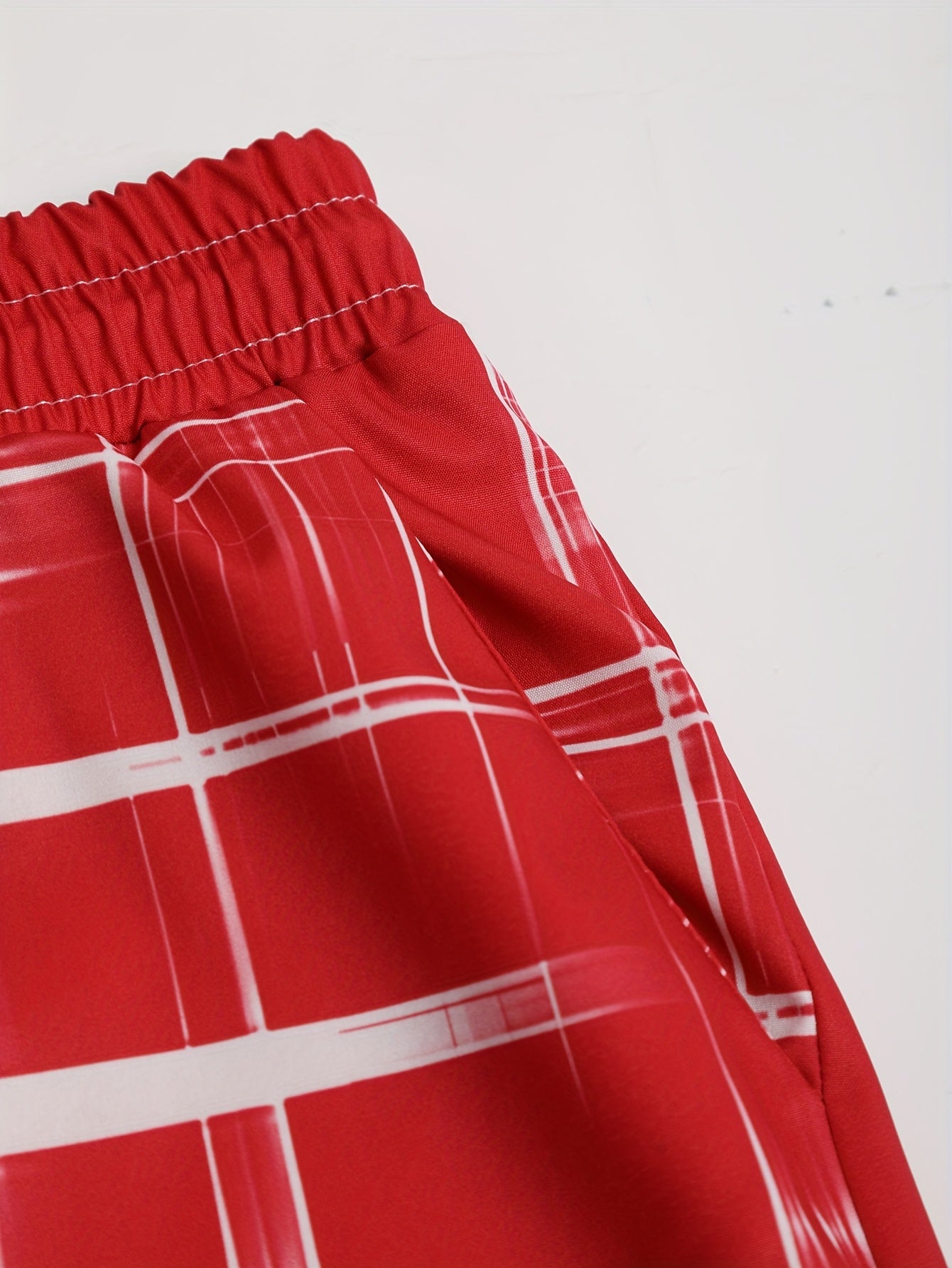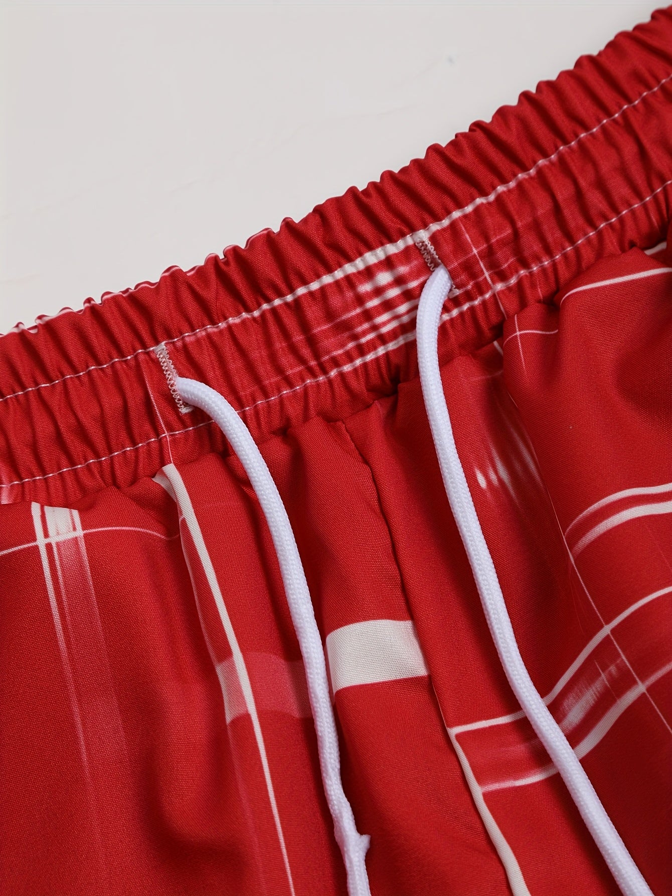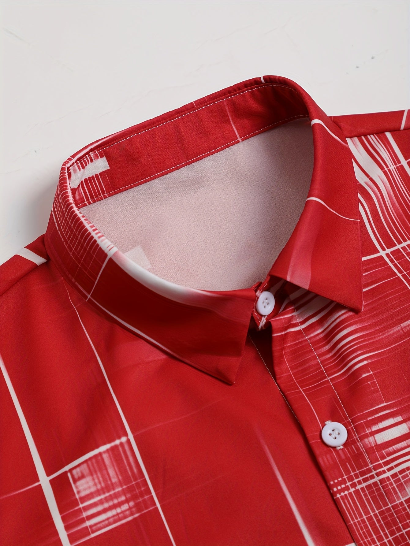 Men'S Stylish Gradient Shirt Set - Brown & White Geometric Pattern, Short Sleeve with Pocket, Loose Fit Shorts, Perfect for Beach, Camping, Fishing & Outdoor Activities, Casual Attire|Geometric Pattern Shirt|Woven Fabri