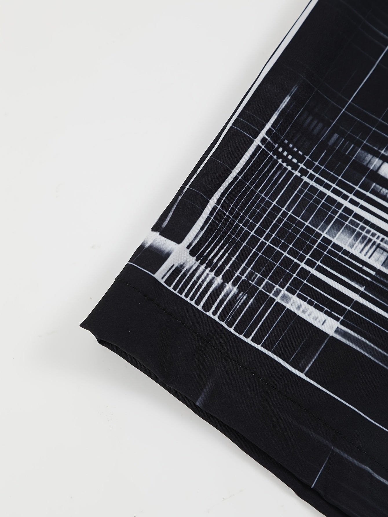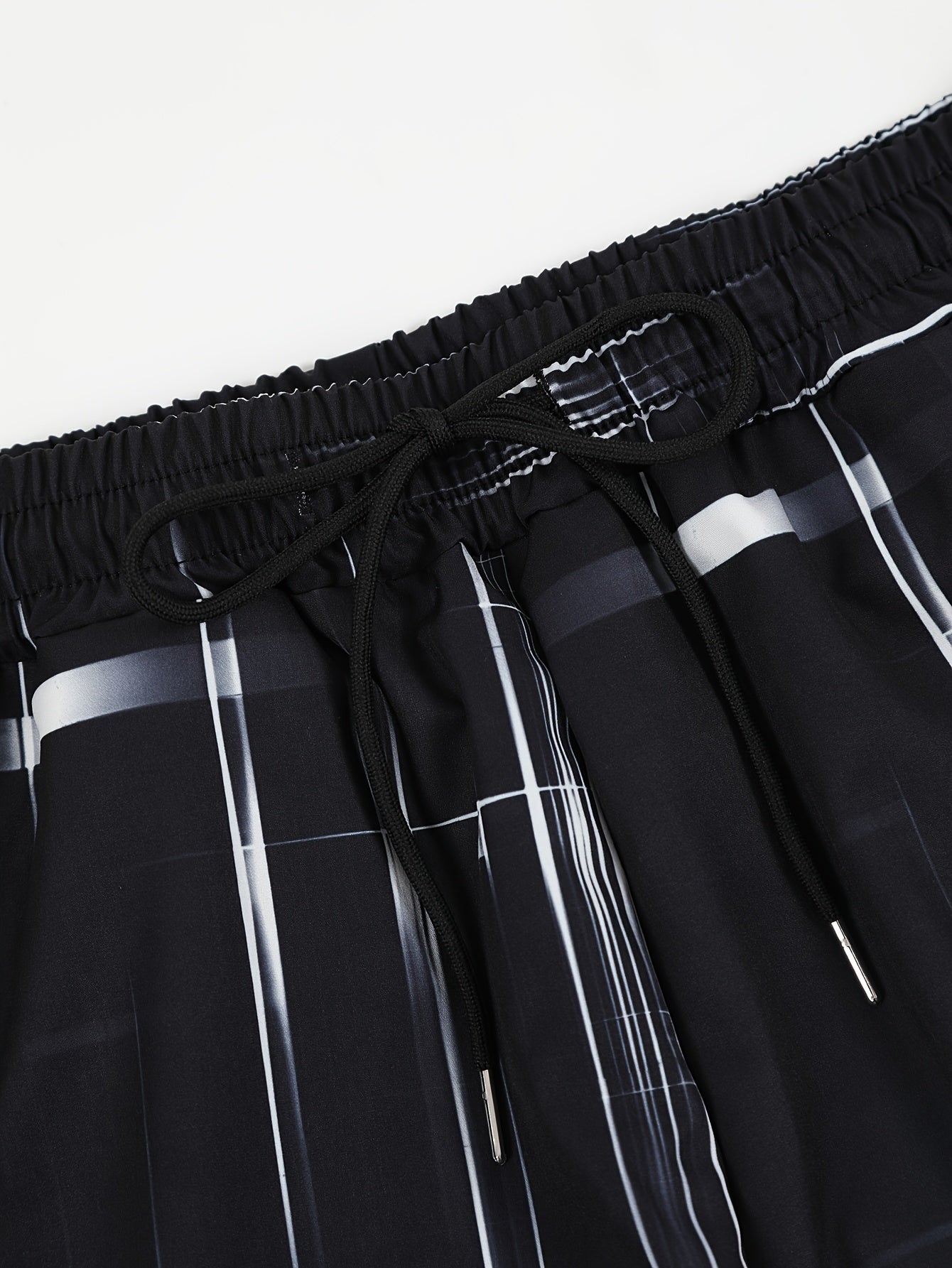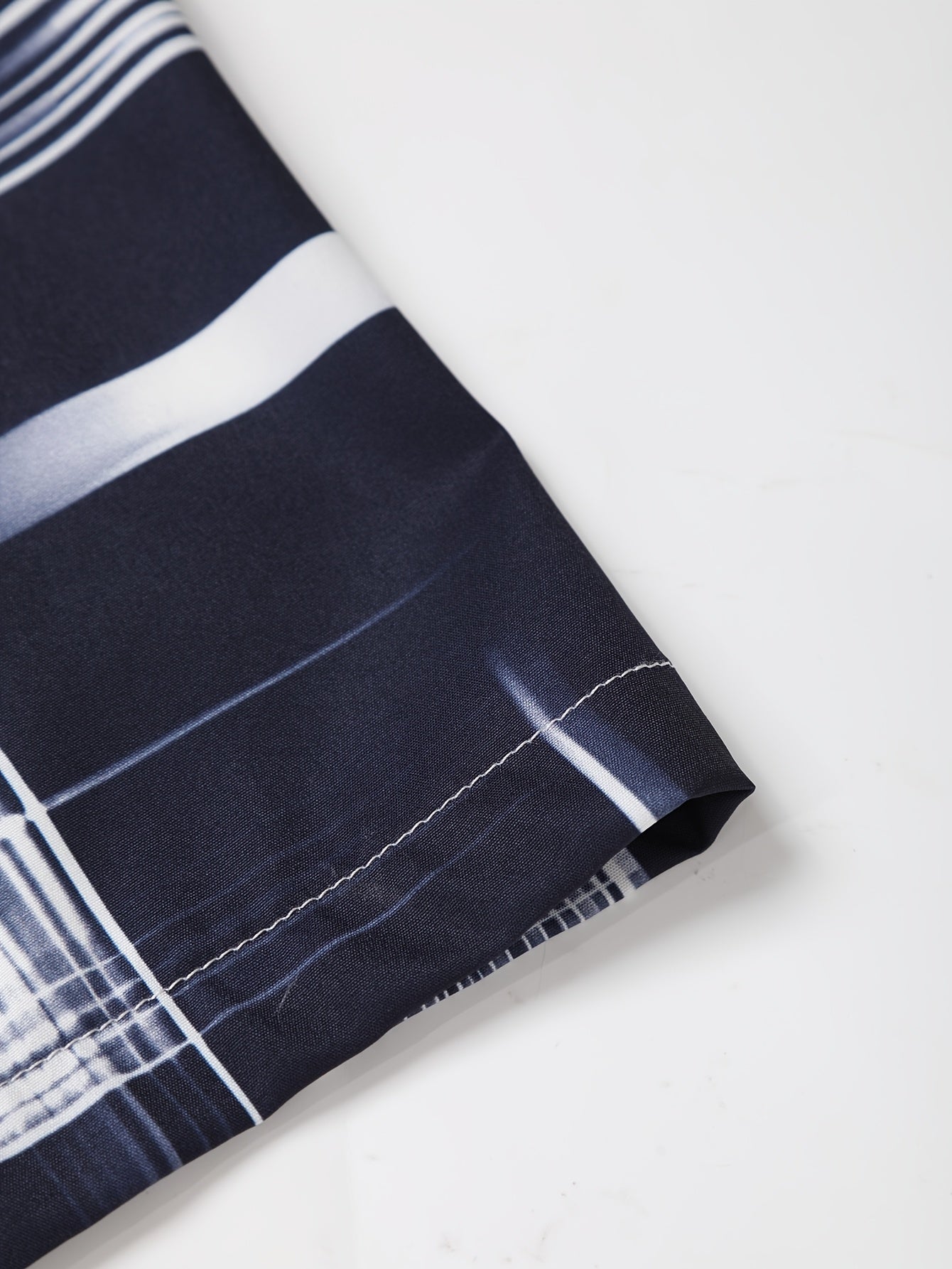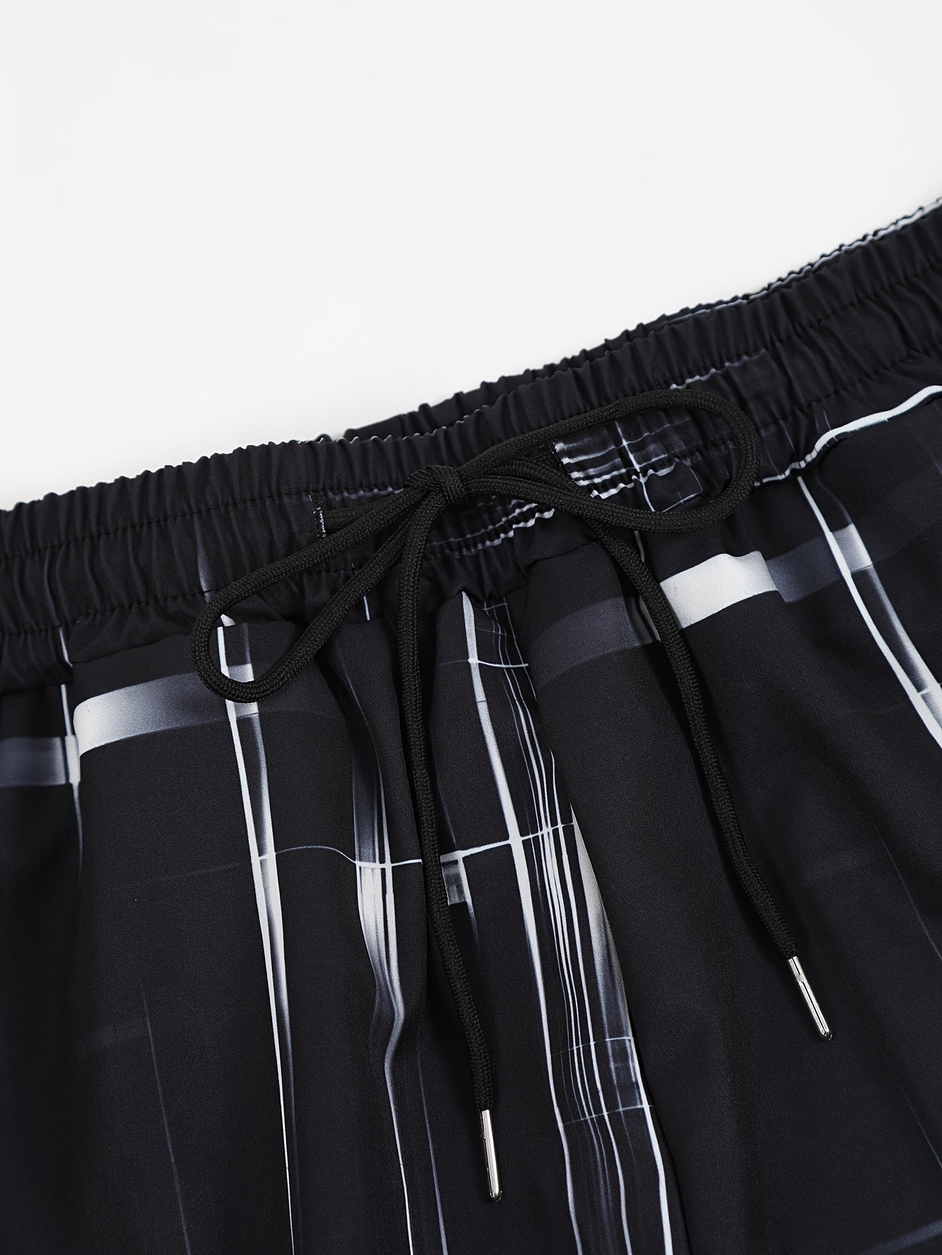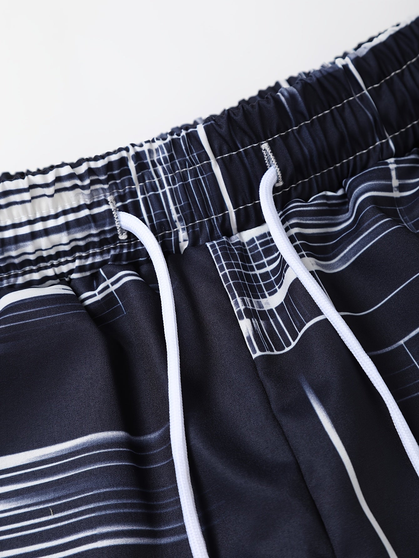 Men'S Stylish Gradient Shirt Set - Brown & White Geometric Pattern, Short Sleeve with Pocket, Loose Fit Shorts, Perfect for Beach, Camping, Fishing & Outdoor Activities, Casual Attire|Geometric Pattern Shirt|Woven Fabri