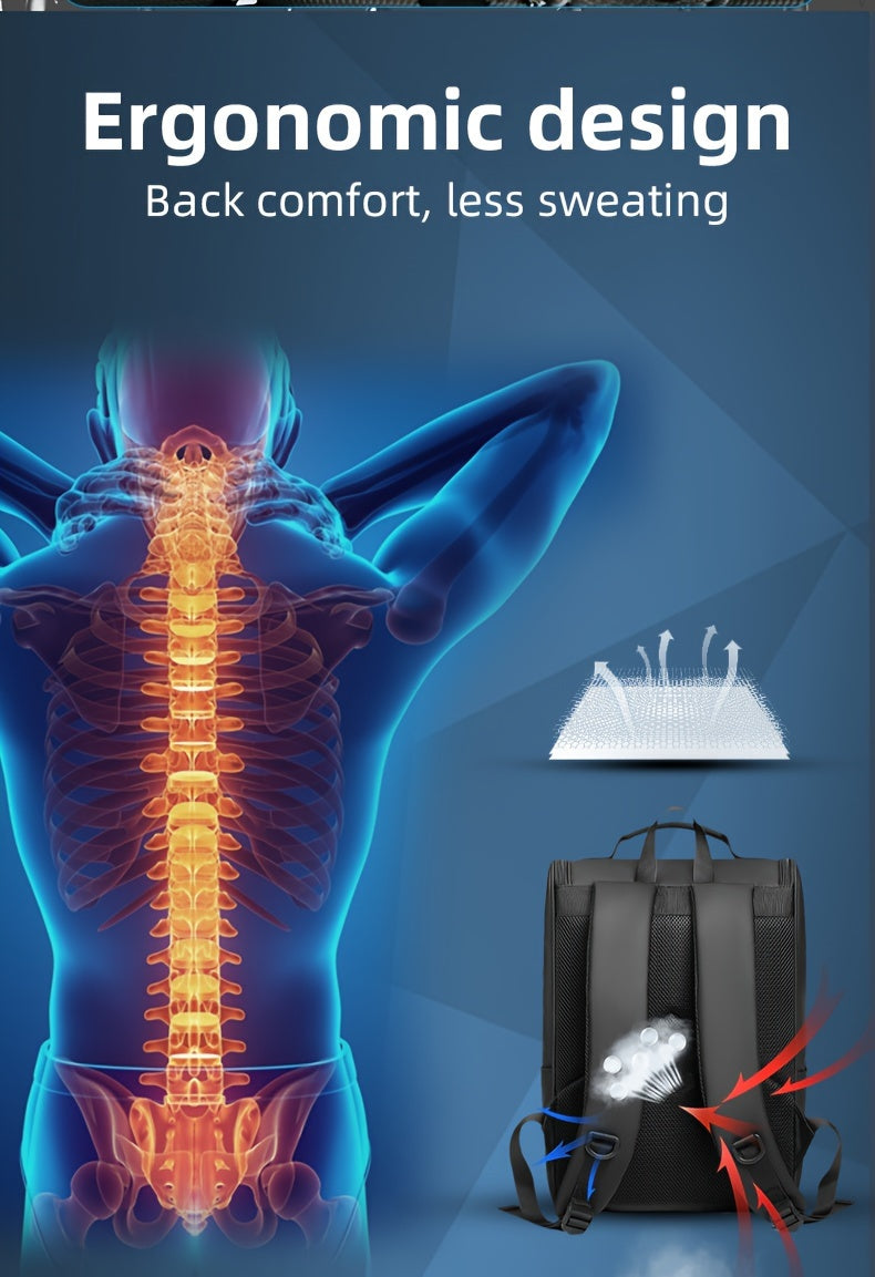 Men'S Stylish Large Capacity Commuter Backpack - Black Oxford Fabric, Durable with Multiple Compartments and Adjustable Straps, Ideal for Office, Student, University, School, Travel, Commute, Travel Backpack Casual Style Ba