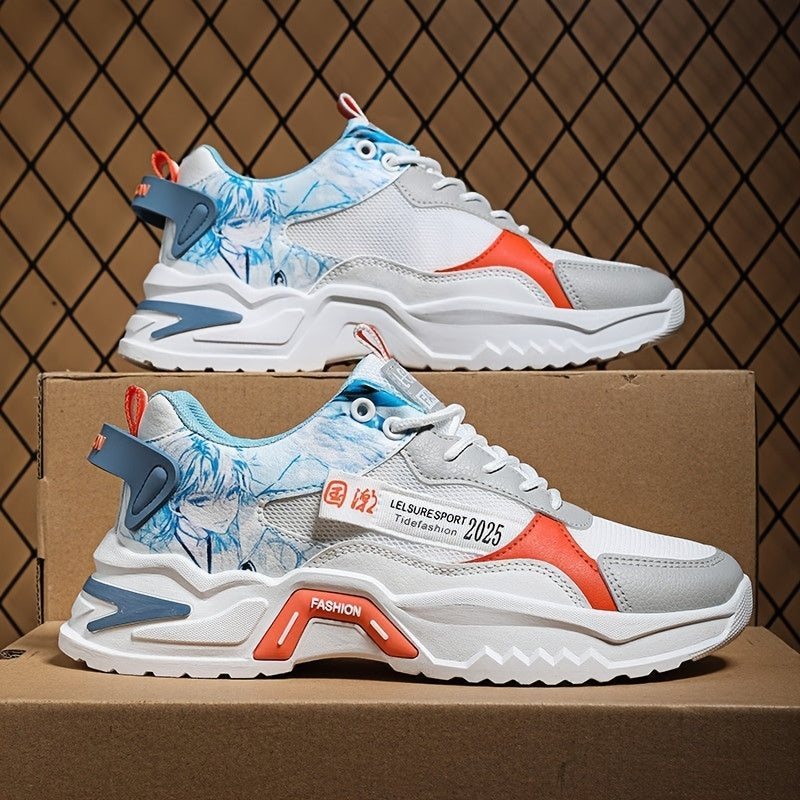 Տղամարդու նորաձև պլատֆորմային սպորտային կոշիկներ ալիքավոր նախշերով՝ հարմարավետ, չսահող և դիմացկուն՝ բացօթյա, համալսարանական զբոսանքների և ճանապարհորդությունների համար | Կապվող, շնչող դիզայն, աշնանային, գարնանային