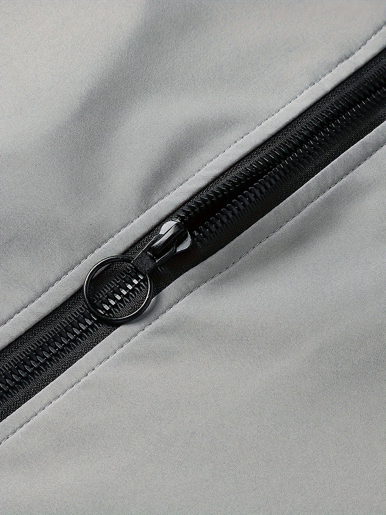Men's Stylish Windproof Jacket - Solid Color, Stand Collar, Zip-Up with Pockets, Lightweight Polyester for All Seasons, Casual & Outdoor Wear, Allseason Jacket | Zipup Jacket | Polyester Jacket, Windbreaker Jacket