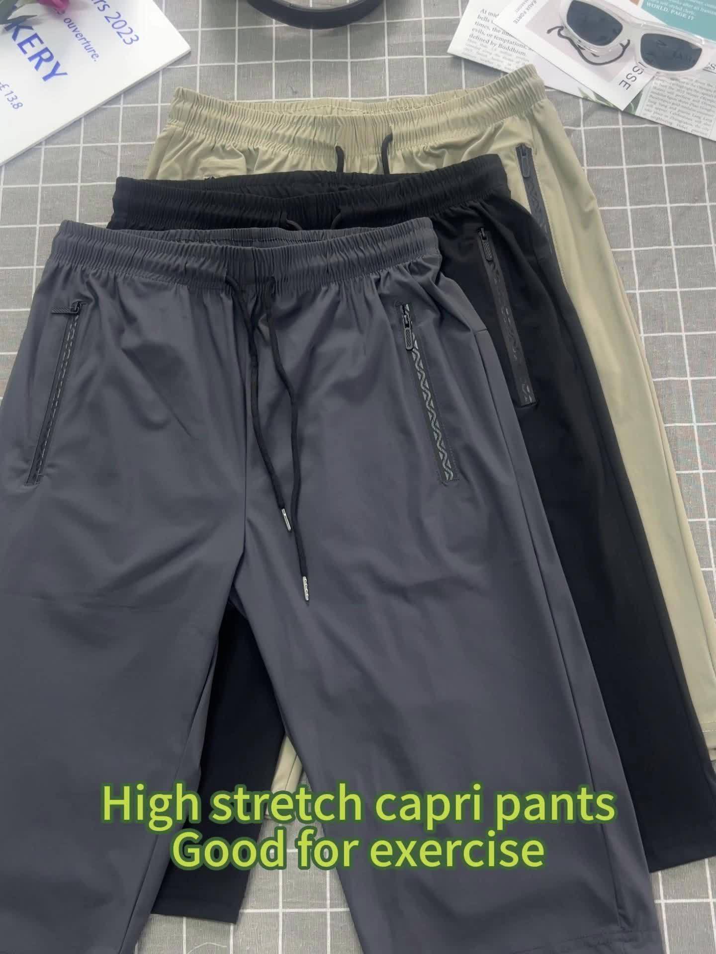 Տղամարդկանց ամառային կապրի շալվարը պատրաստված է բարձր առաձգական գործվածքից, որն ունի նորաձև գոտկատեղով առաձգական գոտի և կայծակաճարմանդ գրպաններ, հարմար է պատահական սպորտի, բացօթյա գործունեության և ամենօրյա հագուստի համար: