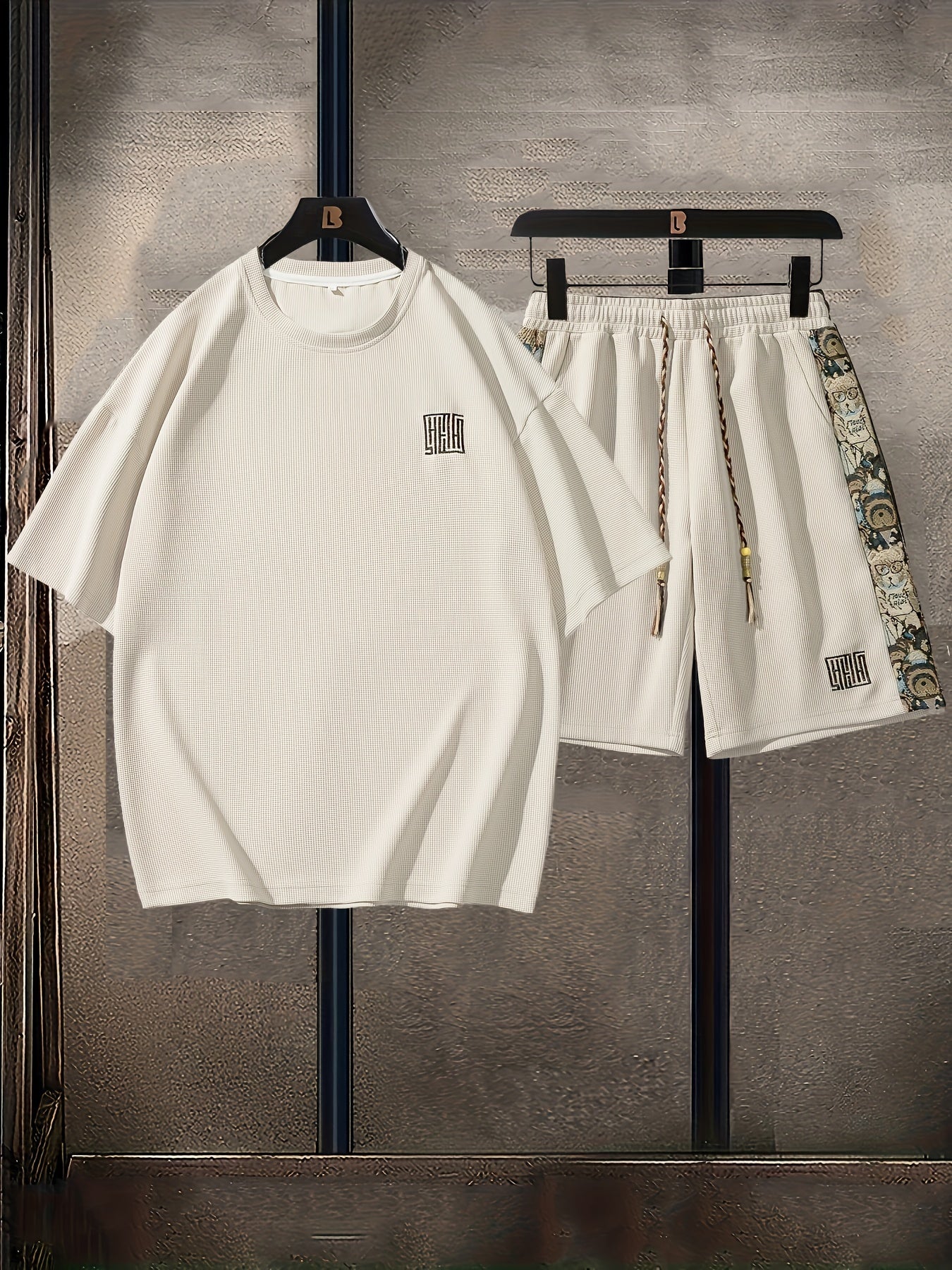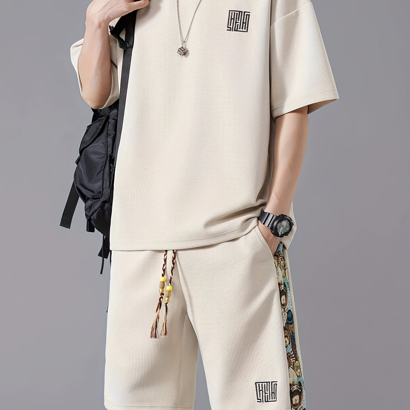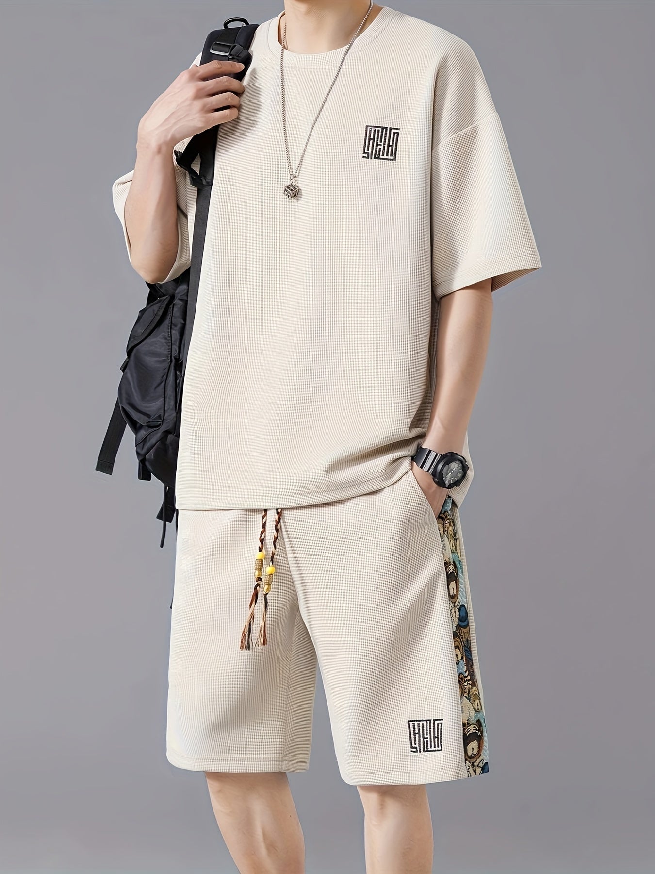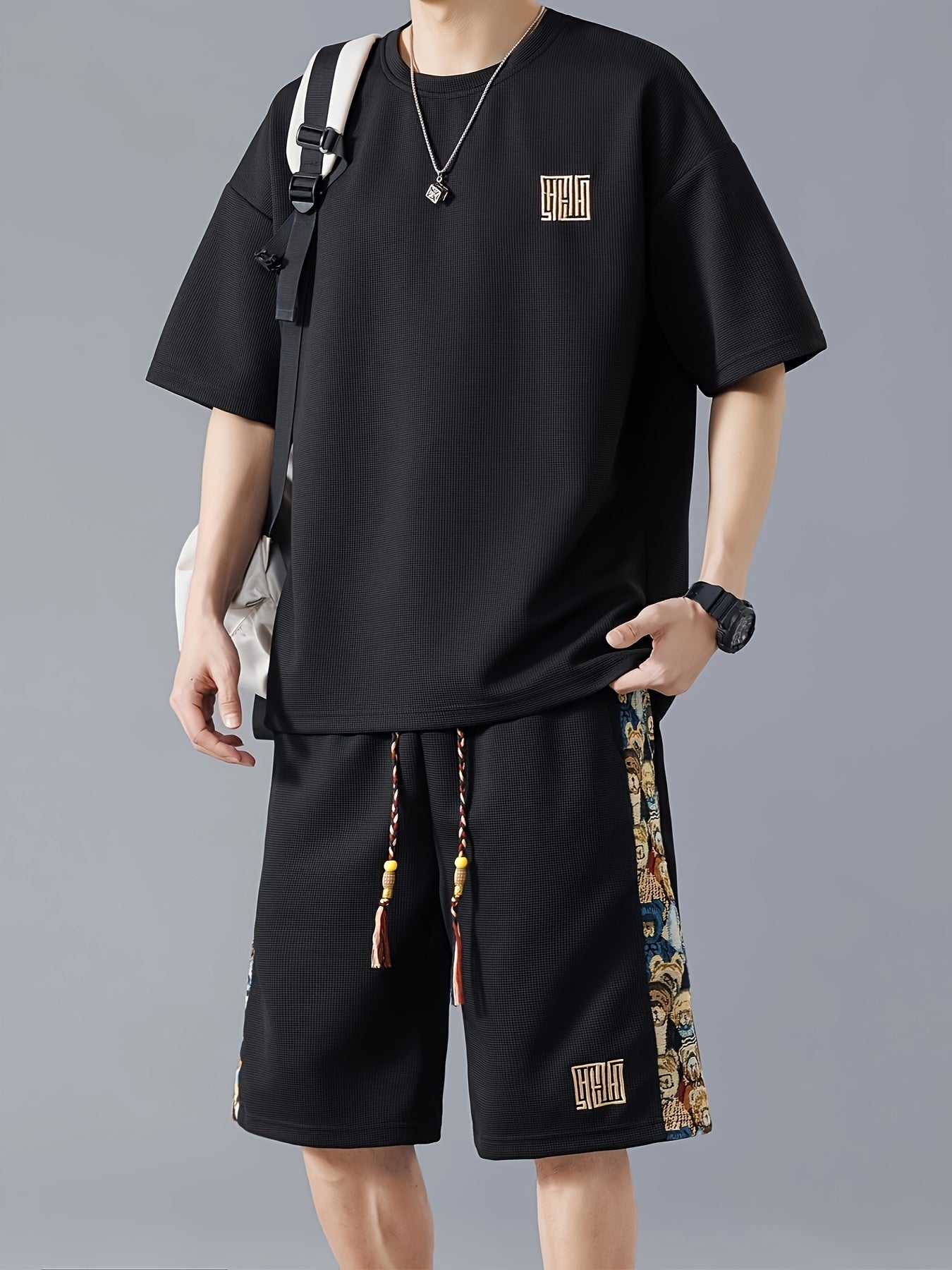 Տղամարդկանց ամառային առօրյա նորաձևության հավաքածու. ասեղնագործված, ազատ չափի մարզաշապիկ և շորտեր՝ շնչող պոլիեսթերի խառնուրդ, չձգվող գործվածք, անանաս, սպորտային հավաքածու