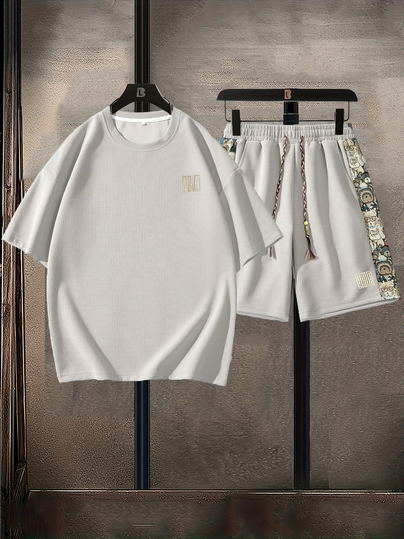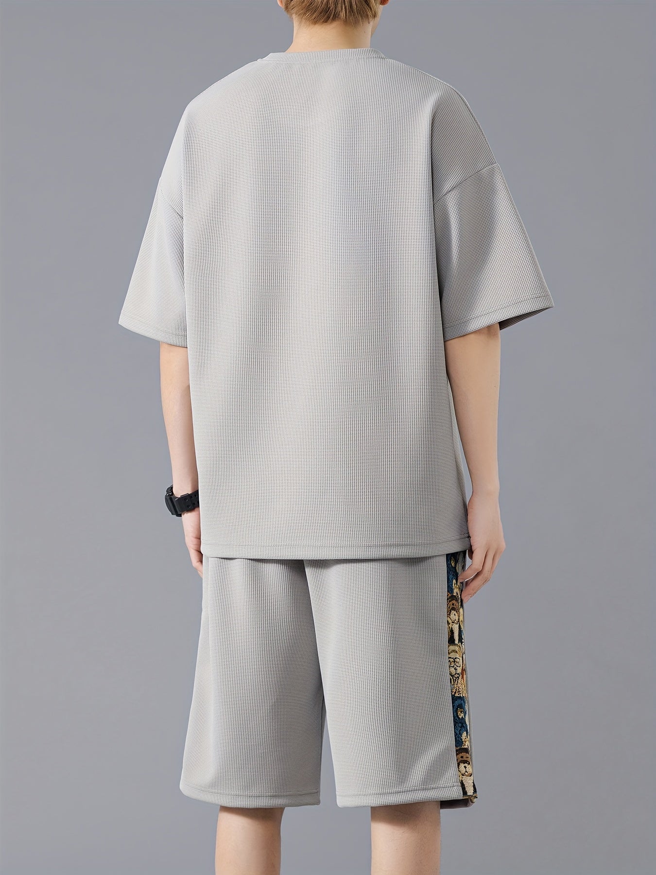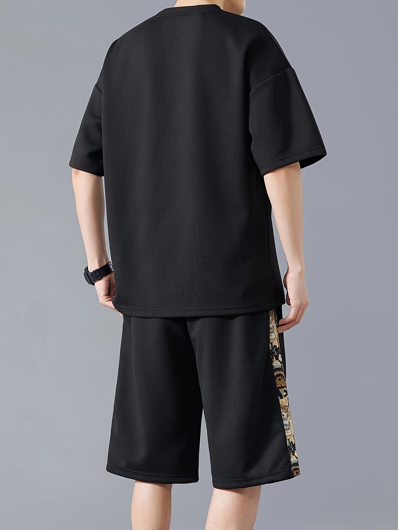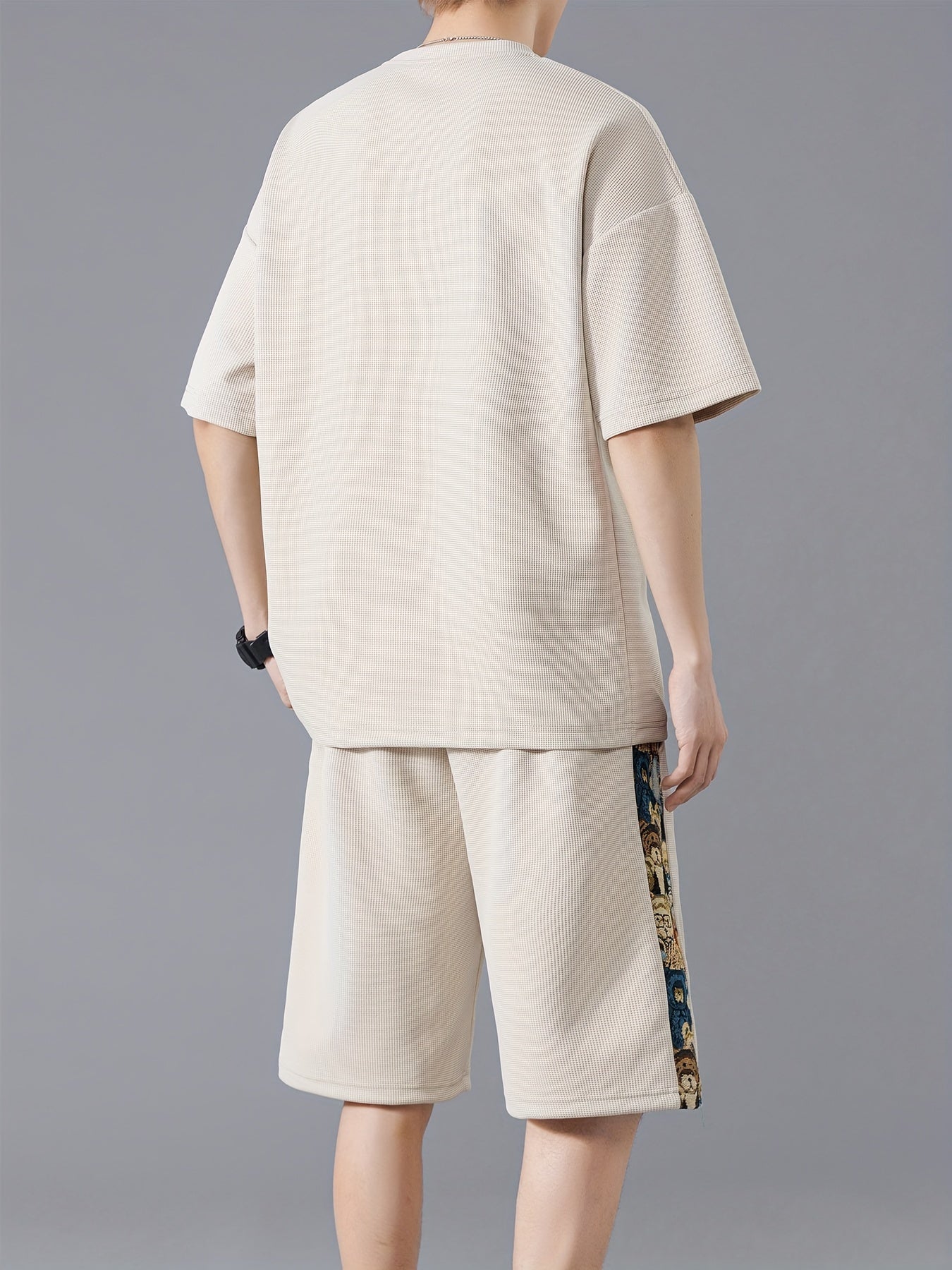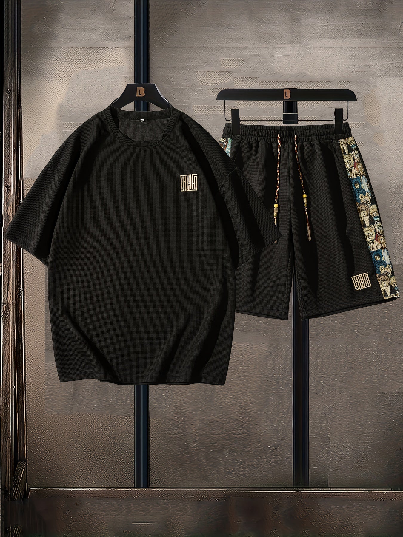 Տղամարդկանց ամառային առօրյա նորաձևության հավաքածու. ասեղնագործված, ազատ չափի մարզաշապիկ և շորտեր՝ շնչող պոլիեսթերի խառնուրդ, չձգվող գործվածք, անանաս, սպորտային հավաքածու