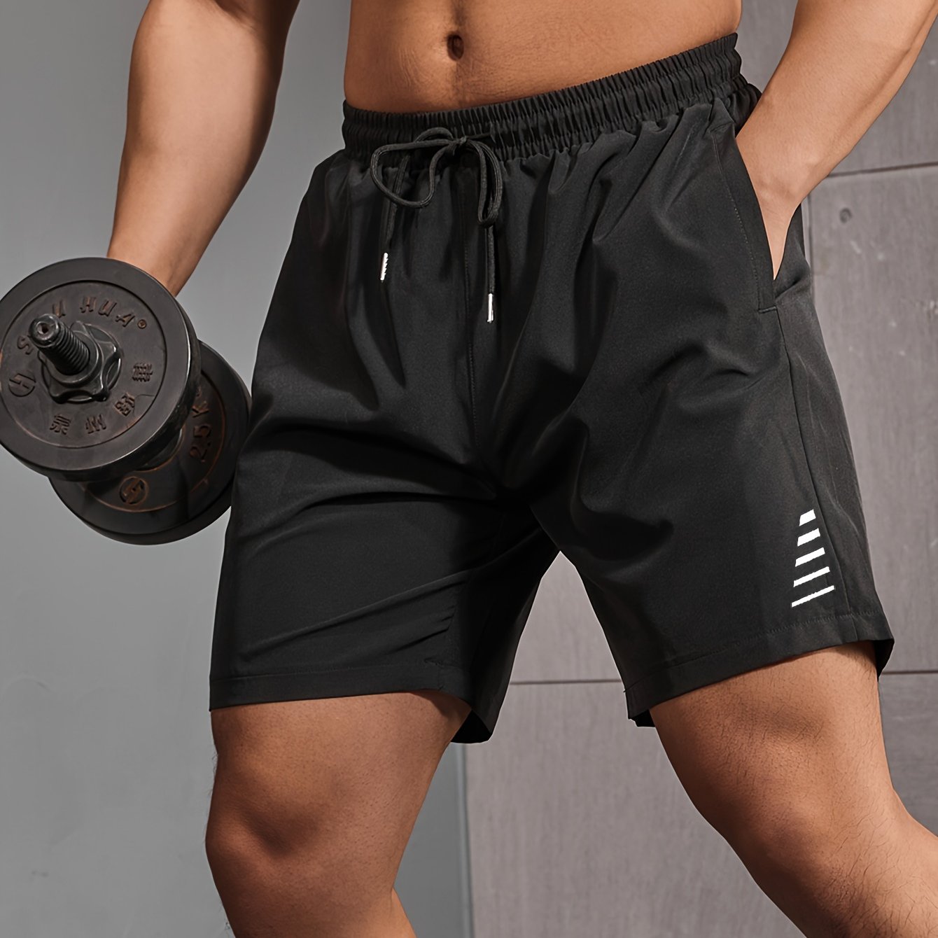 Տղամարդկանց ամառային նորաձևություն, գծավոր սպորտային շորտեր՝ պարանով և գրպաններով, հարմար է ֆիթնեսի, մարզումների և ամենօրյա վերնազգեստի համար