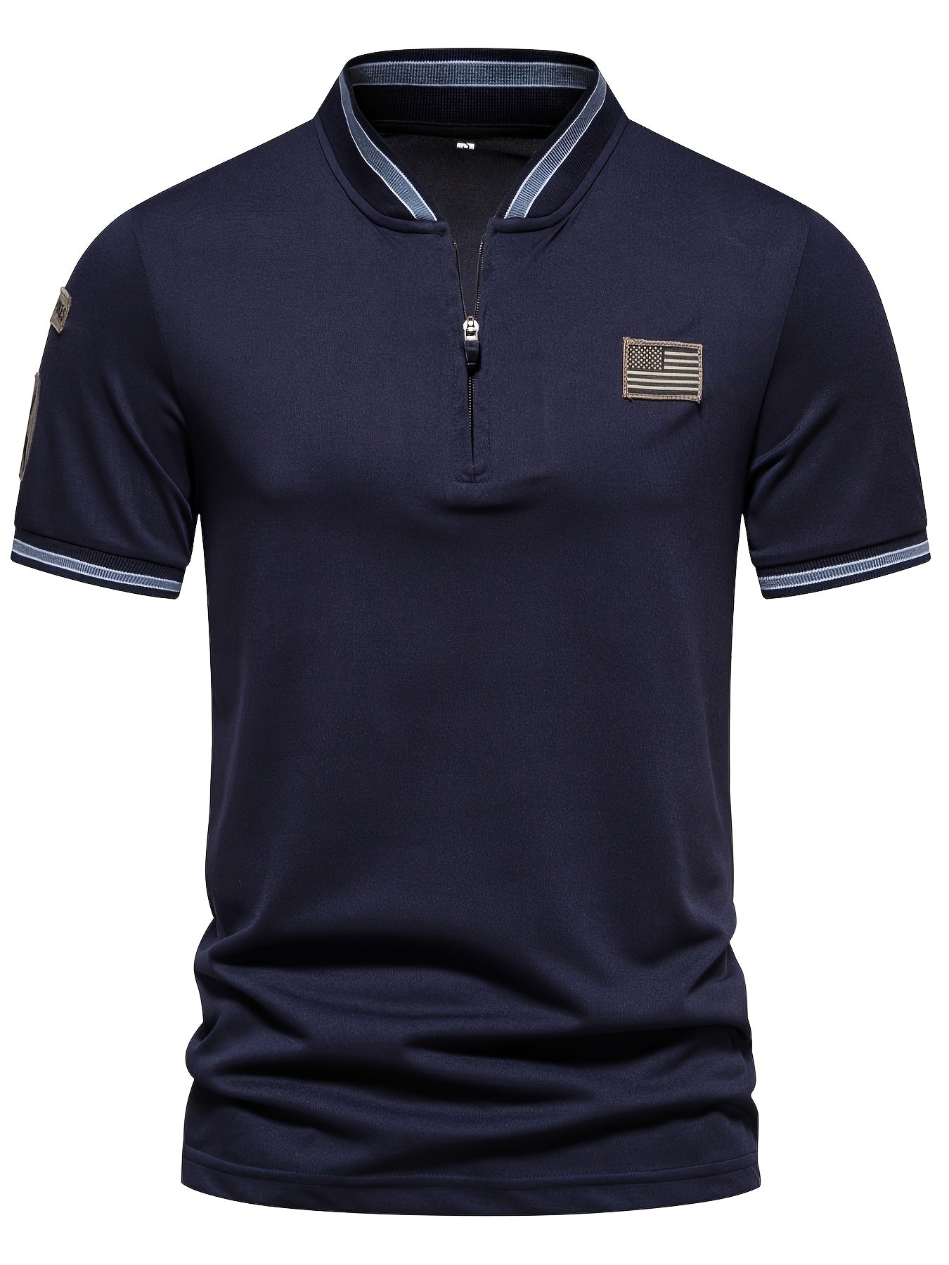 Տղամարդկանց ամառային «Հենլի» վերնաշապիկ՝ առօրյա և նորաձև, կարճ թև օձիքով, շնչող պոլիեսթեր, հայրենասիրական դրոշի ձևավորում, միջսահմանային, սպորտային
