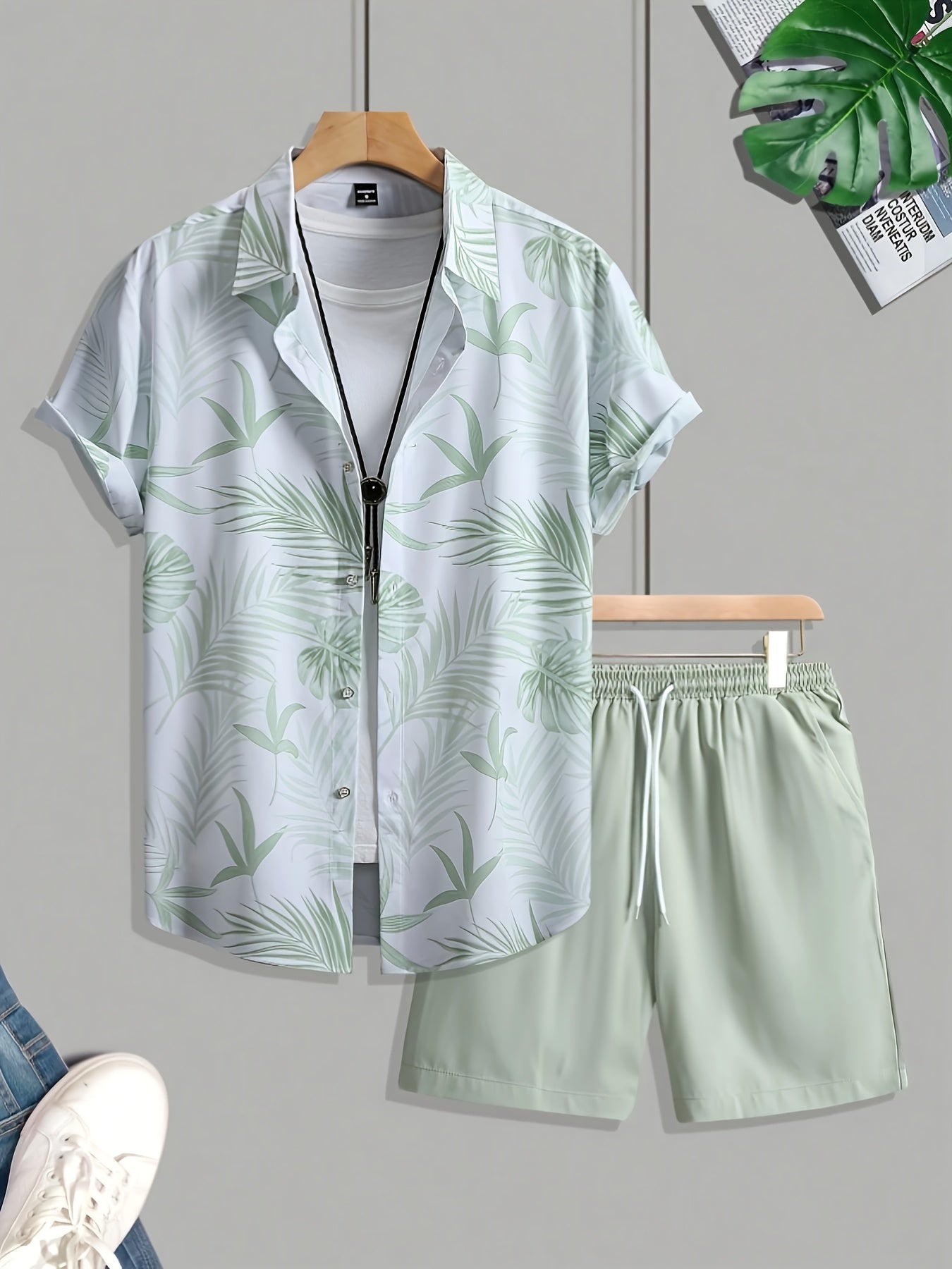 Տղամարդկանց ամառային տպագիր կարճ թևքով վերնաշապիկի և շորտերի հավաքածու
