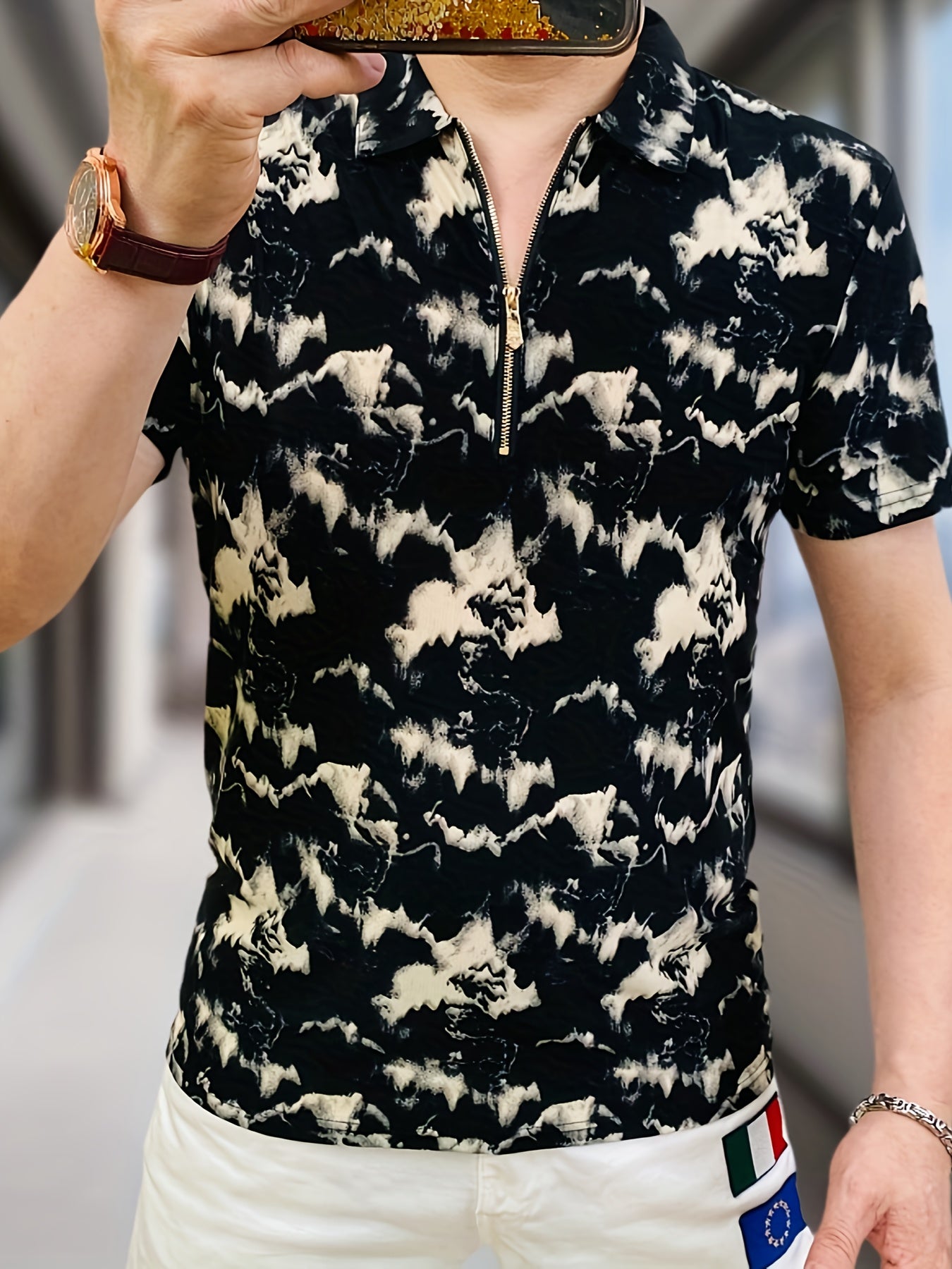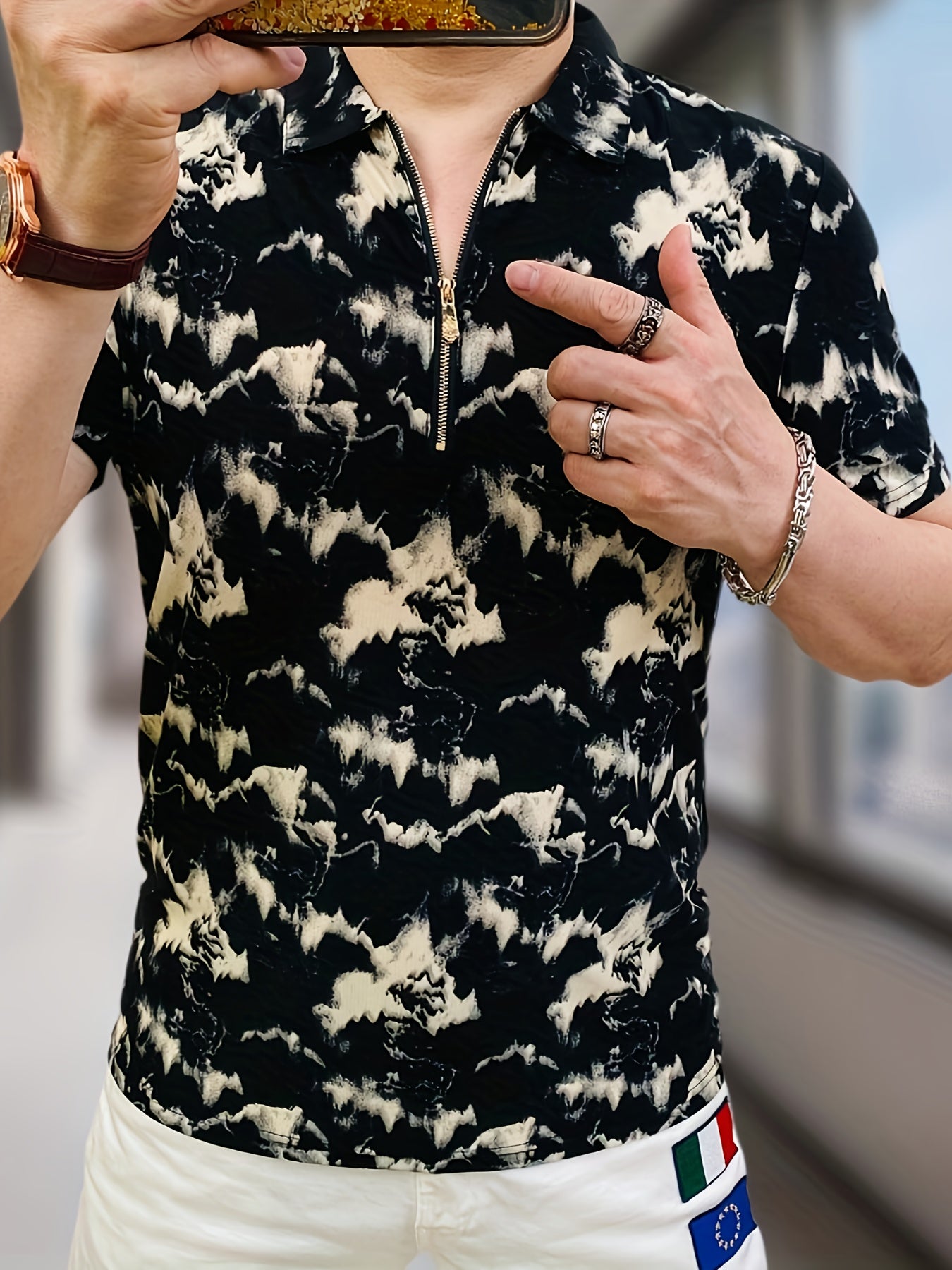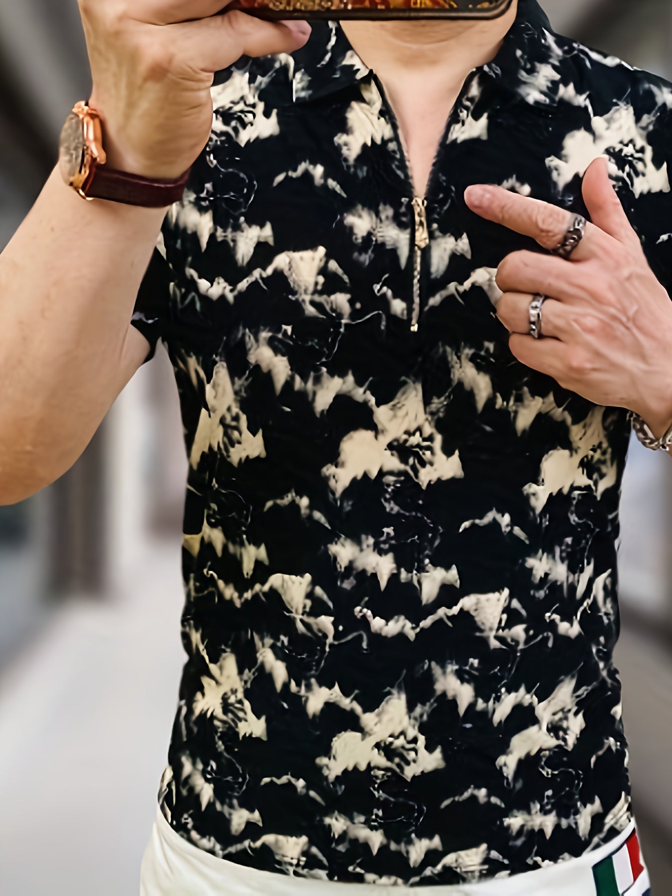 Տղամարդու ամառային կարճ թևքերով վերնաշապիկ՝ շնչող, գունային բլոկներով, աբստրակտ նախշերով, կանգնած օձիքով, սովորական չափսի, միայն ձեռքով լվացվող, նորաձև, թեթև գործվածքով