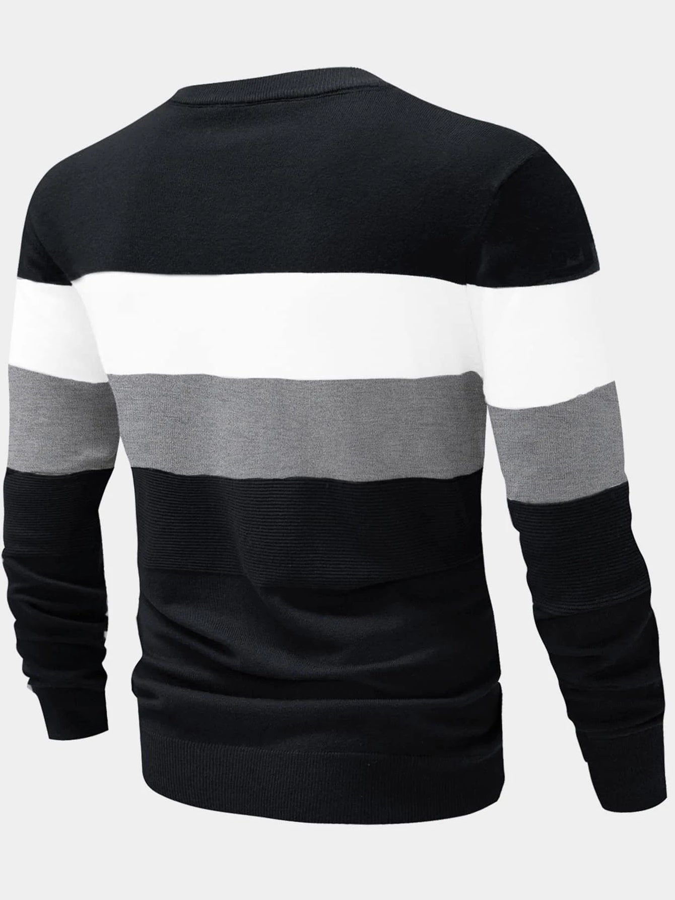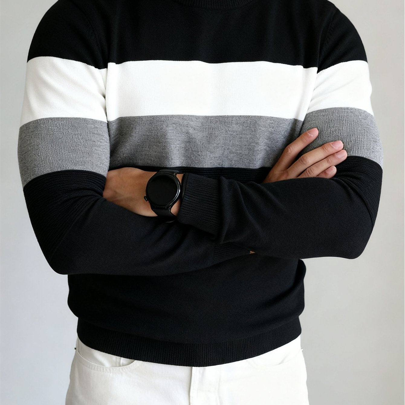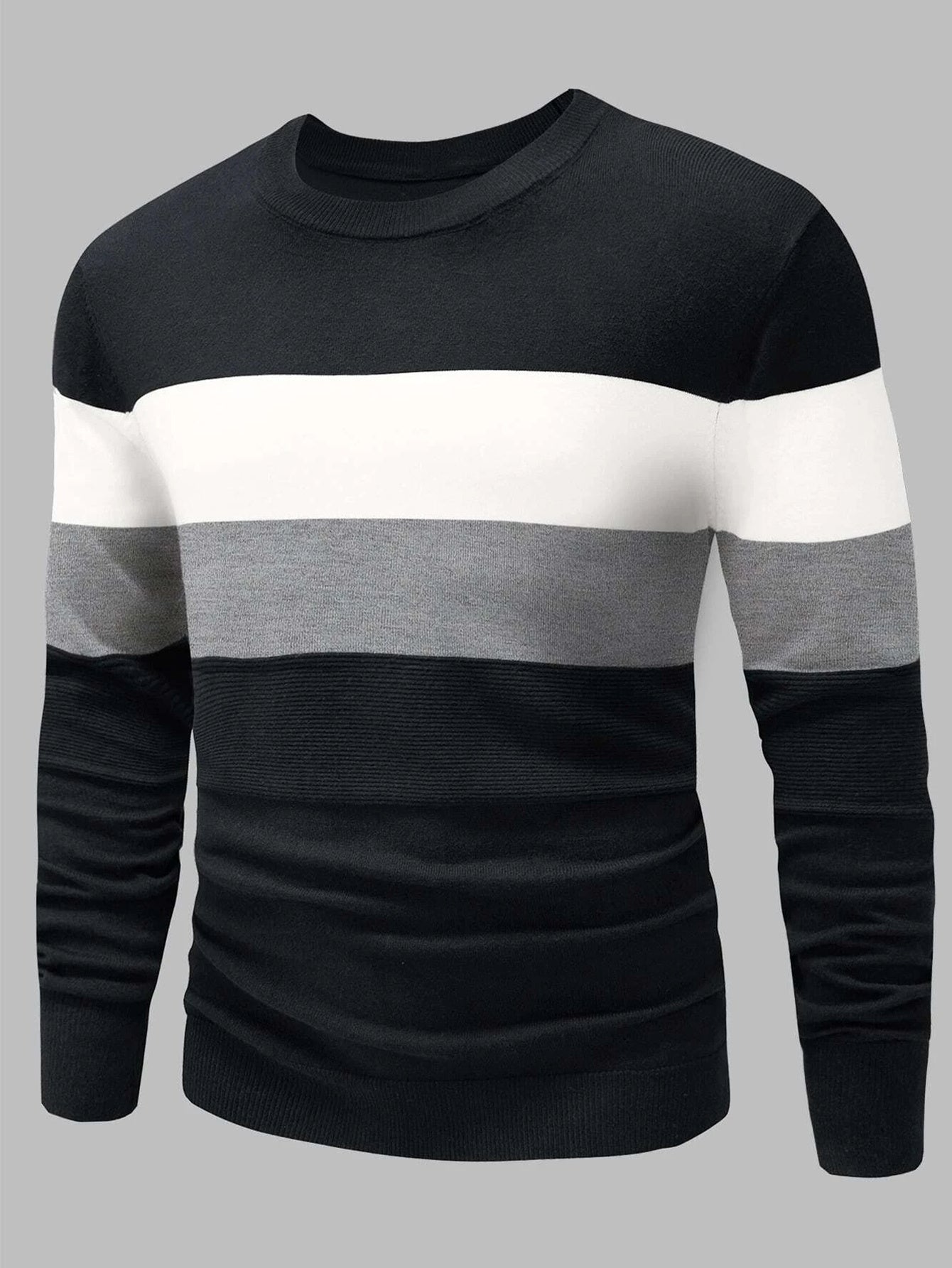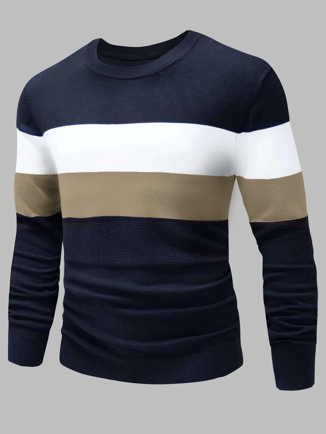 Տղամարդու սվիտեր գունային բլոկների դիզայնով, նեղ չափսերով, կլոր վզնոցով, աշուն/ձմեռ ոճով