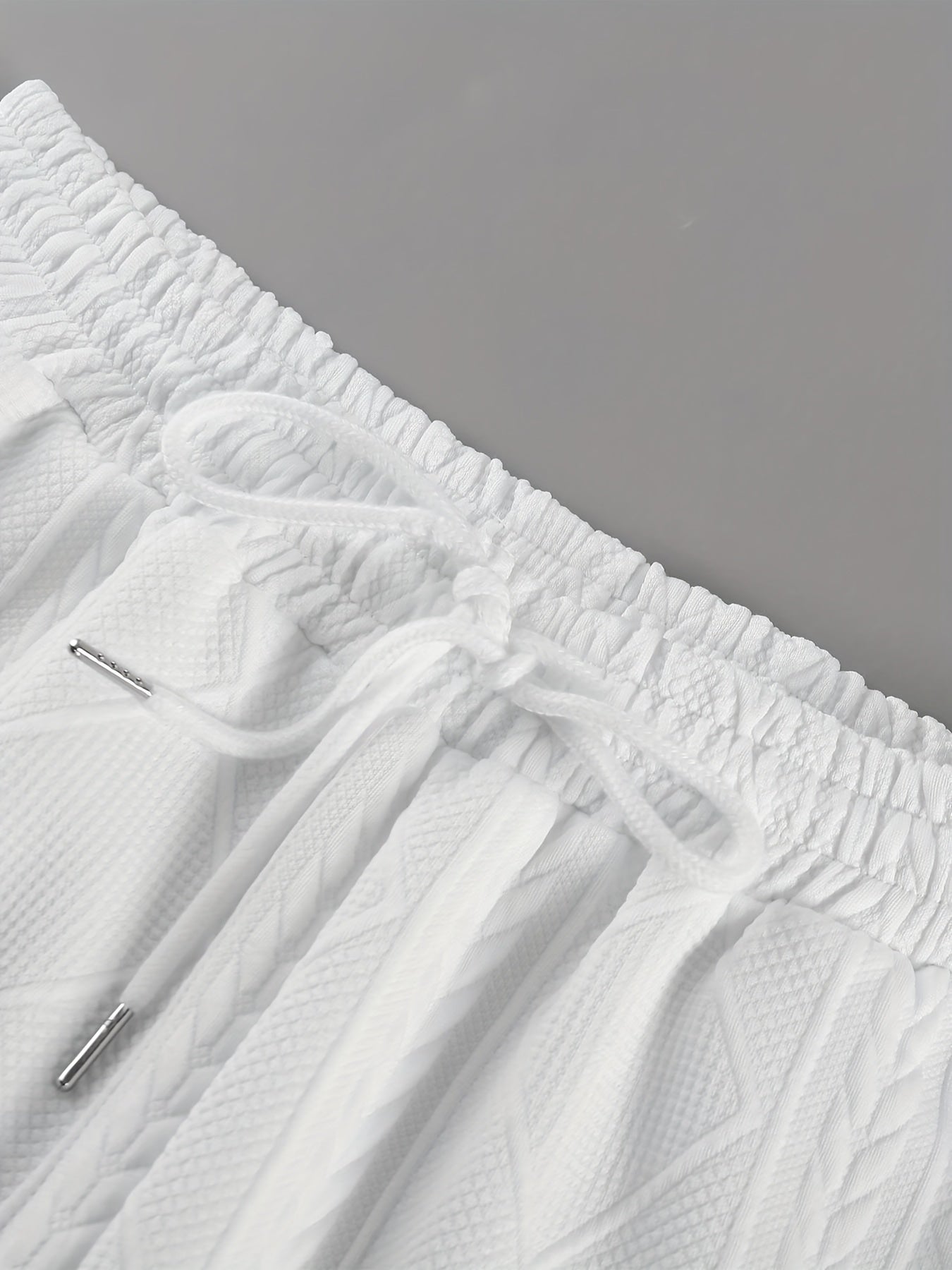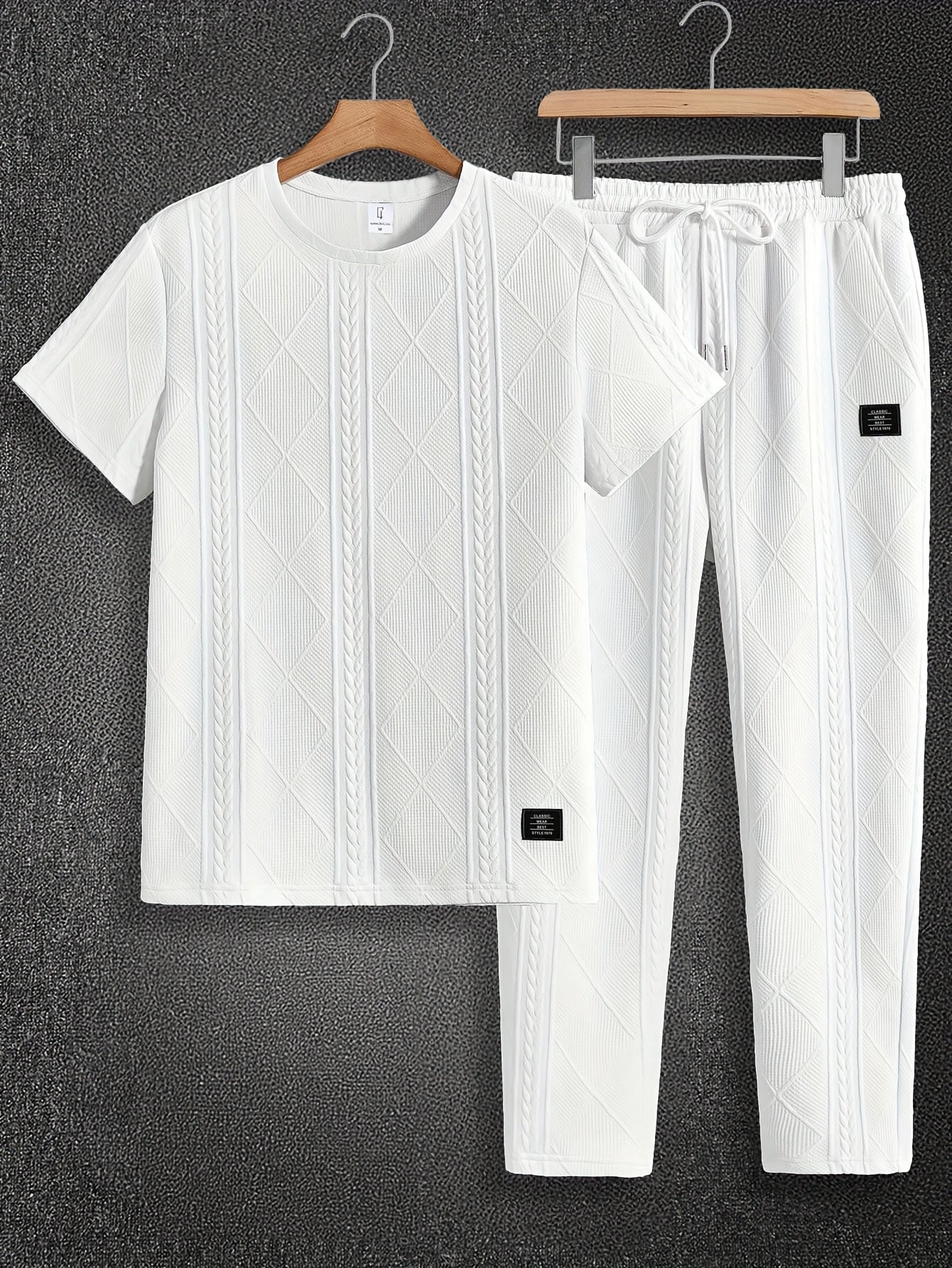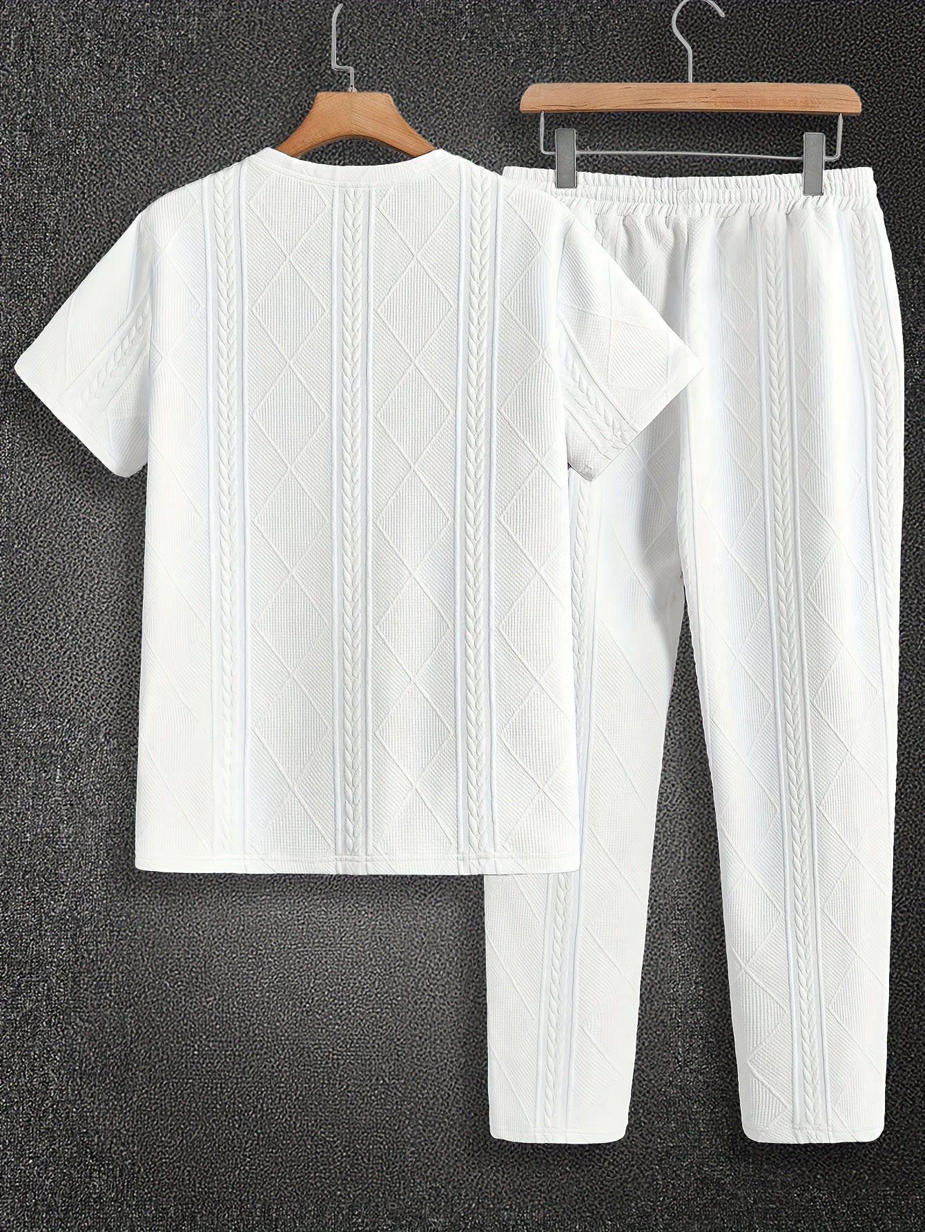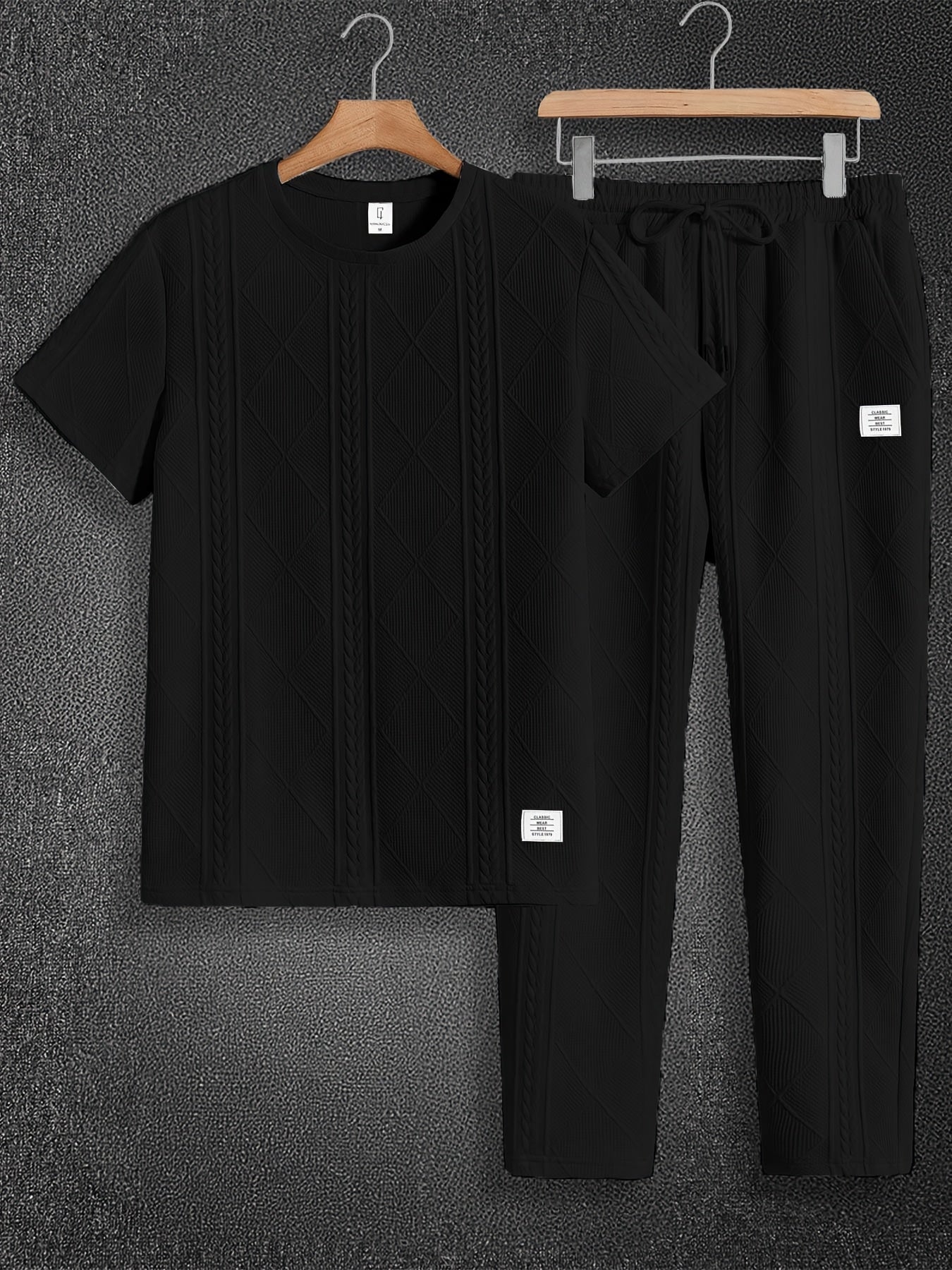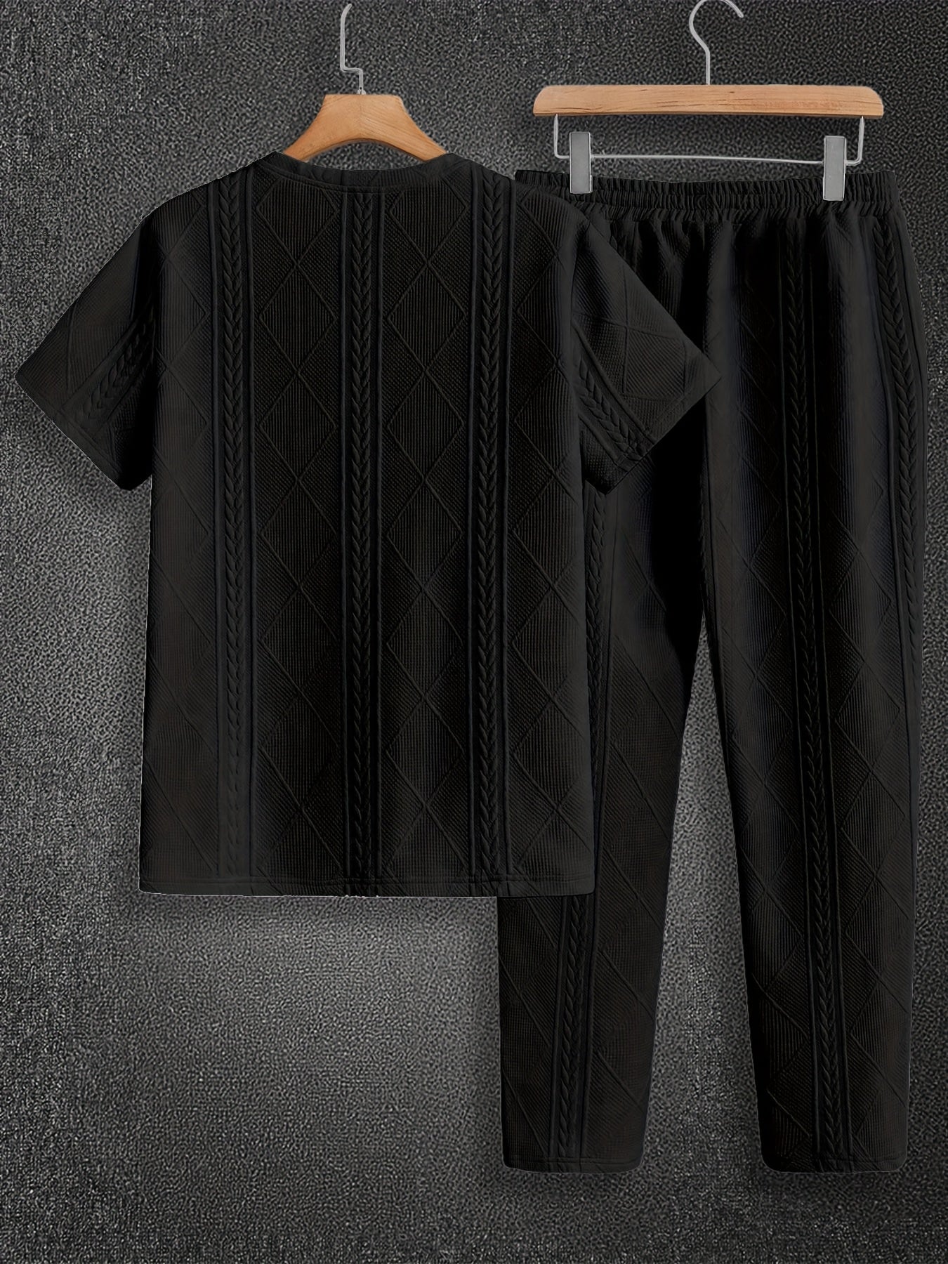 Տղամարդու կարճ թևքերով, կլոր վզով, հյուսվածքային, գործված տաբատով և պիժամայով հավաքածու - շագանակագույն, առօրյա, տնային օգտագործման համար, գոտիով, ամառային հարմարավետություն, ամենօրյա պիժամա | Առօրյա ոճ | Հարմարավետ չափս, պիժամա