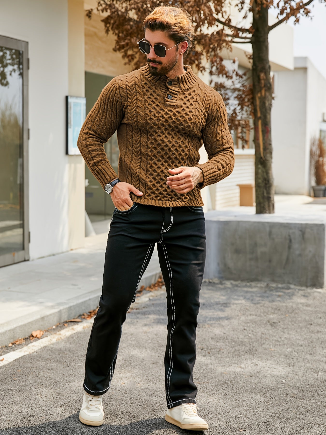 Տղամարդու ջերմային, օձիքով, մալուխով տրիկոտաժե սվիտեր - գծավոր H-աձև, կանոնավոր չափսի սվիտեր, լվացքի մեքենայով լվացվող ձմեռային սվիտեր՝ ակոսավոր դետալներով՝ աշնանային և ձմեռային համար, տրիկոտաժե սվիտեր, միջին առաձգականության գործվածք
