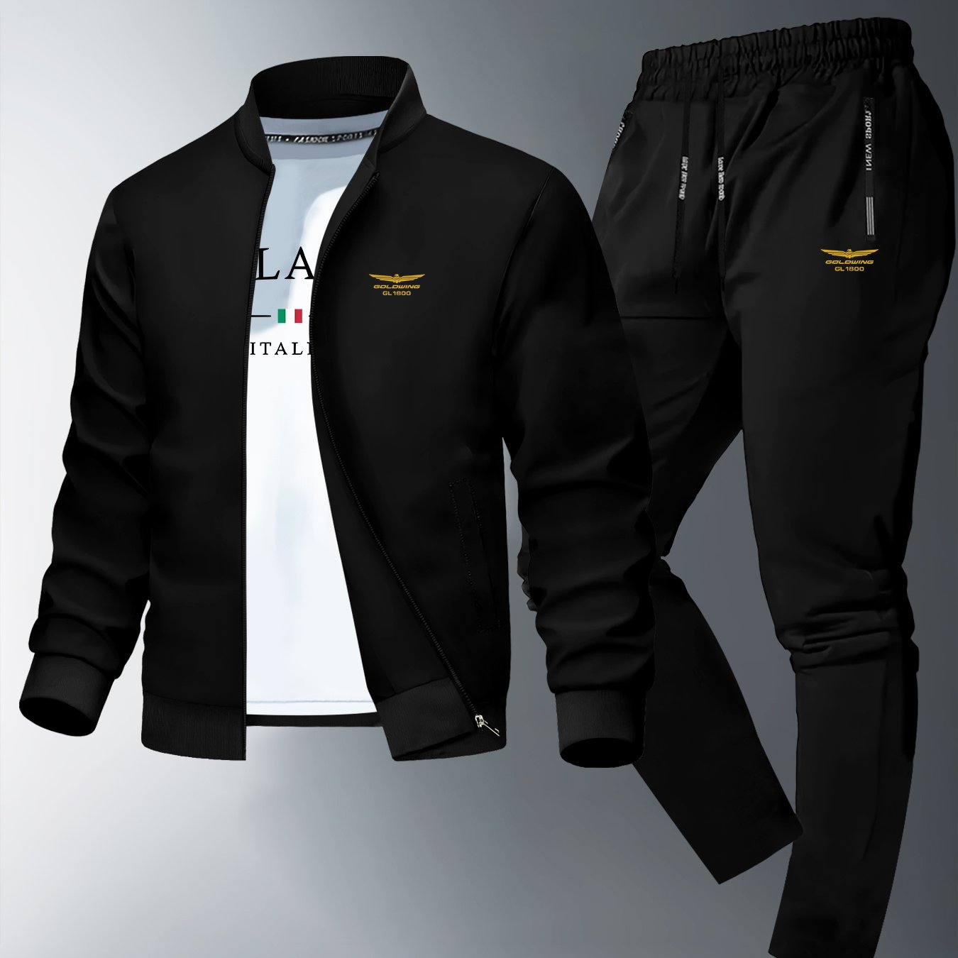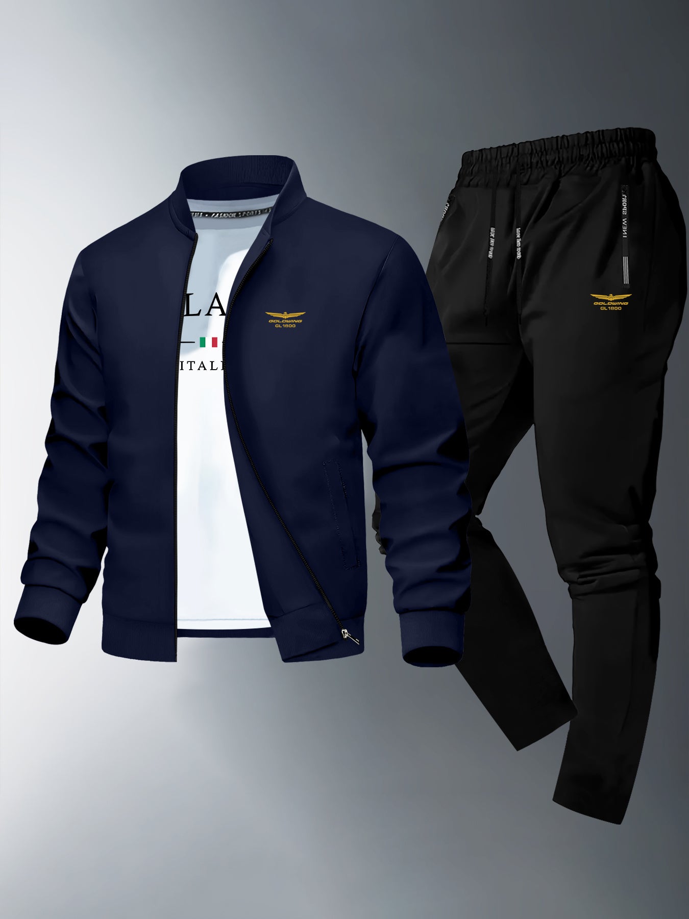 Men'S Trendy Jacket And Pants Set, 1800 Print, Casual Young Sports Suit, Skinny Fit, Zipper Detail, Long Sleeve, Slight Stretch Fabric, Collared Neck, Fall/Winter, Casual Style, Skinny Fit Jacket|Modern Casual Wear|Zippered J