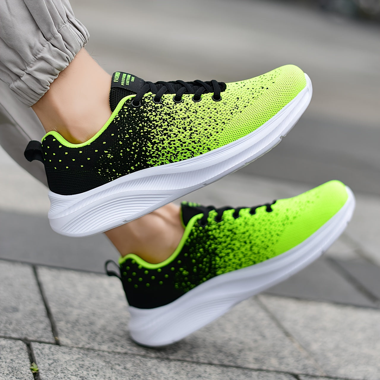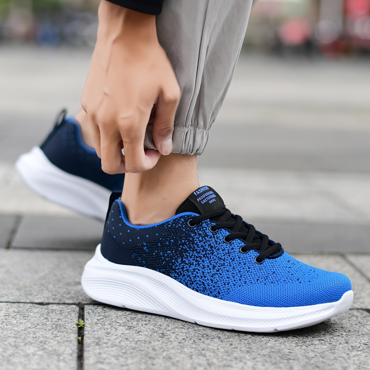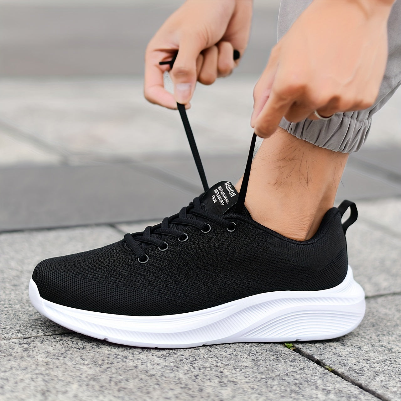 Տղամարդկանց թրենդային պինդ հյուսված տրիկոտաժե շնչառական վազքի կոշիկներ, հարմարավետ չսահող ժանյակներով երկարակյաց սպորտային կոշիկներ տղամարդկանց բացօթյա գործունեության համար