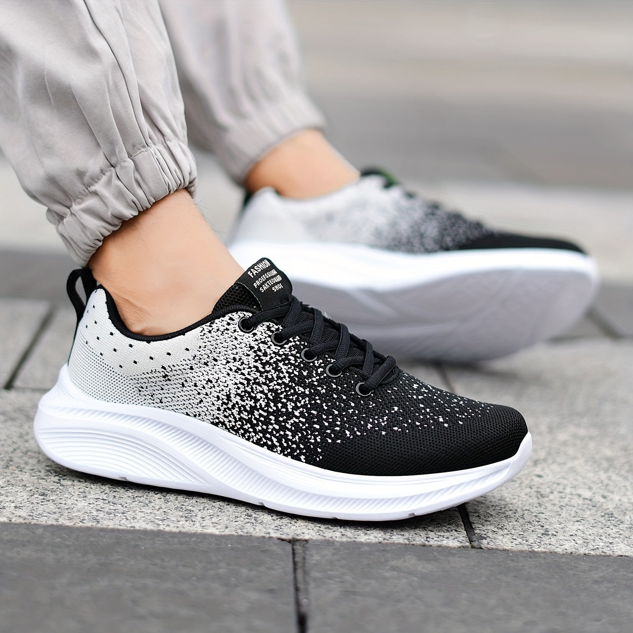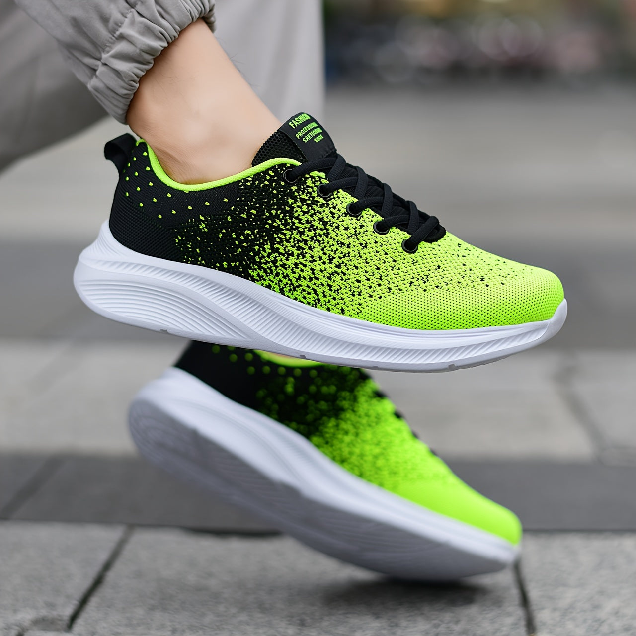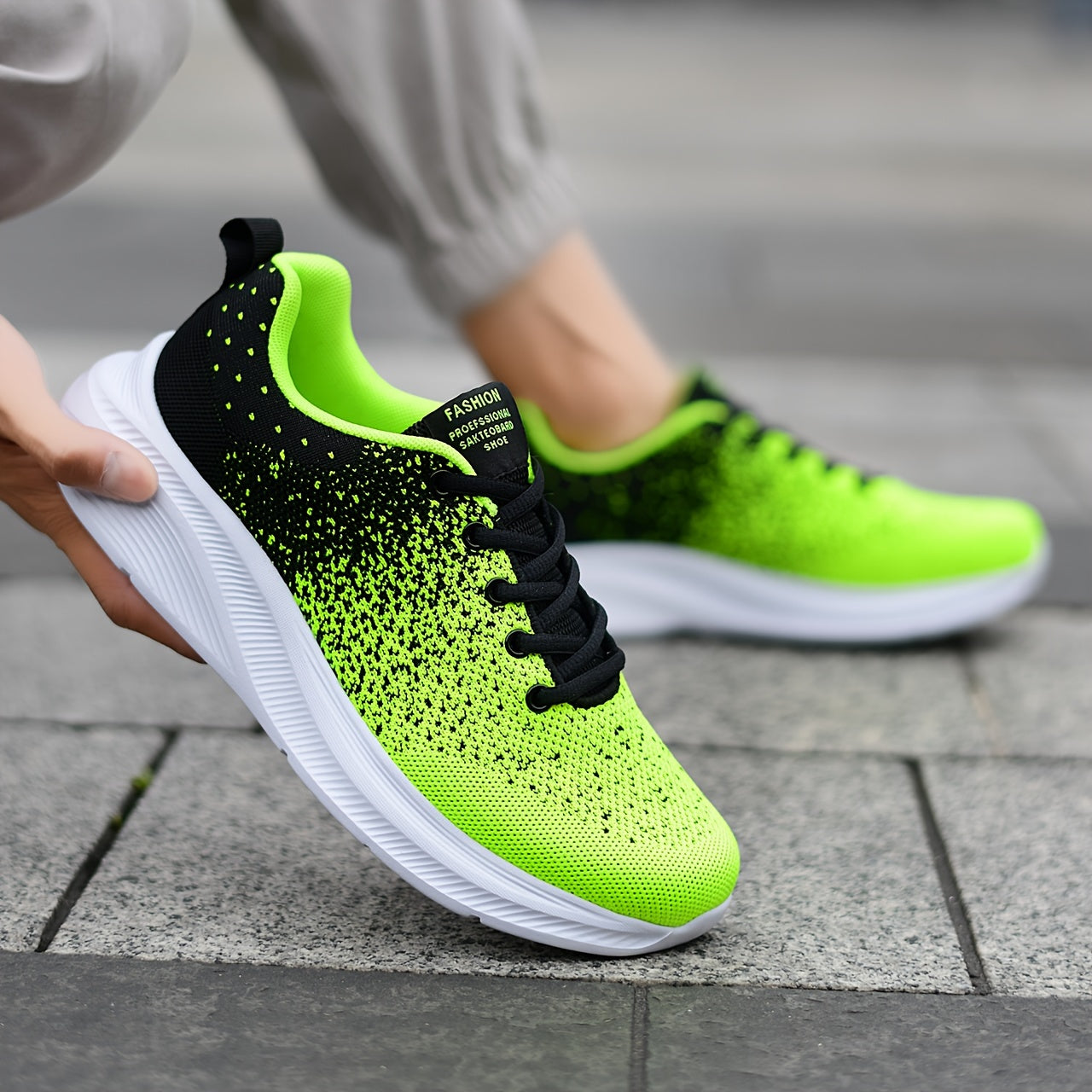 Տղամարդկանց թրենդային պինդ հյուսված տրիկոտաժե շնչառական վազքի կոշիկներ, հարմարավետ չսահող ժանյակներով երկարակյաց սպորտային կոշիկներ տղամարդկանց բացօթյա գործունեության համար