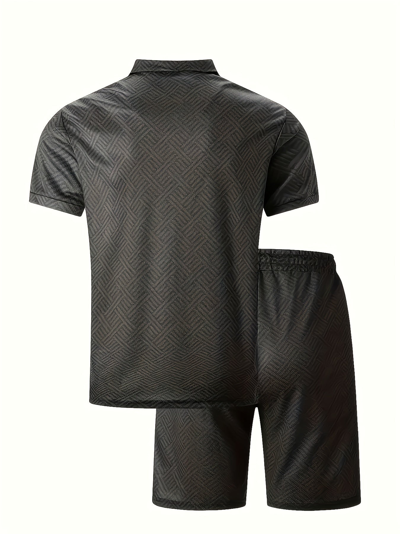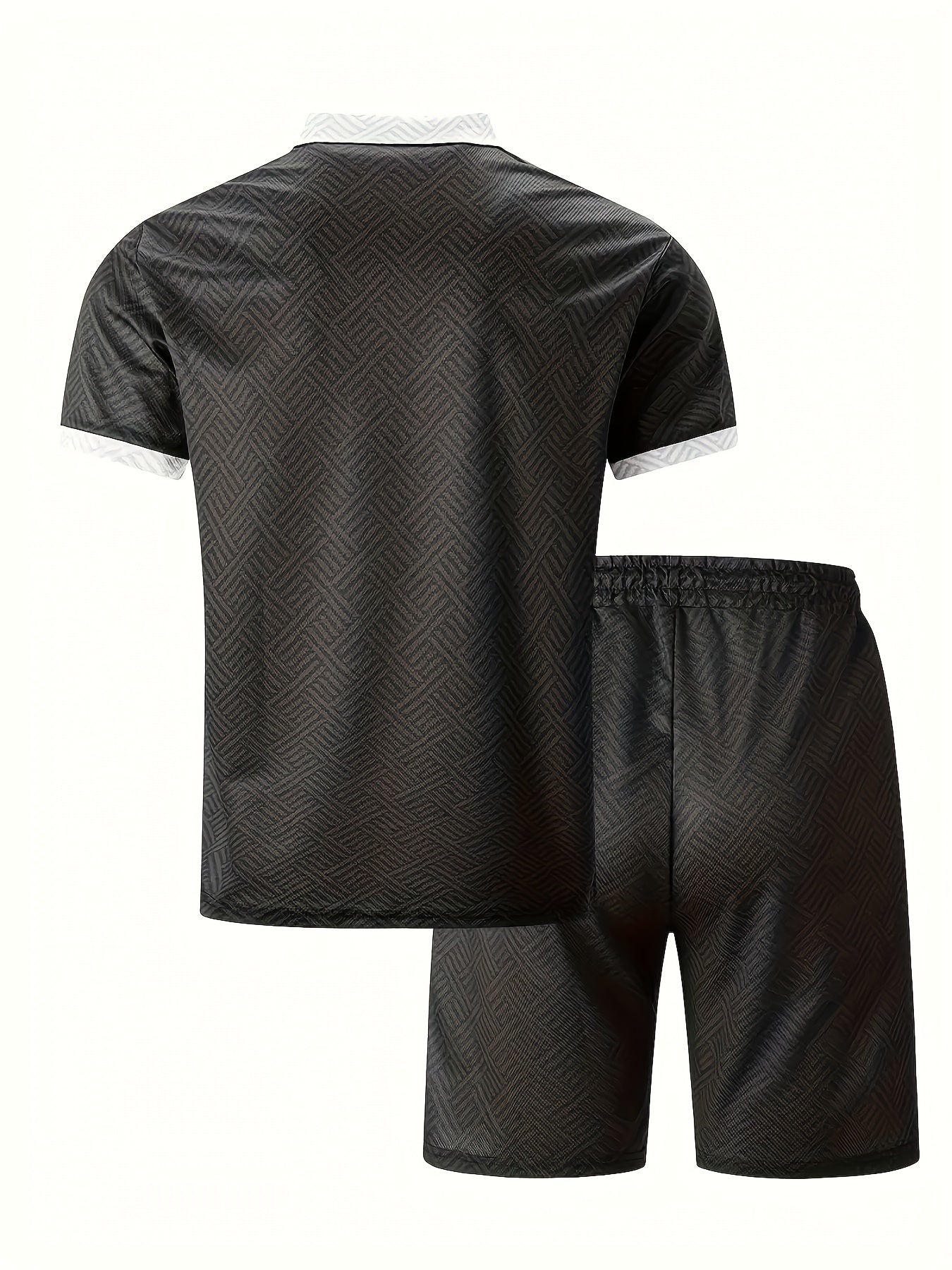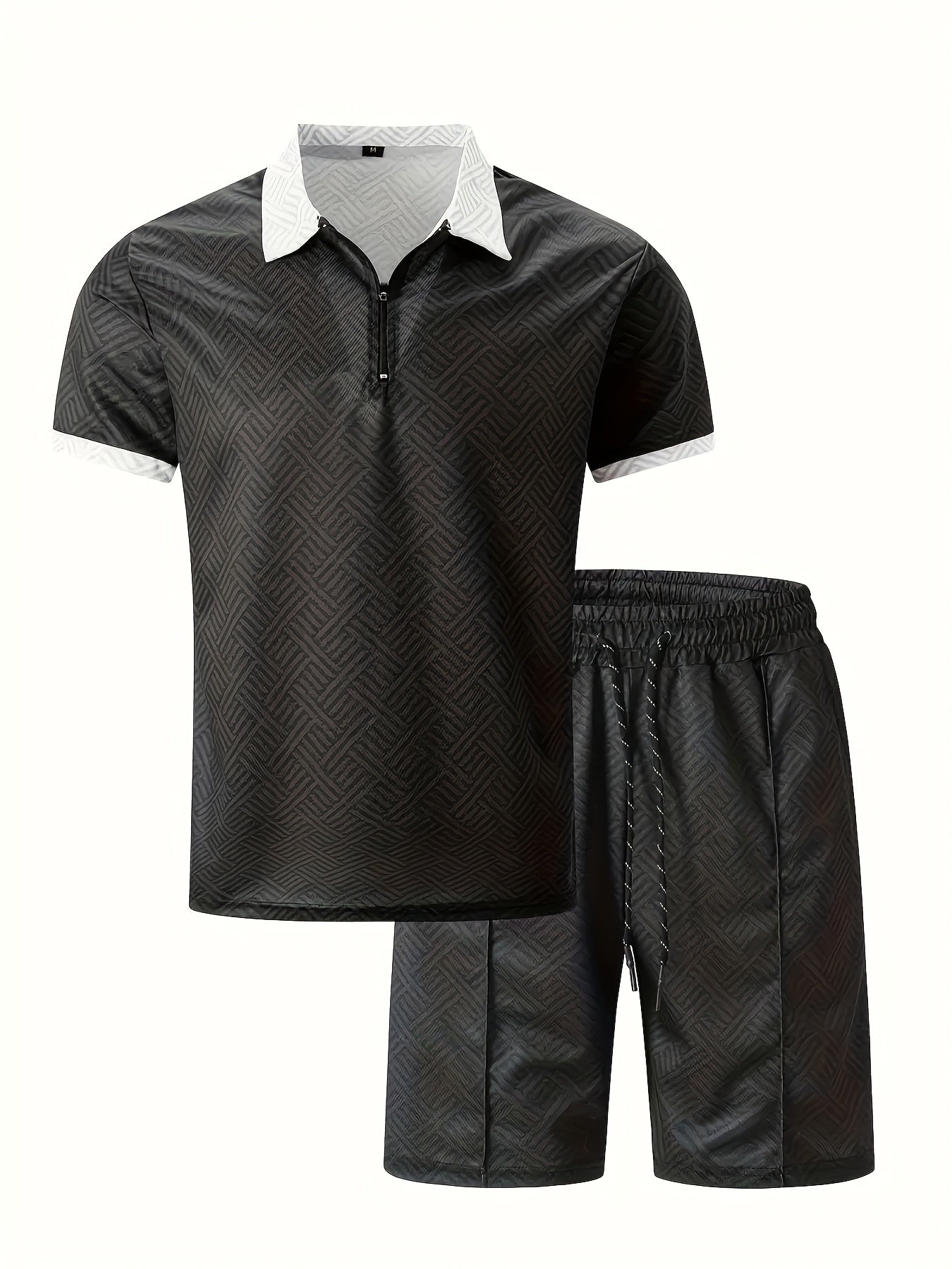 Տղամարդու արևադարձային նախշերով առօրյա կոստյում - սև կարճ թևքով, կայծակաճարմանդով վերնաշապիկ՝ սպիտակ գրպաններով, շորտեր, պոլիեսթեր, լվացքի մեքենայով լվացվող, ամառային լողափի հագուստ, ամառային հագուստ | Հանգիստ չափսի վերնաշապիկ | Հյուսված հյուսվածք