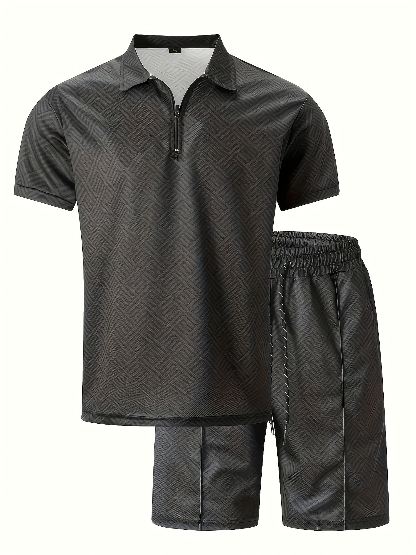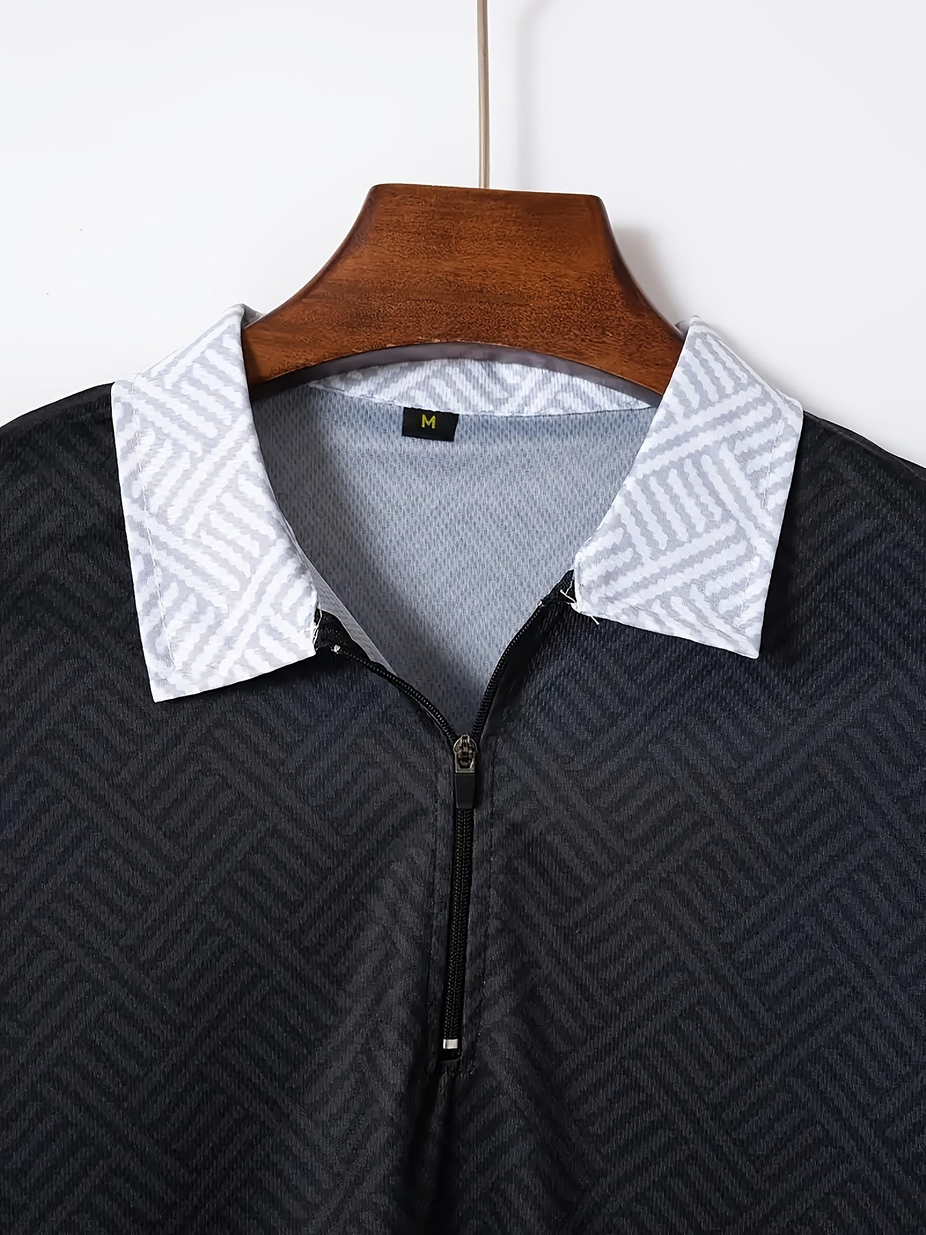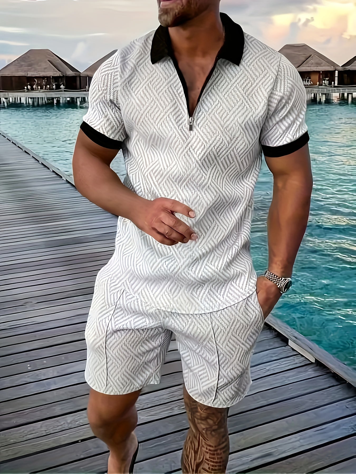 Տղամարդու արևադարձային նախշերով առօրյա կոստյում - սև կարճ թևքով, կայծակաճարմանդով վերնաշապիկ՝ սպիտակ գրպաններով, շորտեր, պոլիեսթեր, լվացքի մեքենայով լվացվող, ամառային լողափի հագուստ, ամառային հագուստ | Հանգիստ չափսի վերնաշապիկ | Հյուսված հյուսվածք