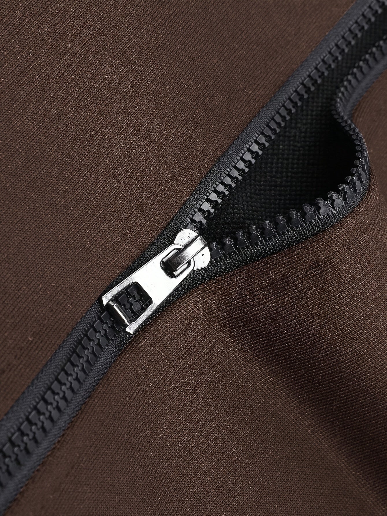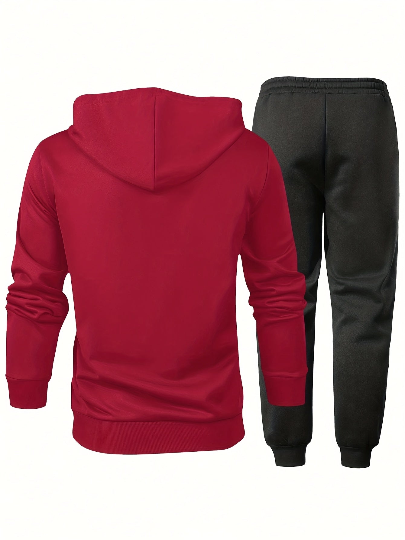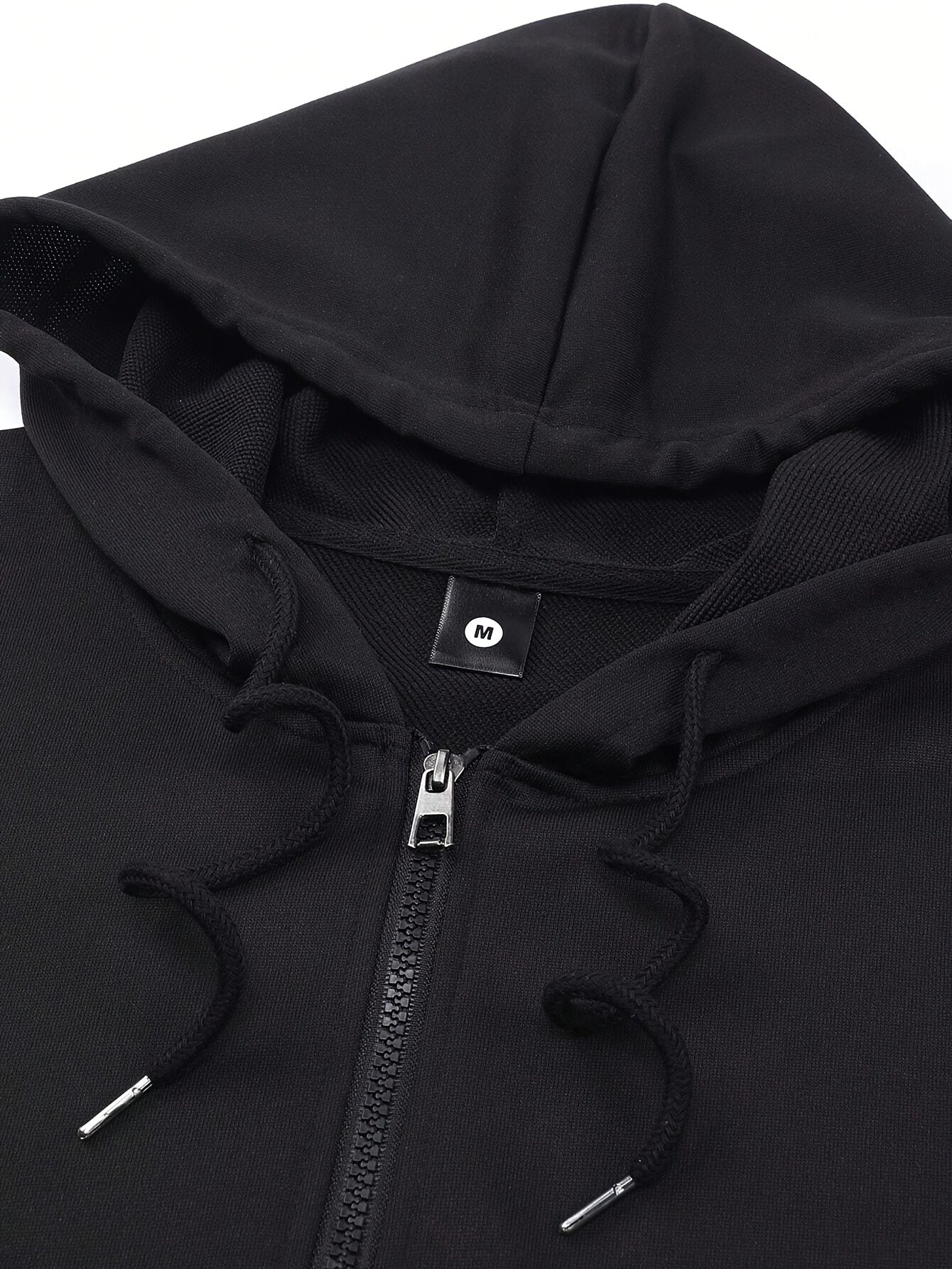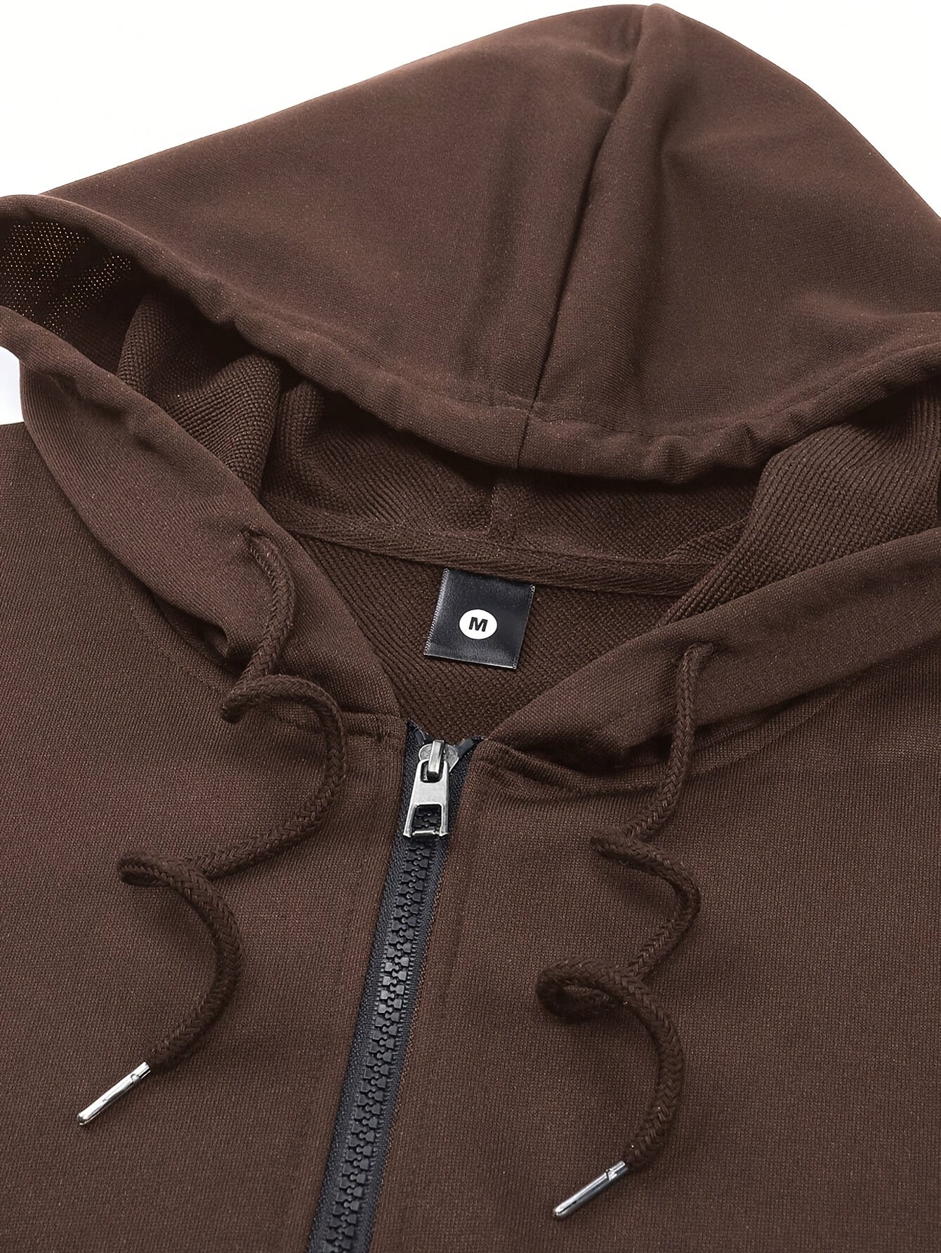 Men's Two-Piece Sportswear Suit: Zipper Hoodie + Sweatpants Set, Spring/Autumn Solid Color Regular Long Sleeve Zipper Hoodie with Drawstring, Threaded Trousers, Casual Sportswear Two-Piece Set
