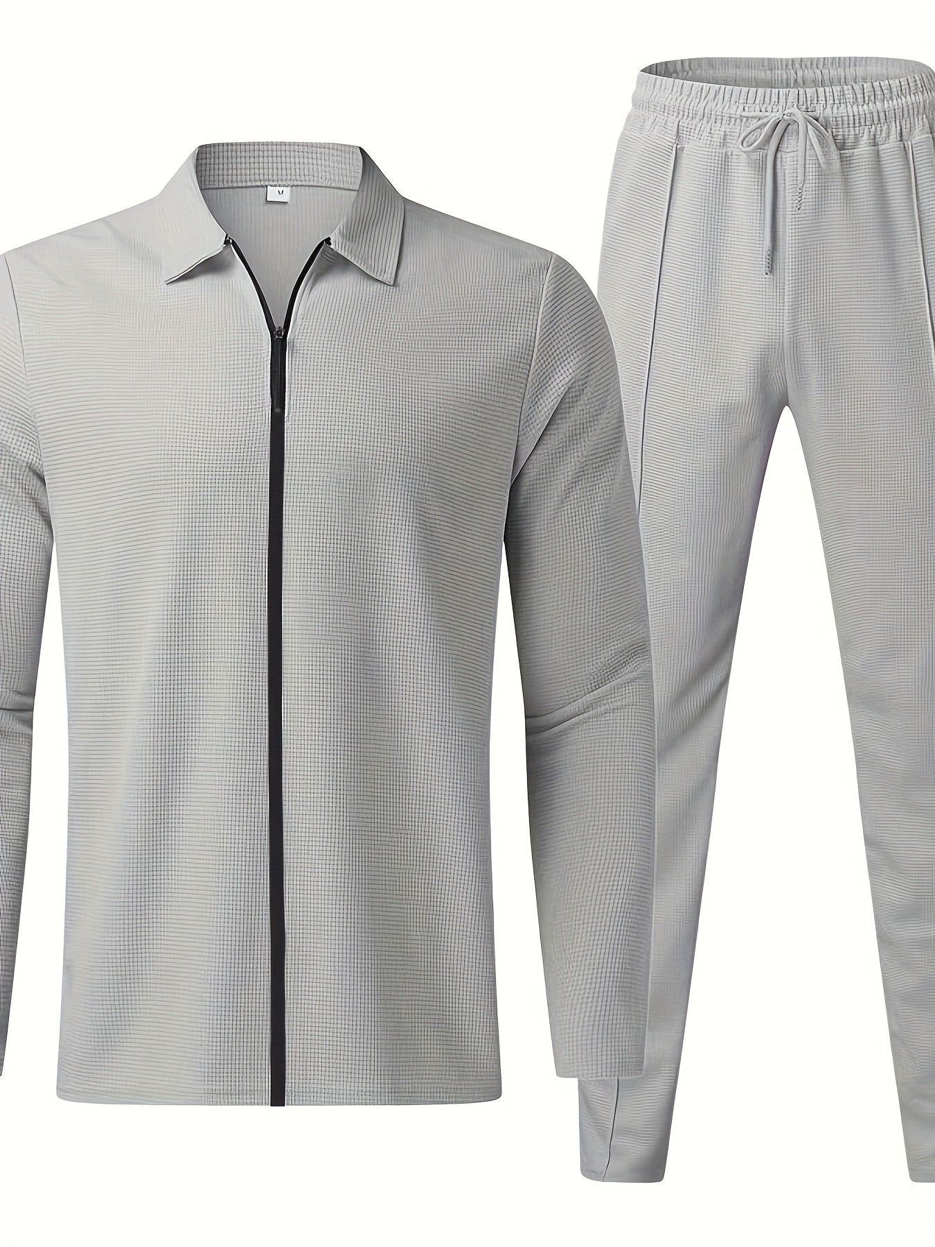 Տղամարդու վաֆլիե օձիքով կոստյում՝ նորաձև կայծակաճարմանդով կարդիգանով, ամենօրյա հավաքածու