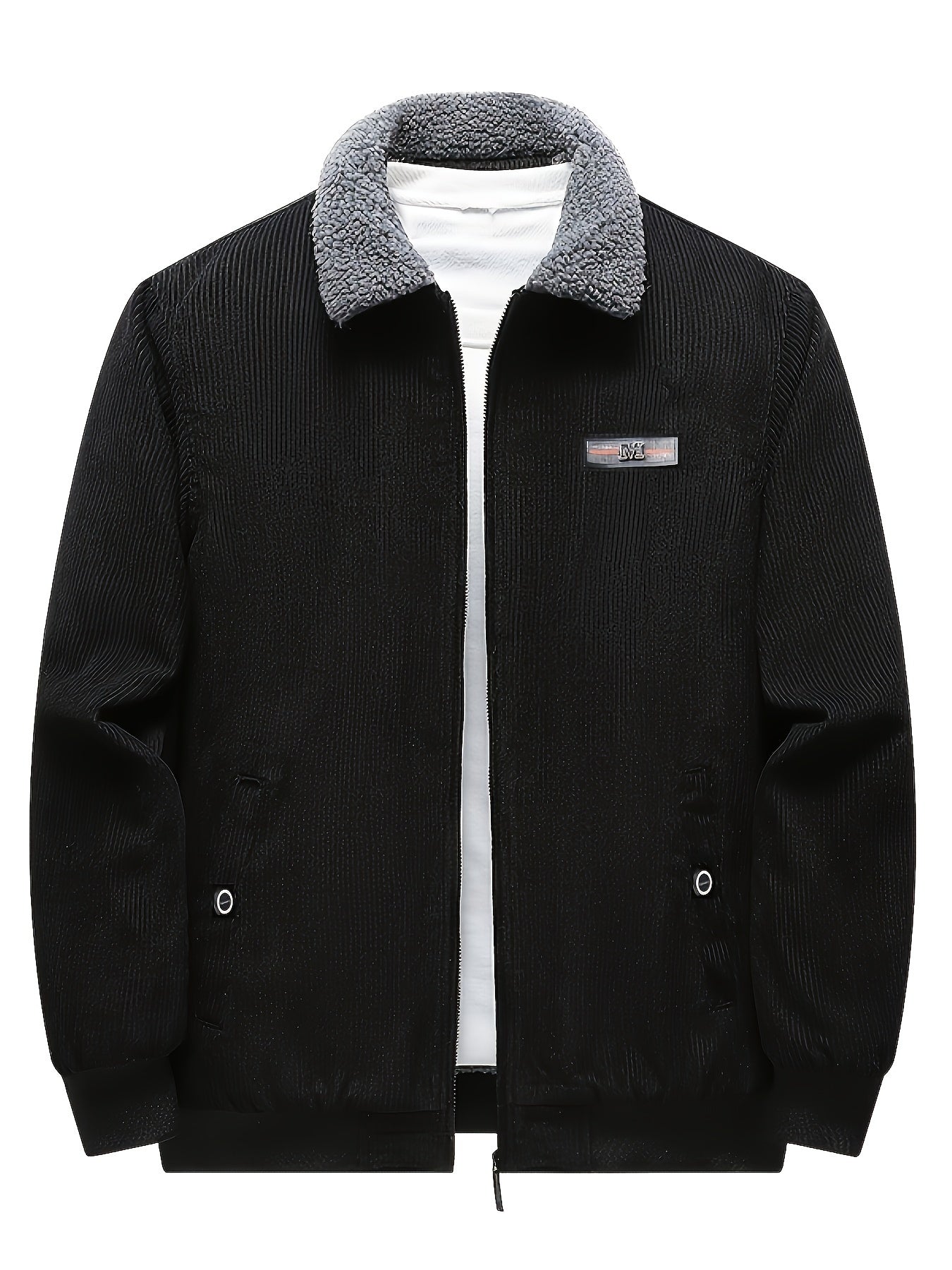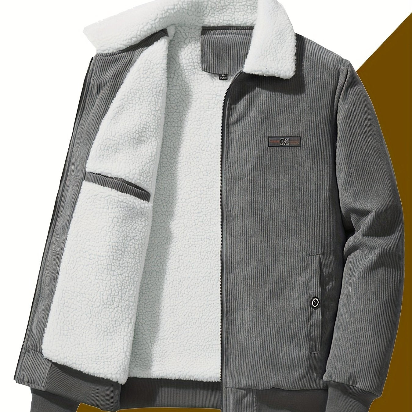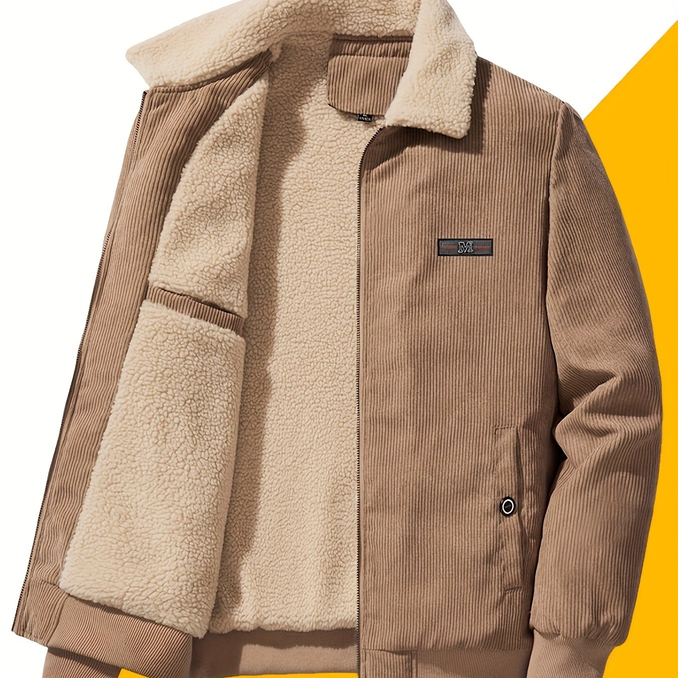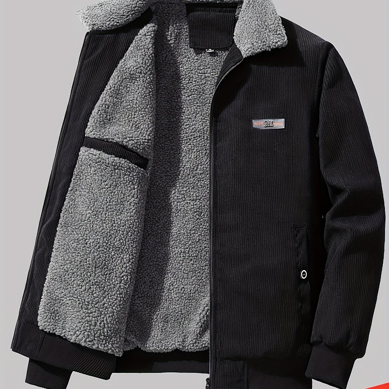 Տղամարդկանց տաք և հաստ երկարաթև օձիքով բաճկոն՝ պիտակի կարկատաններով և գրպաններով, ամենօրյա և դասական բաճկոն բմբուլով աշնանային և ձմեռային բացօթյա հագուստի համար
